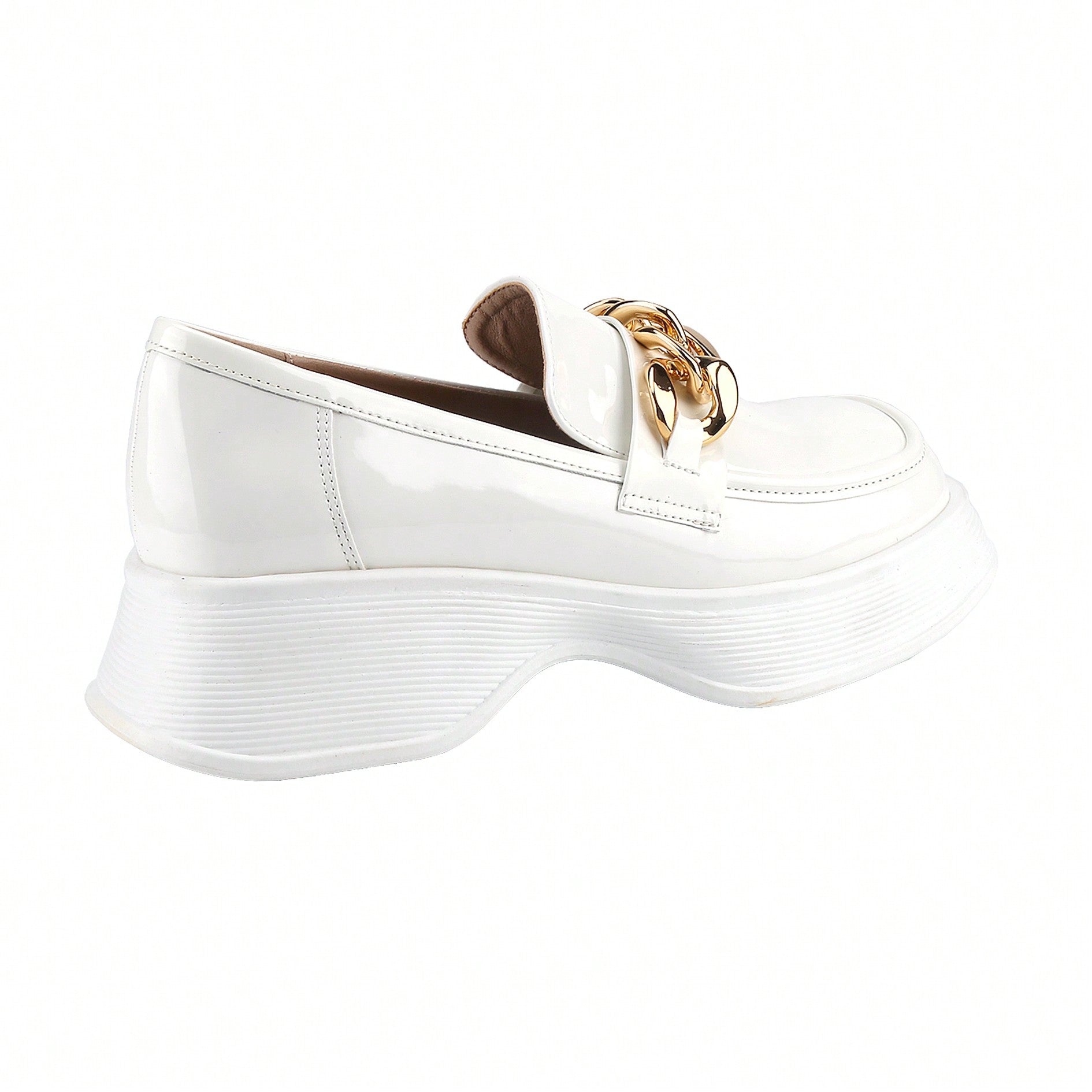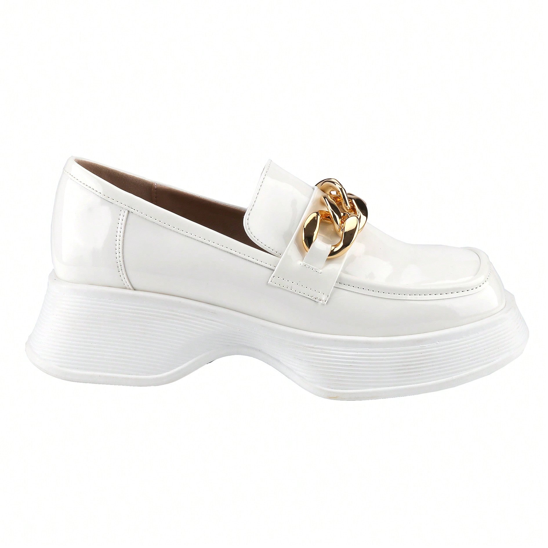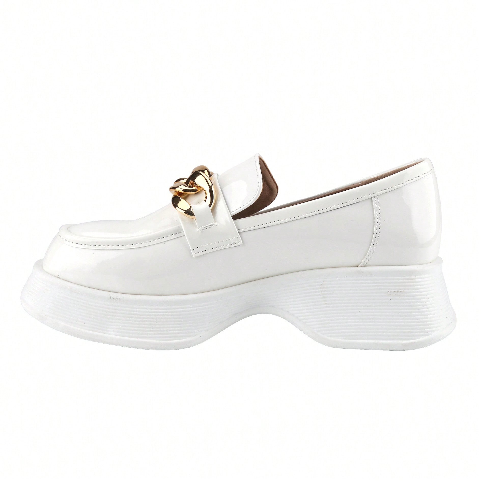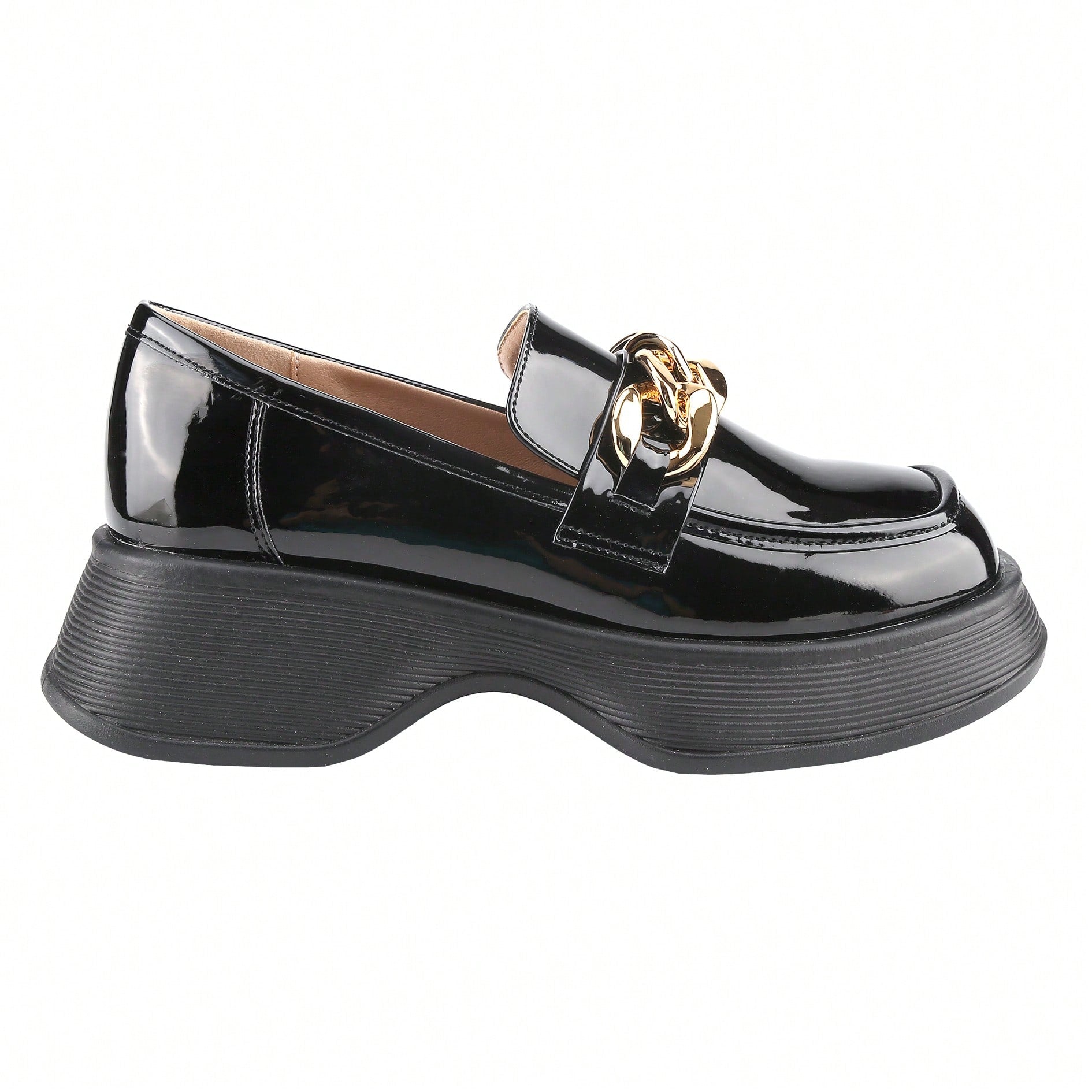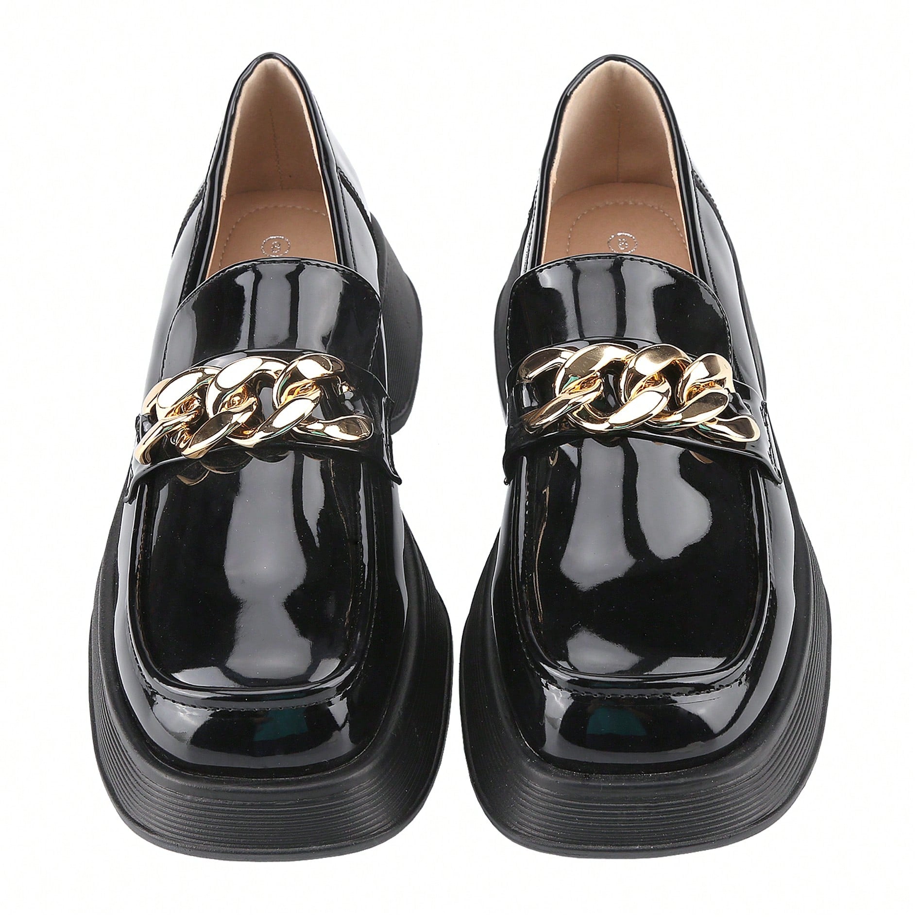 Platform Loafers For Women With Chain Comfort Chunky Heel Slip On Round Toe Business Work Shoes