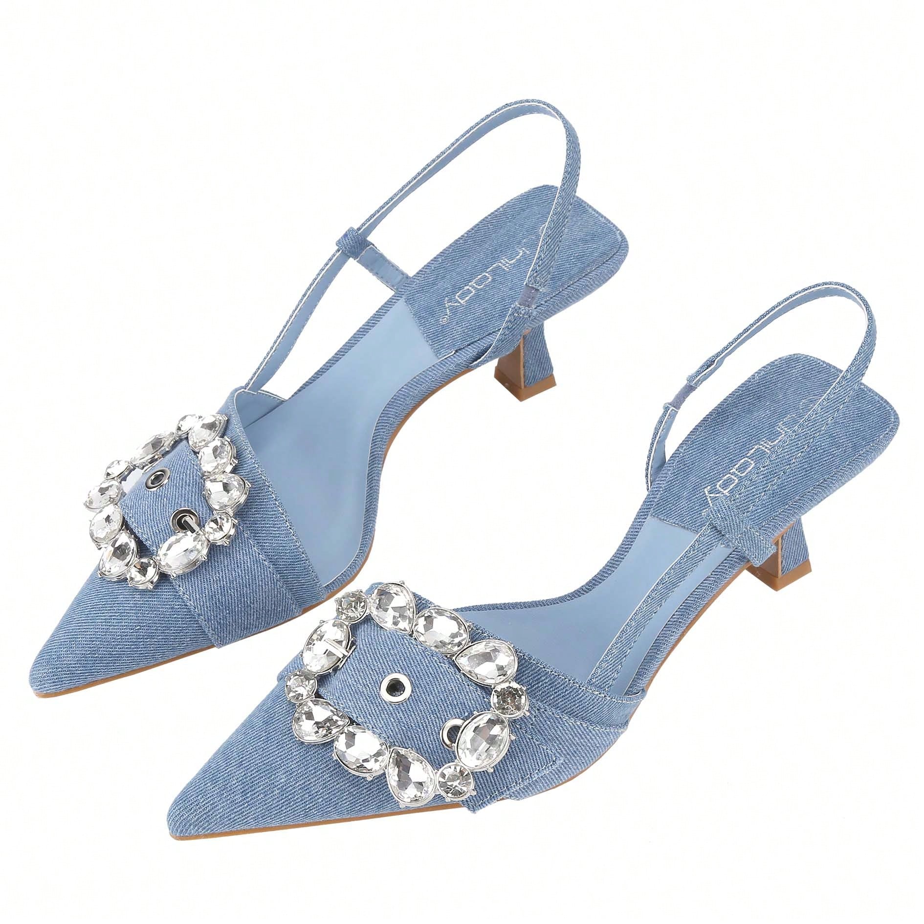 Stiletto Pumps Kitten Heel Slingback Sandals Strappy Closed Pointed Toe Mule Heels Backless Rhinestones Dress Shoes For Party Office Date