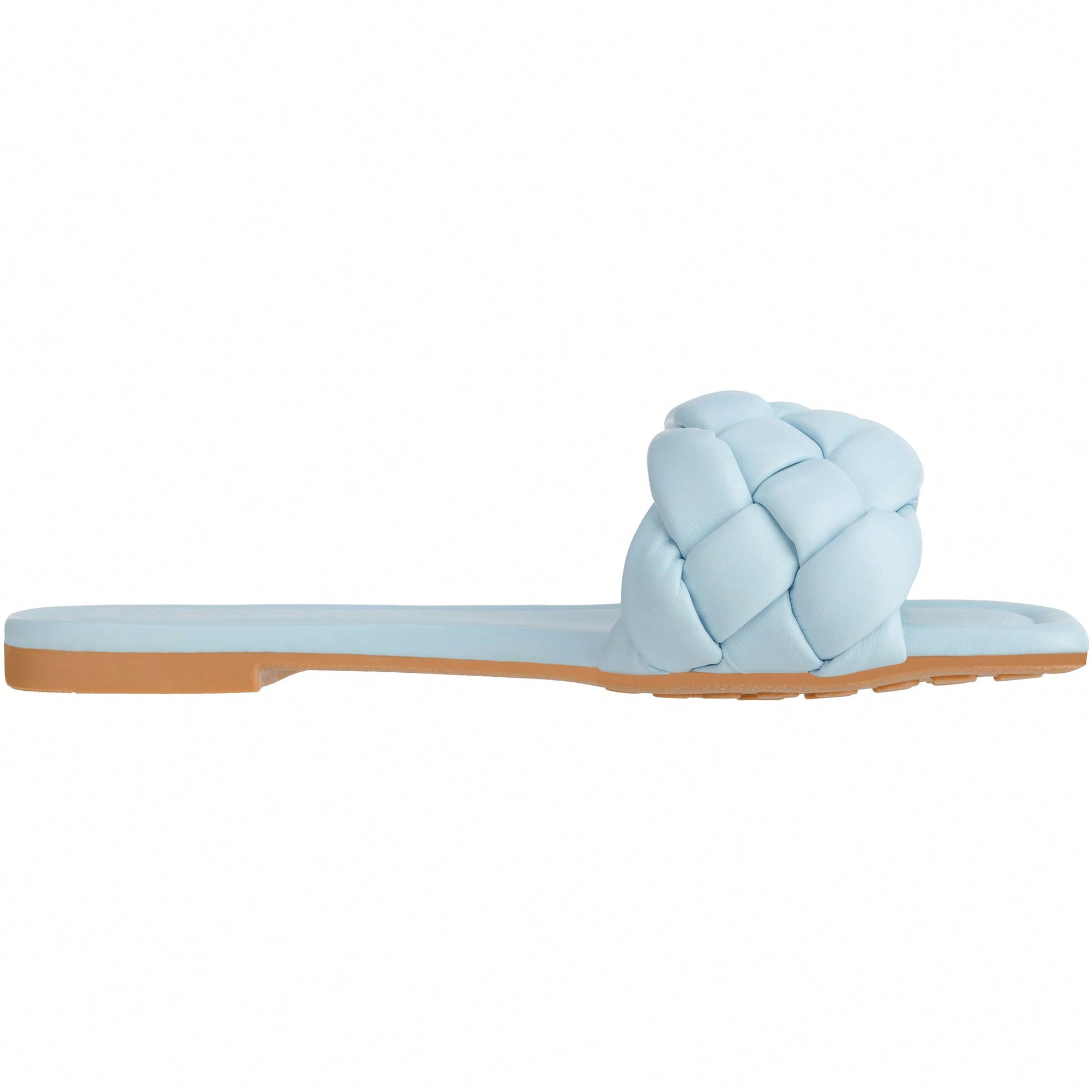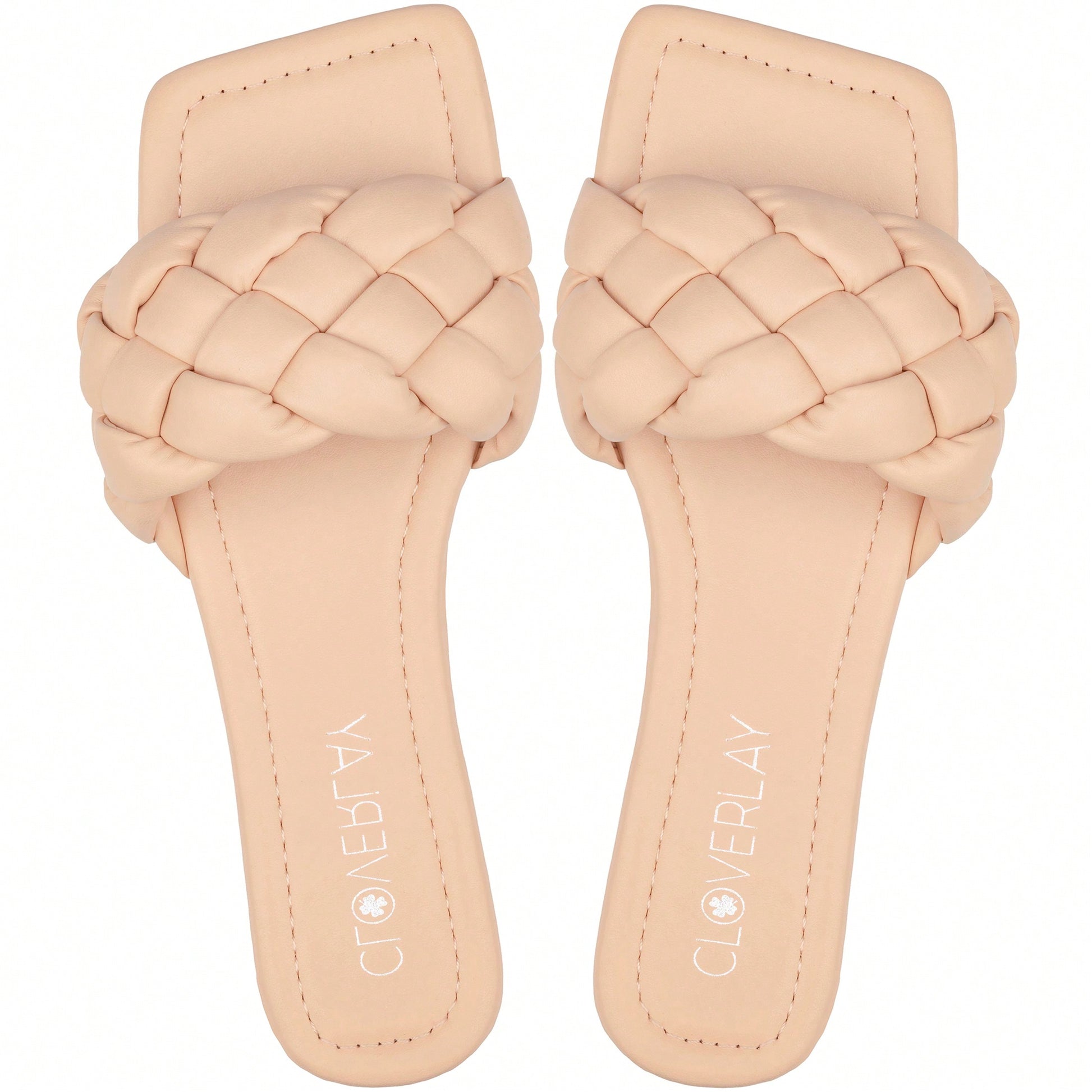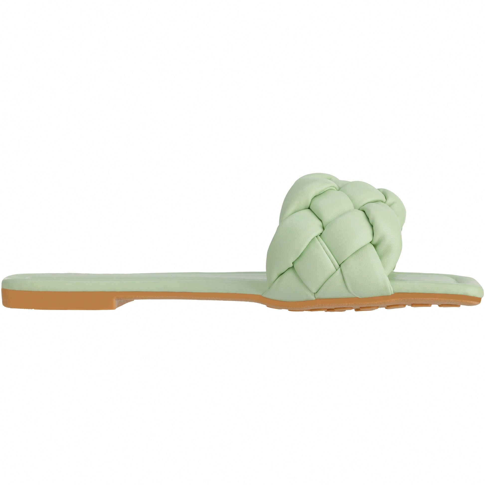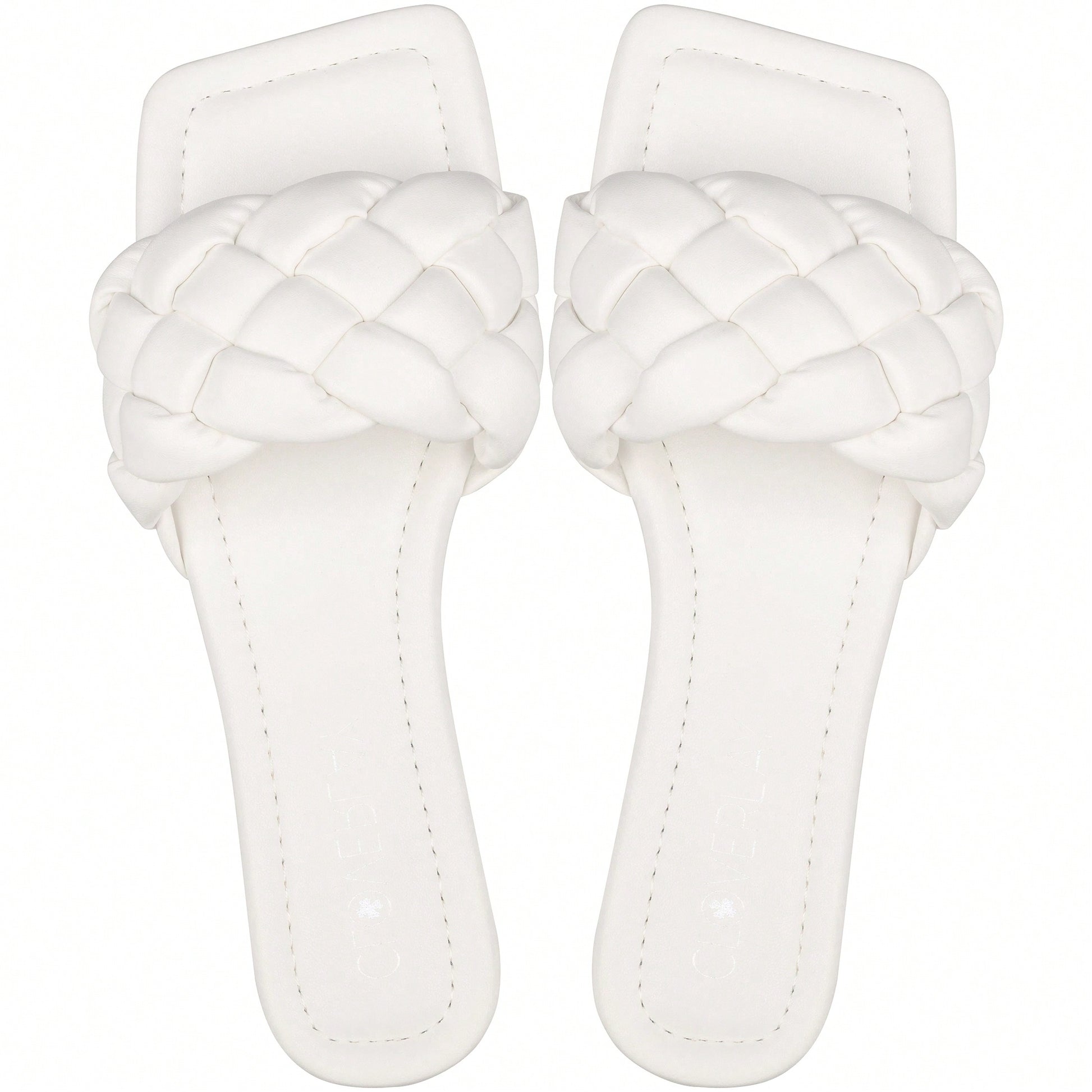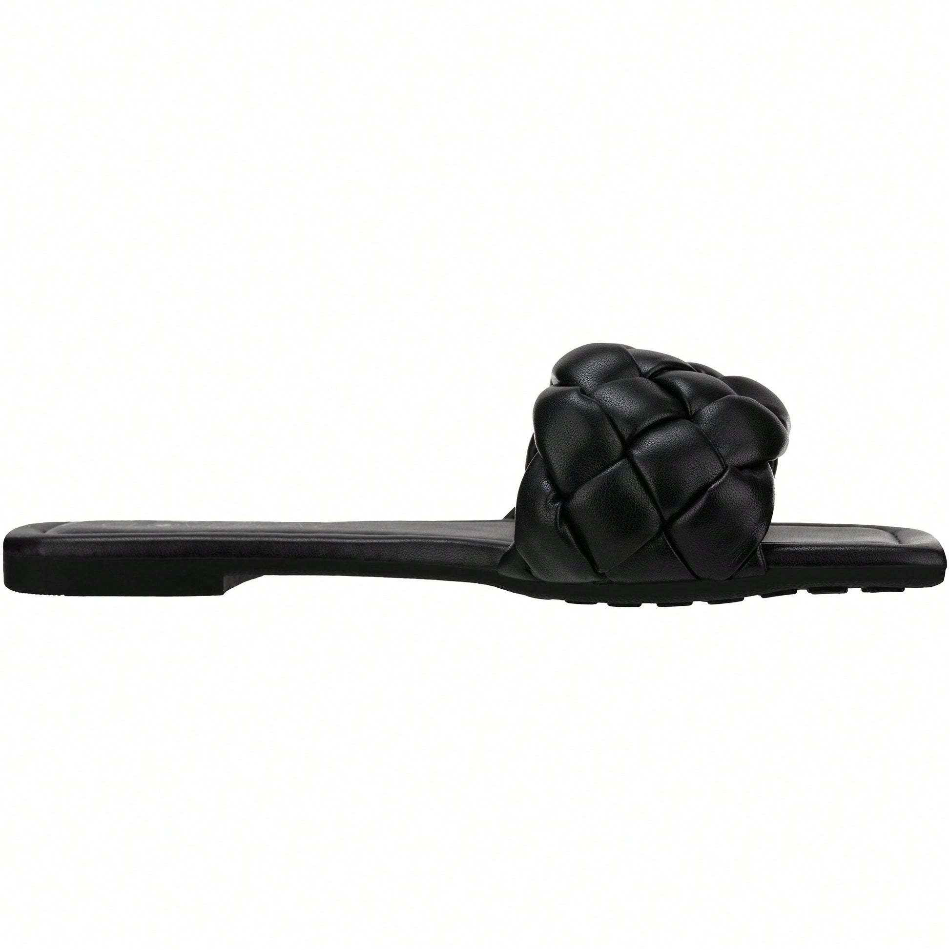 Women Braided Design Single Band Flat Sandals Open Toe Slide Sandals Square Toe Woven Sandals