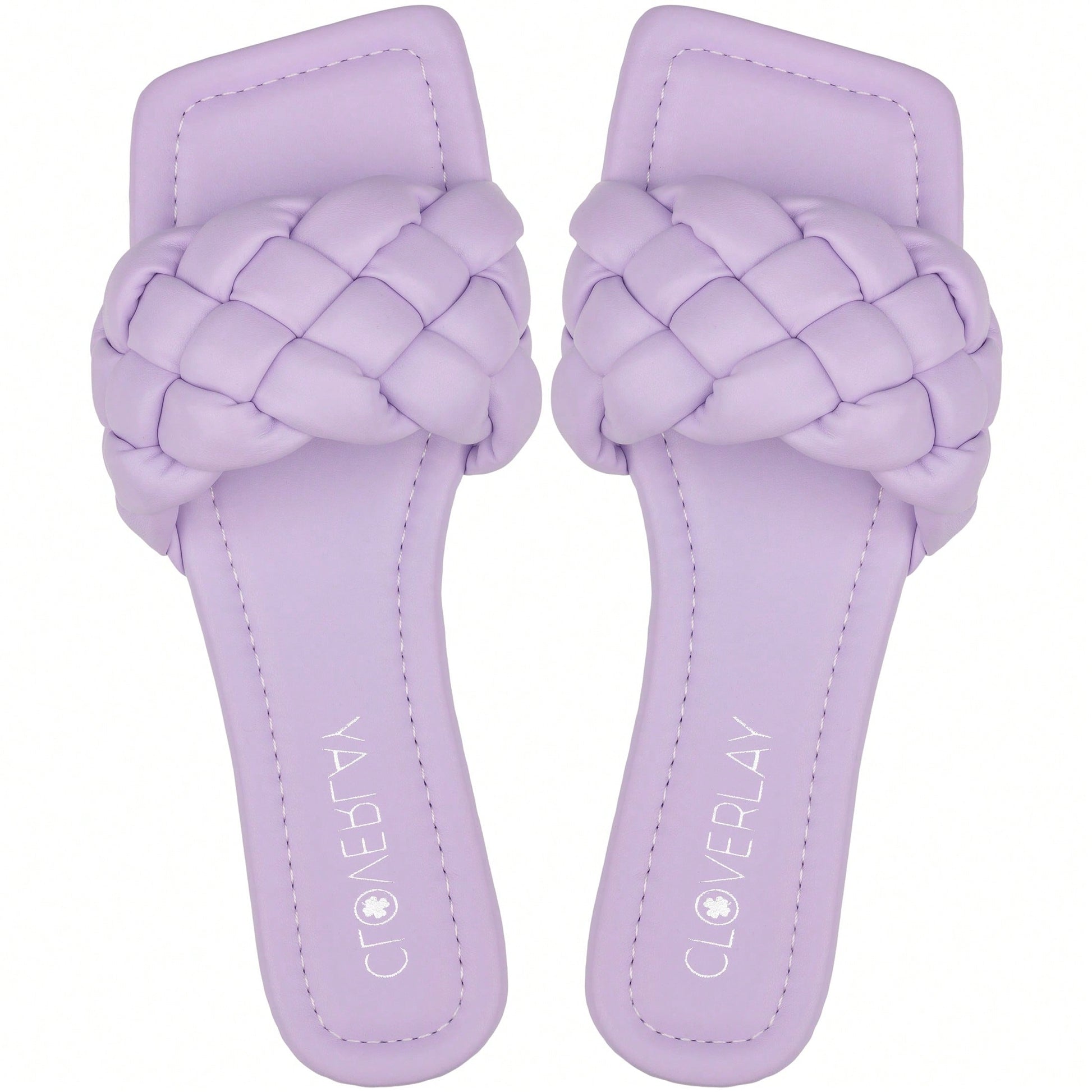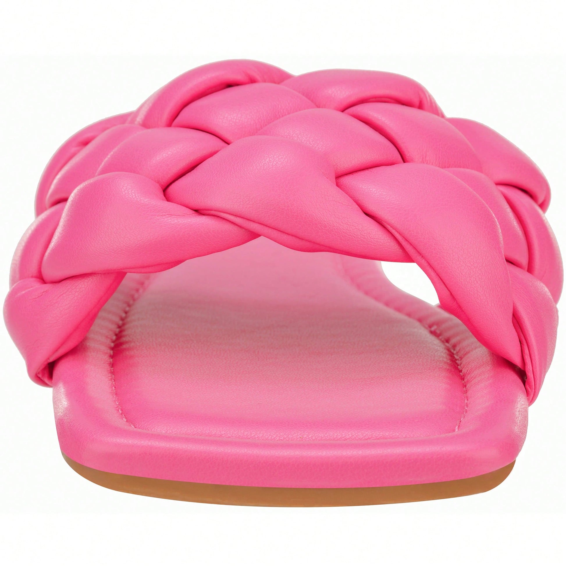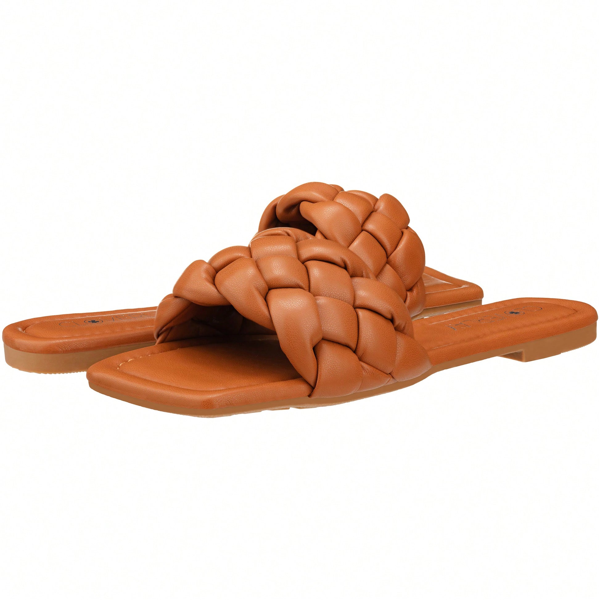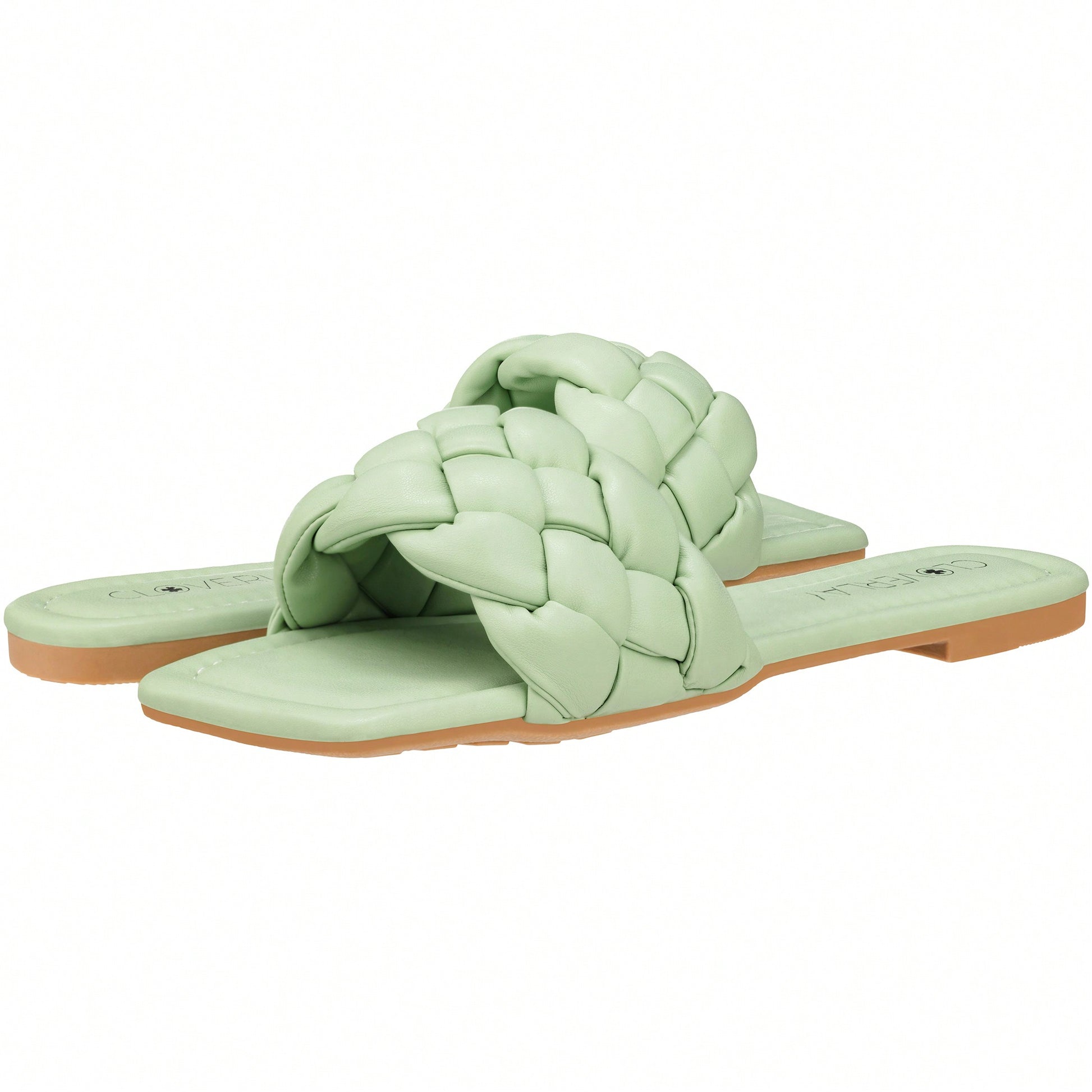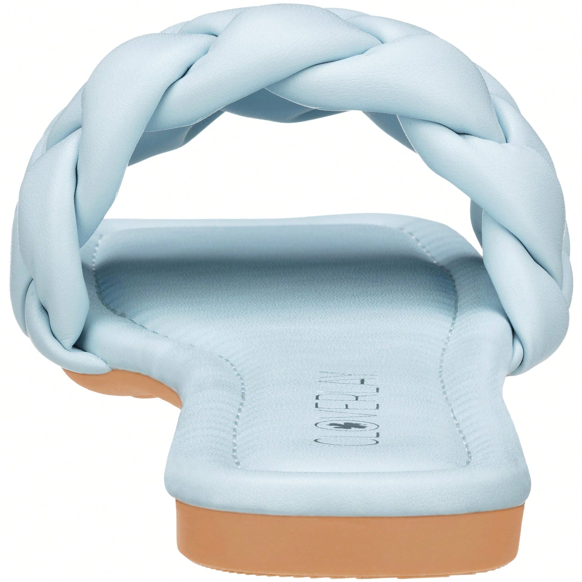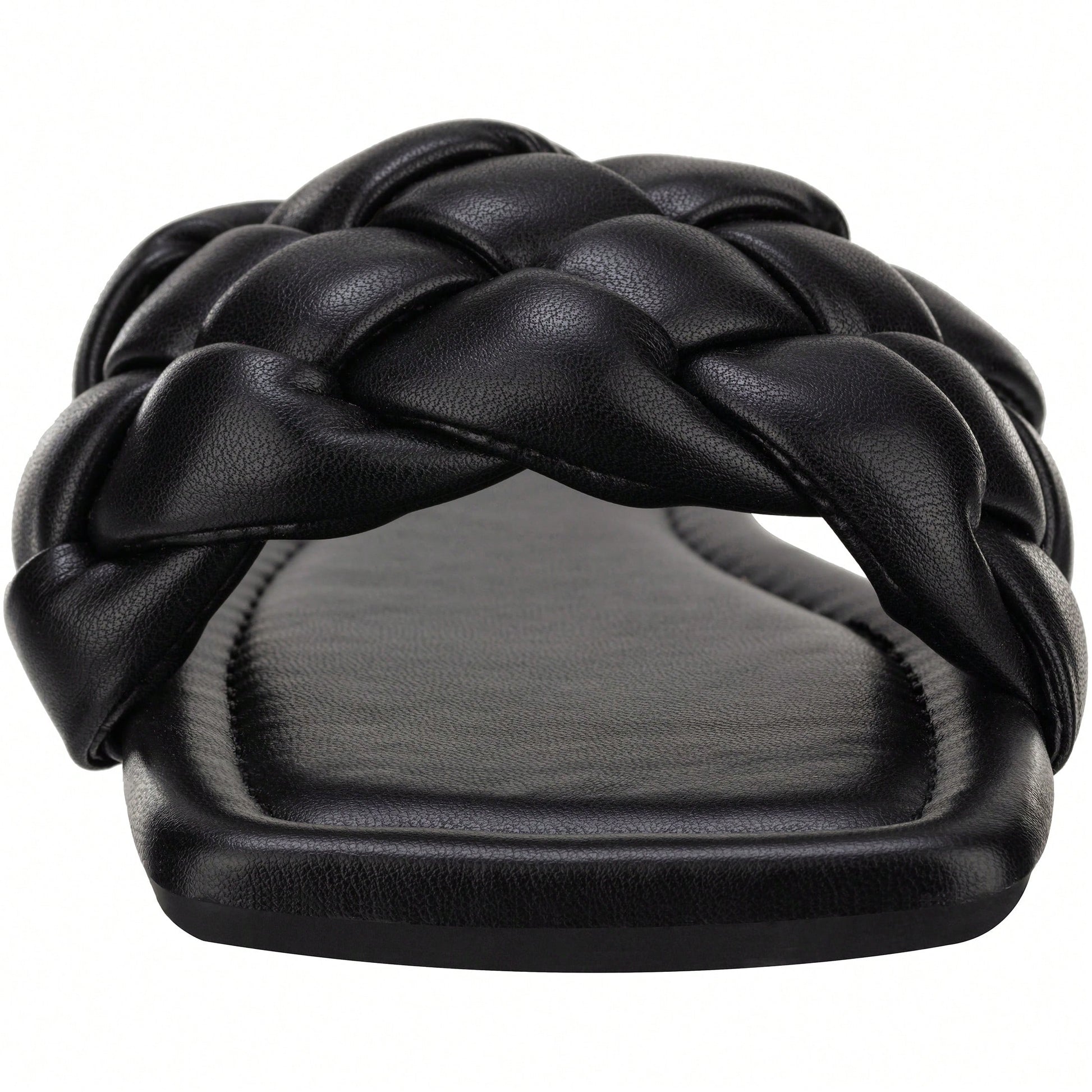 Women Braided Design Single Band Flat Sandals Open Toe Slide Sandals Square Toe Woven Sandals