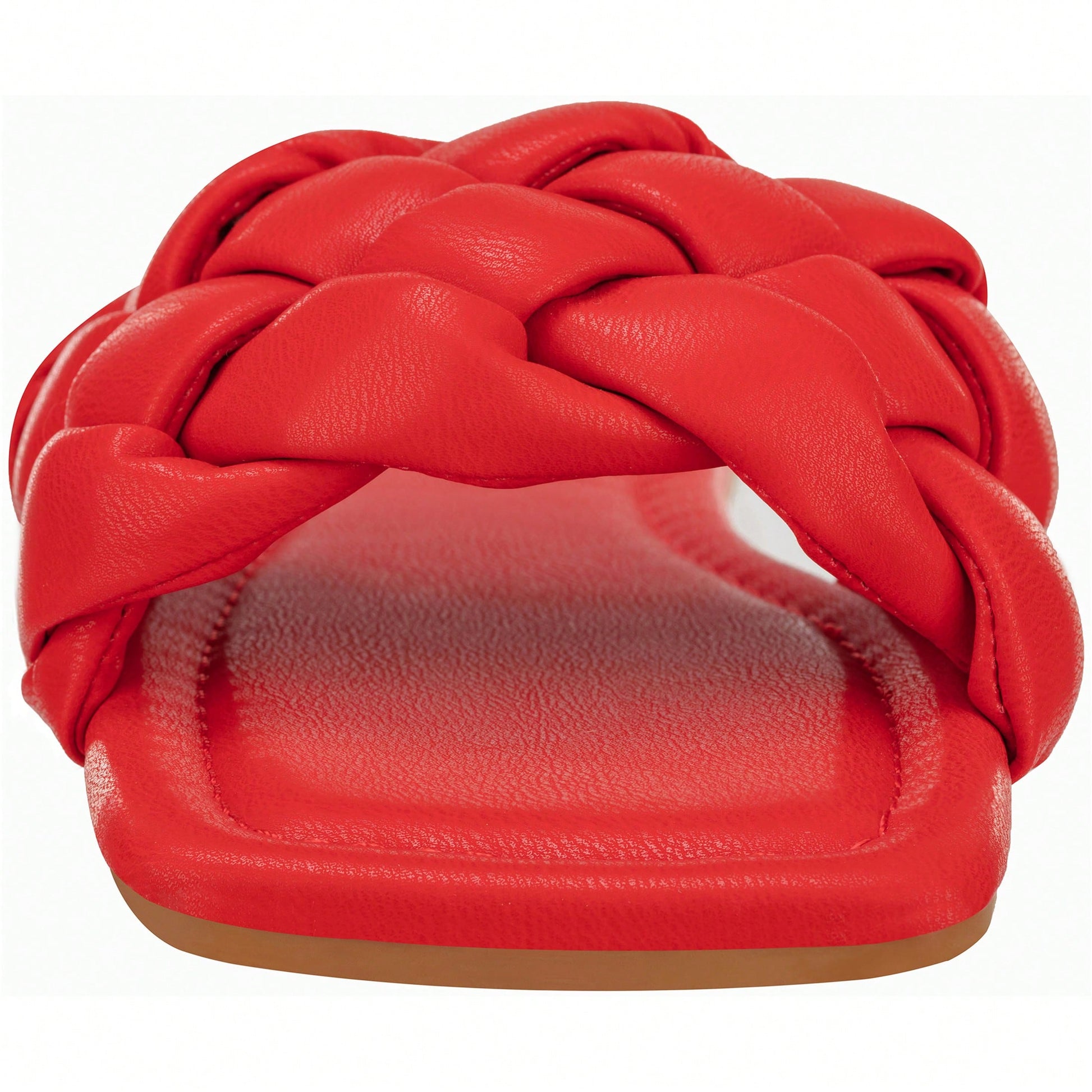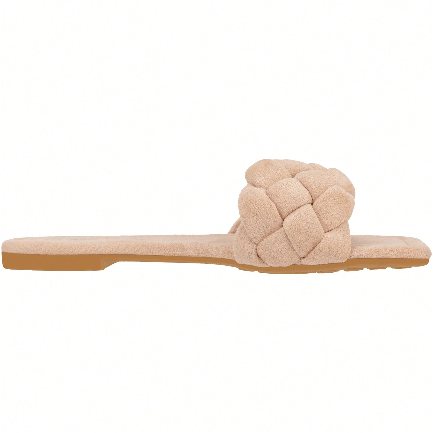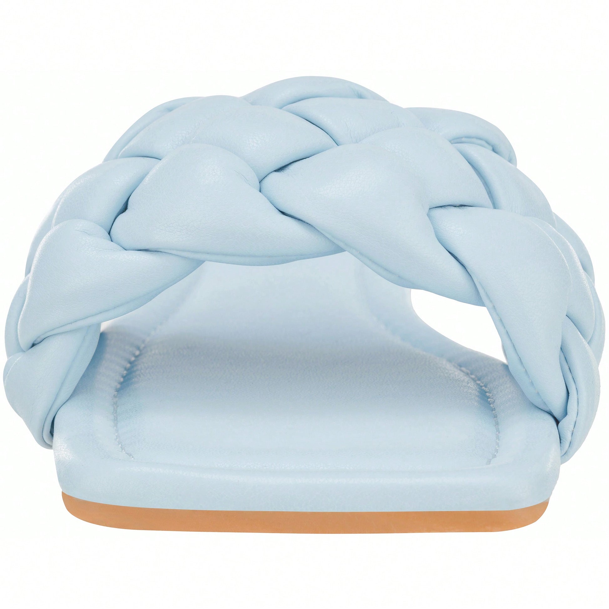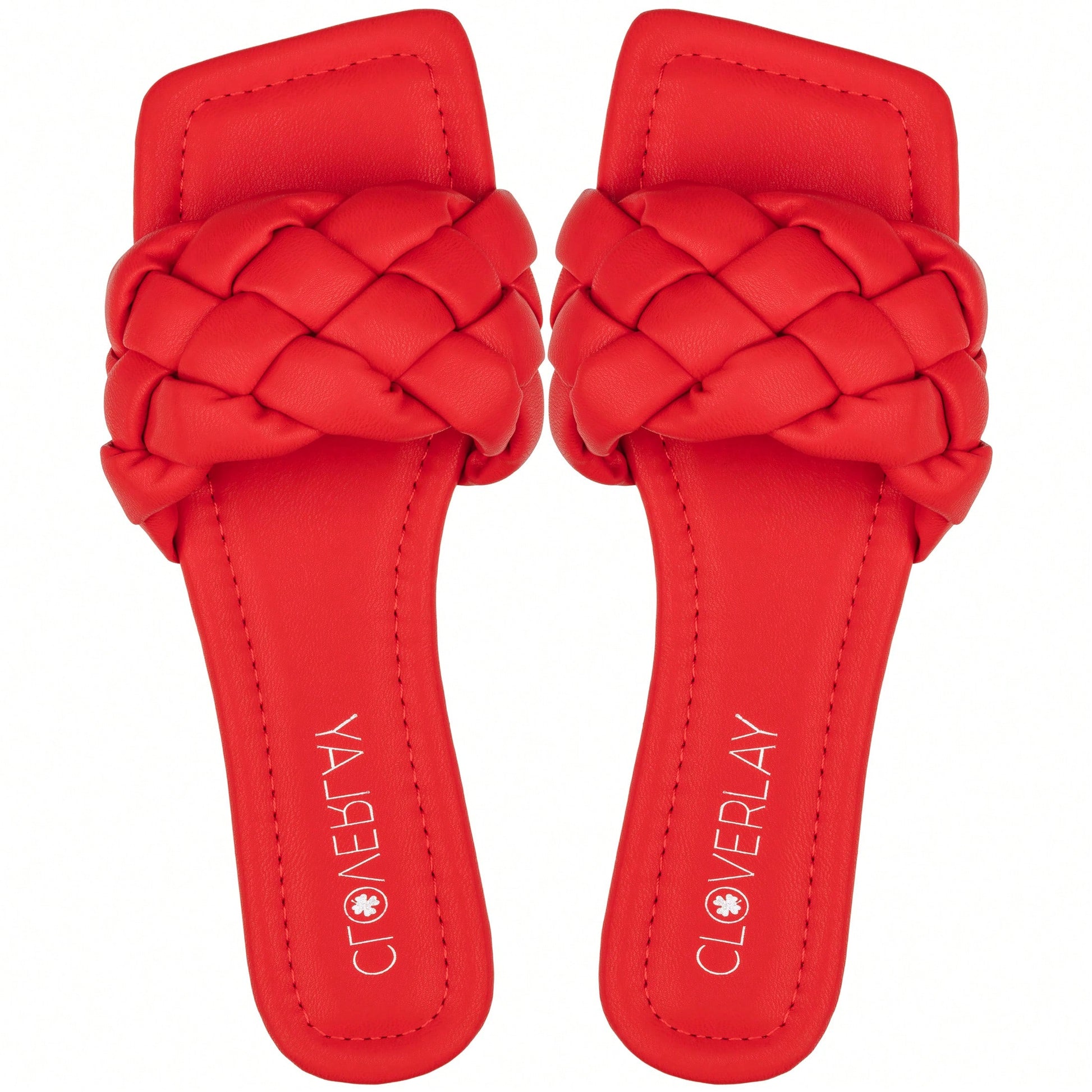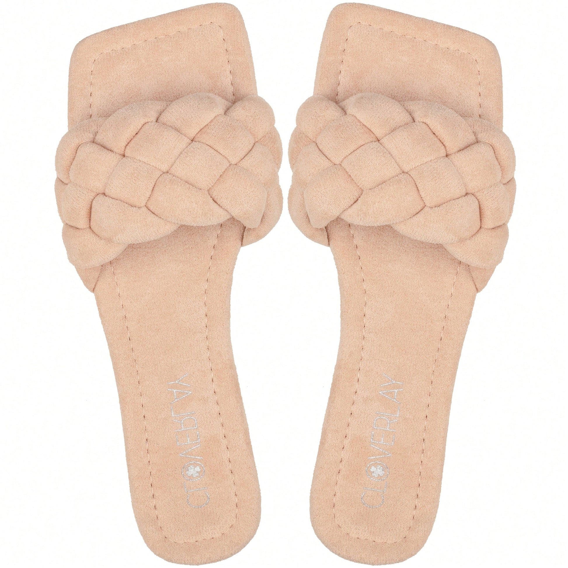 Women Braided Design Single Band Flat Sandals Open Toe Slide Sandals Square Toe Woven Sandals