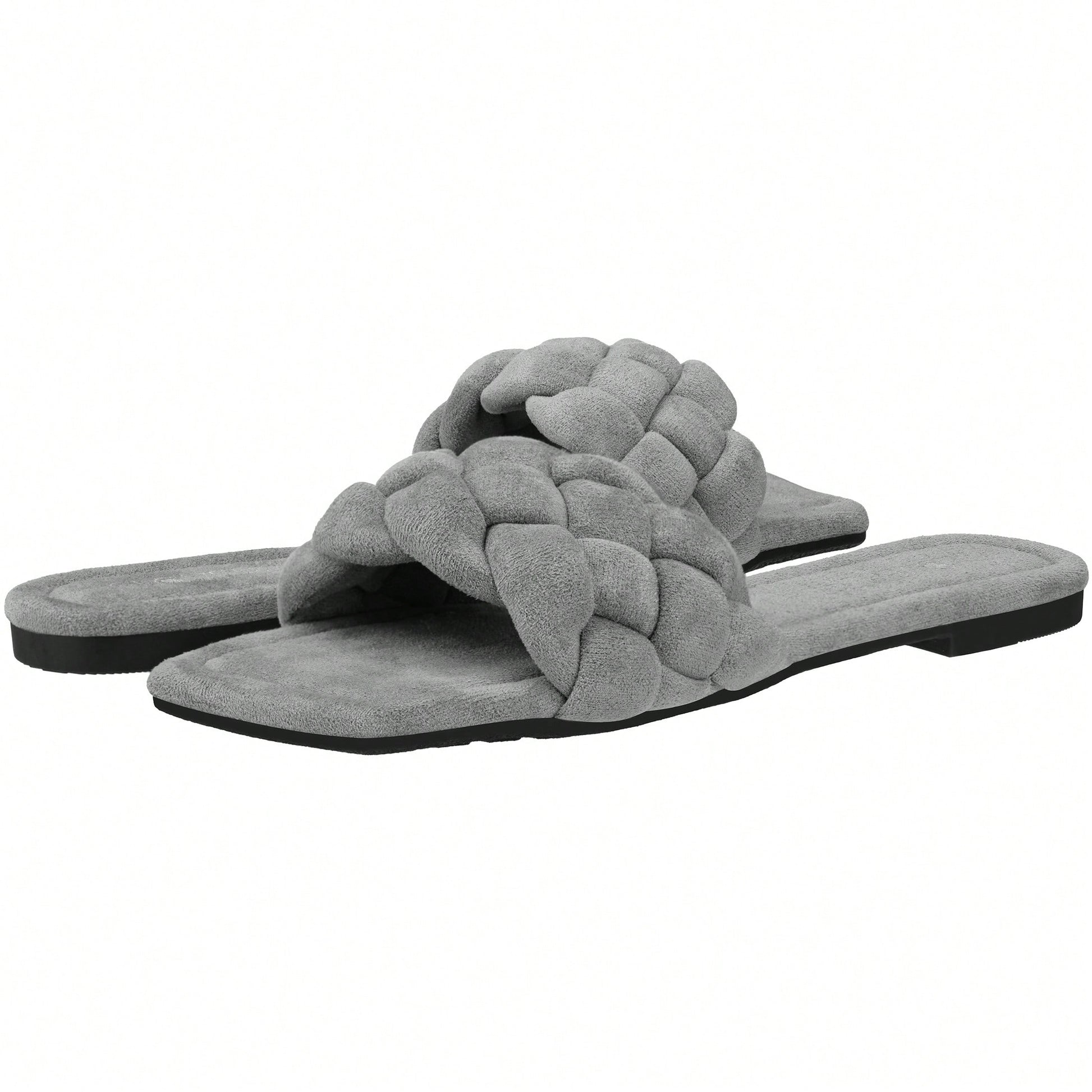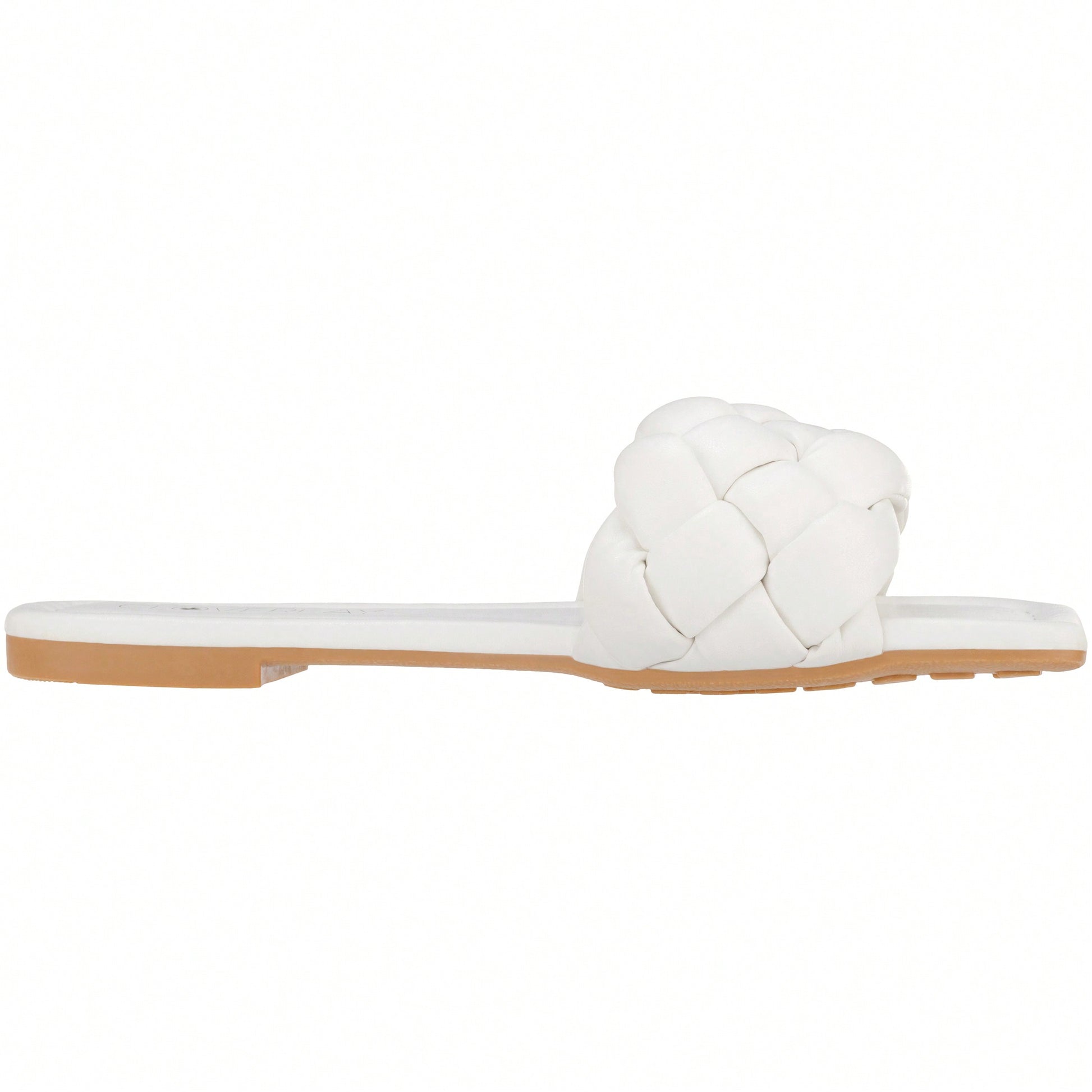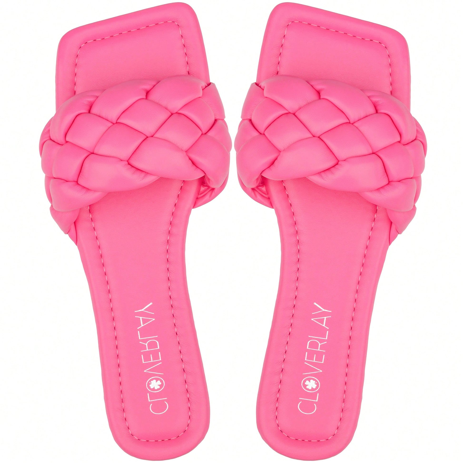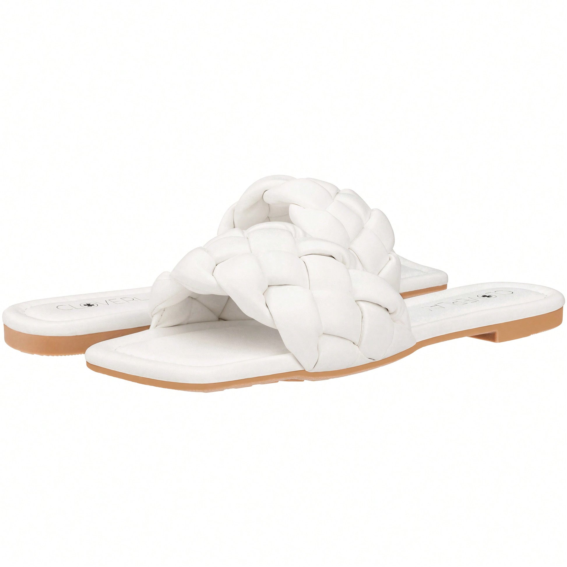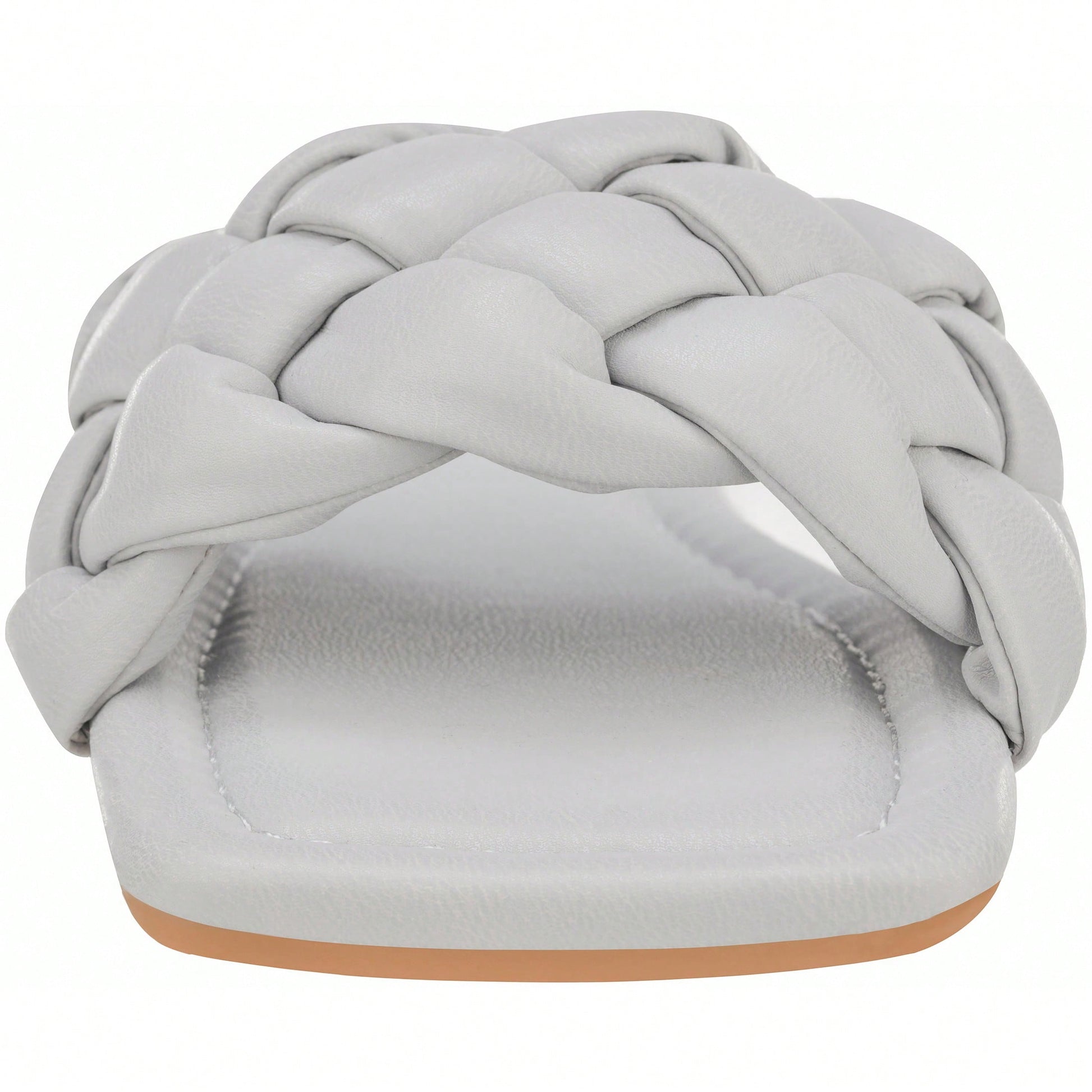Women Braided Design Single Band Flat Sandals Open Toe Slide Sandals Square Toe Woven Sandals