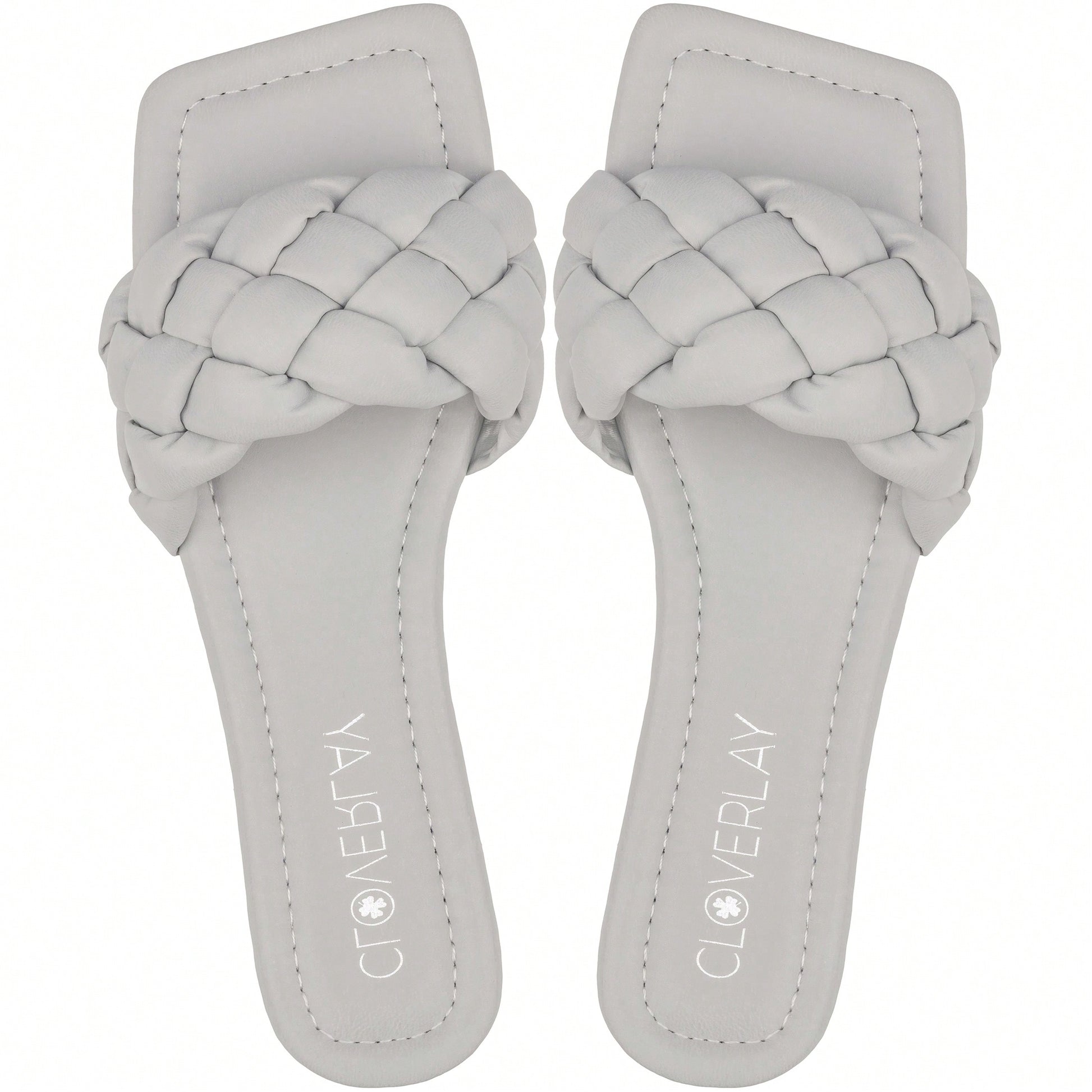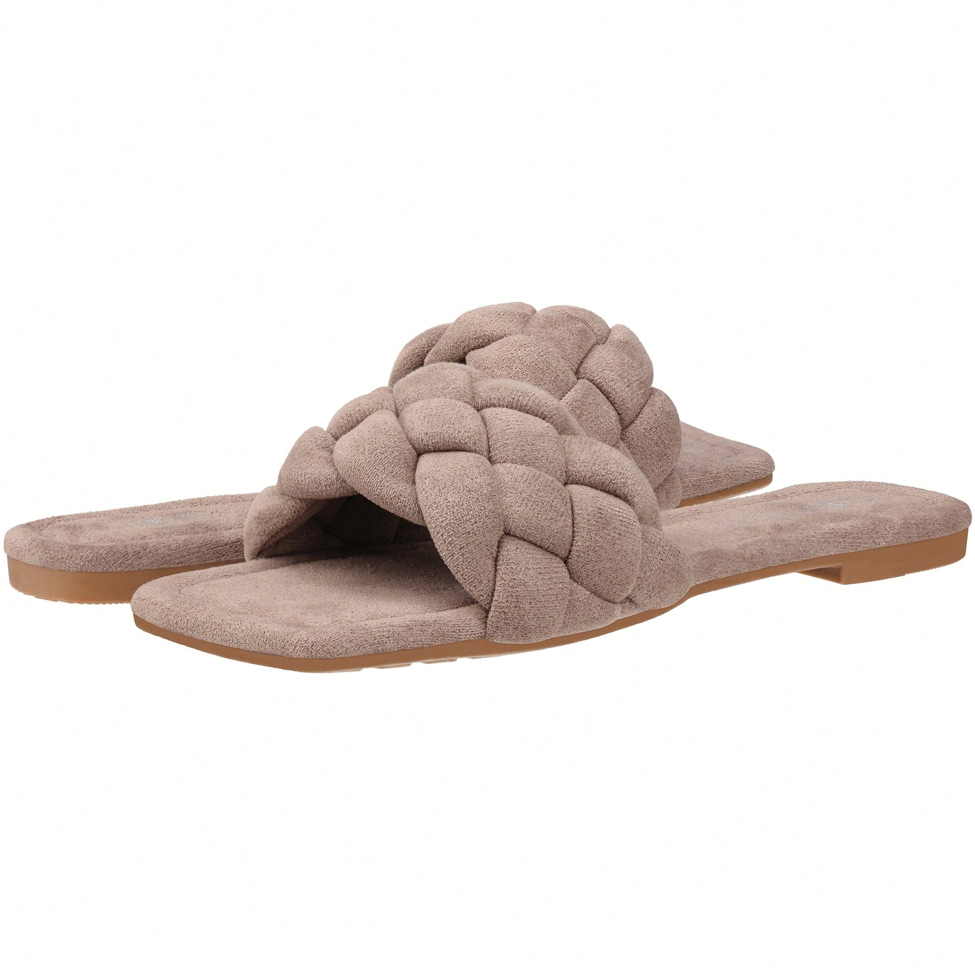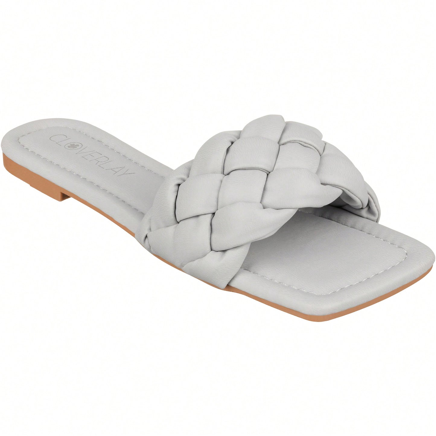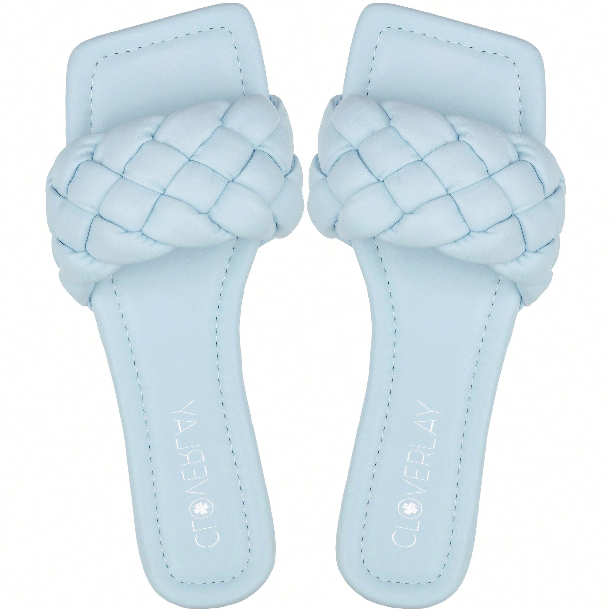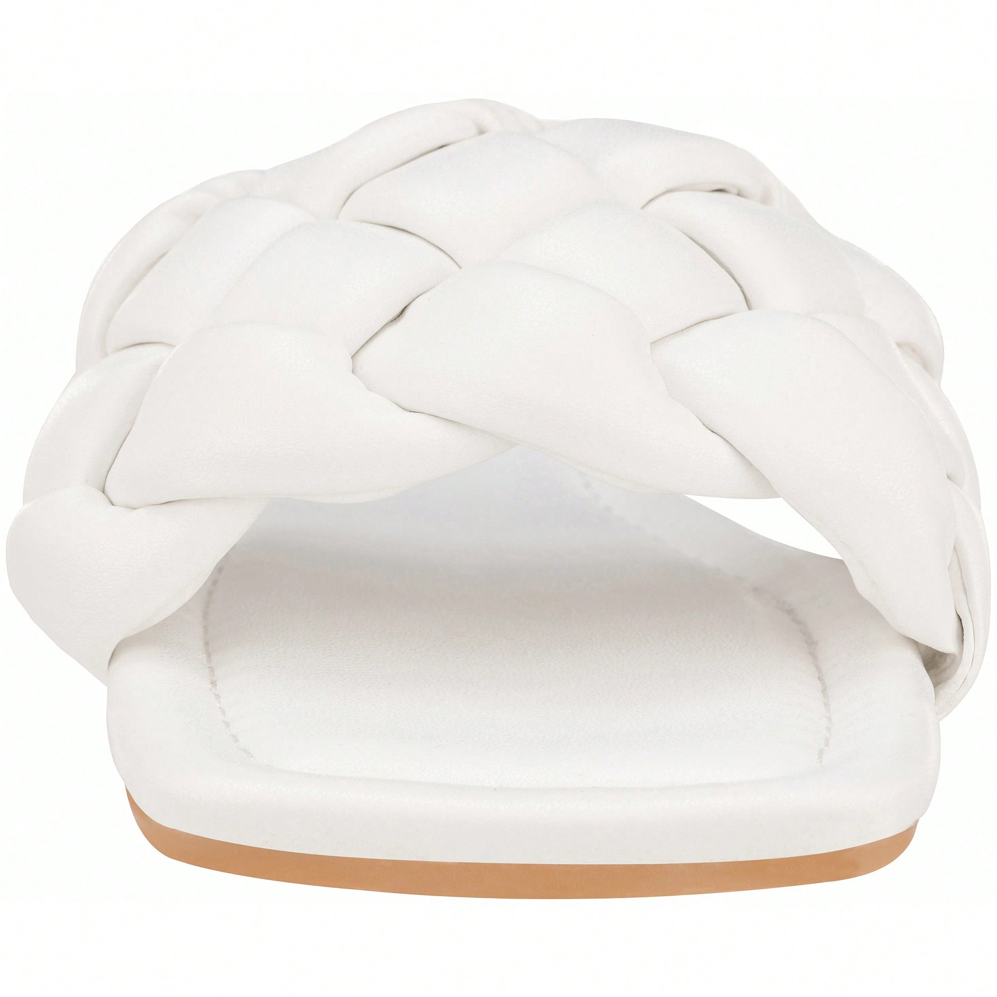 Women Braided Design Single Band Flat Sandals Open Toe Slide Sandals Square Toe Woven Sandals