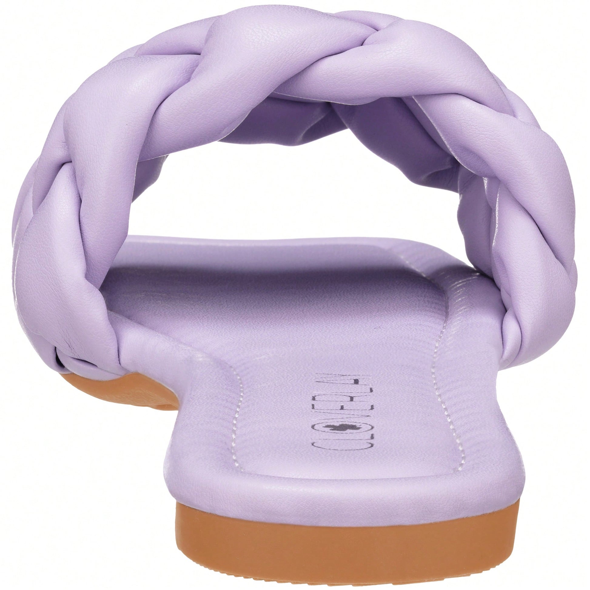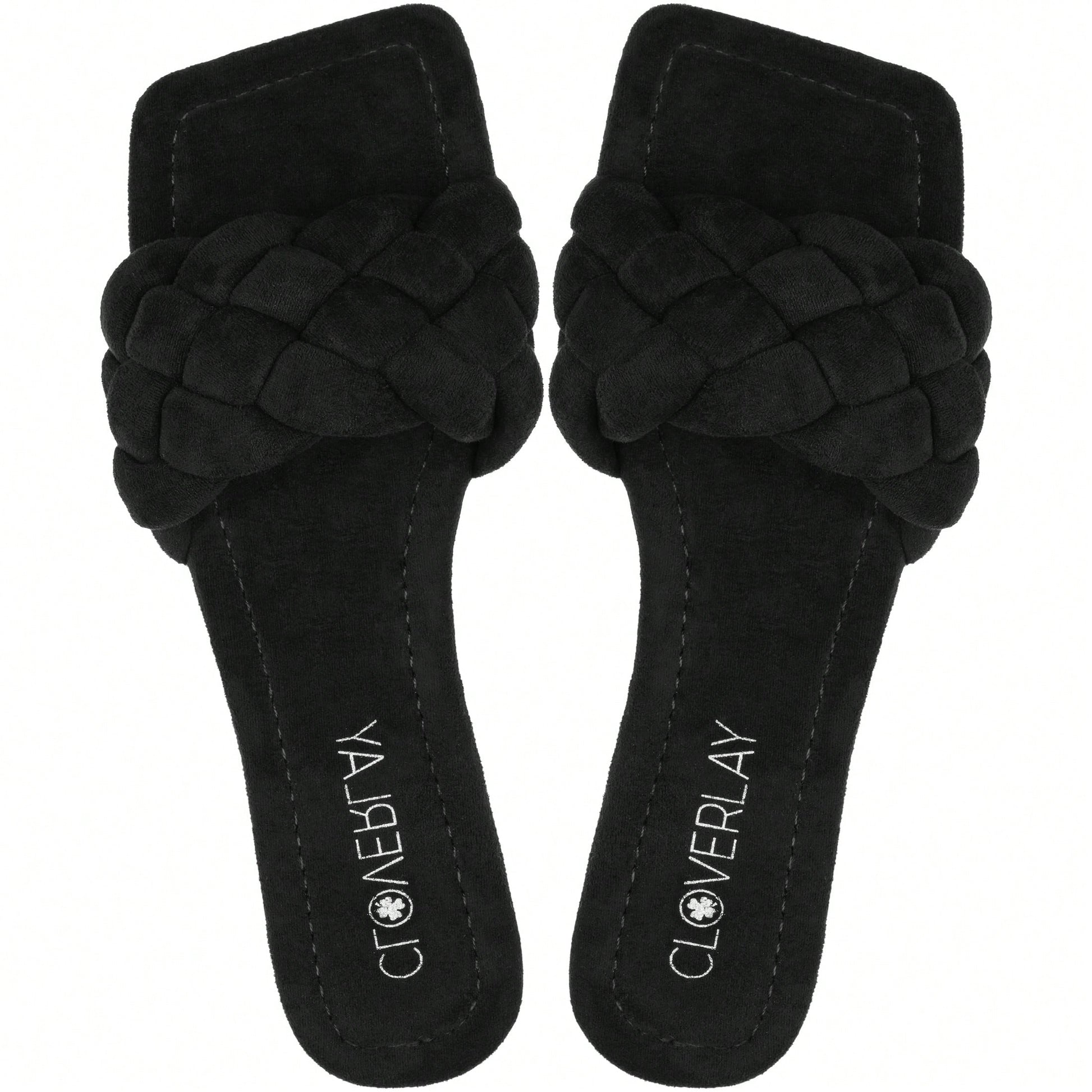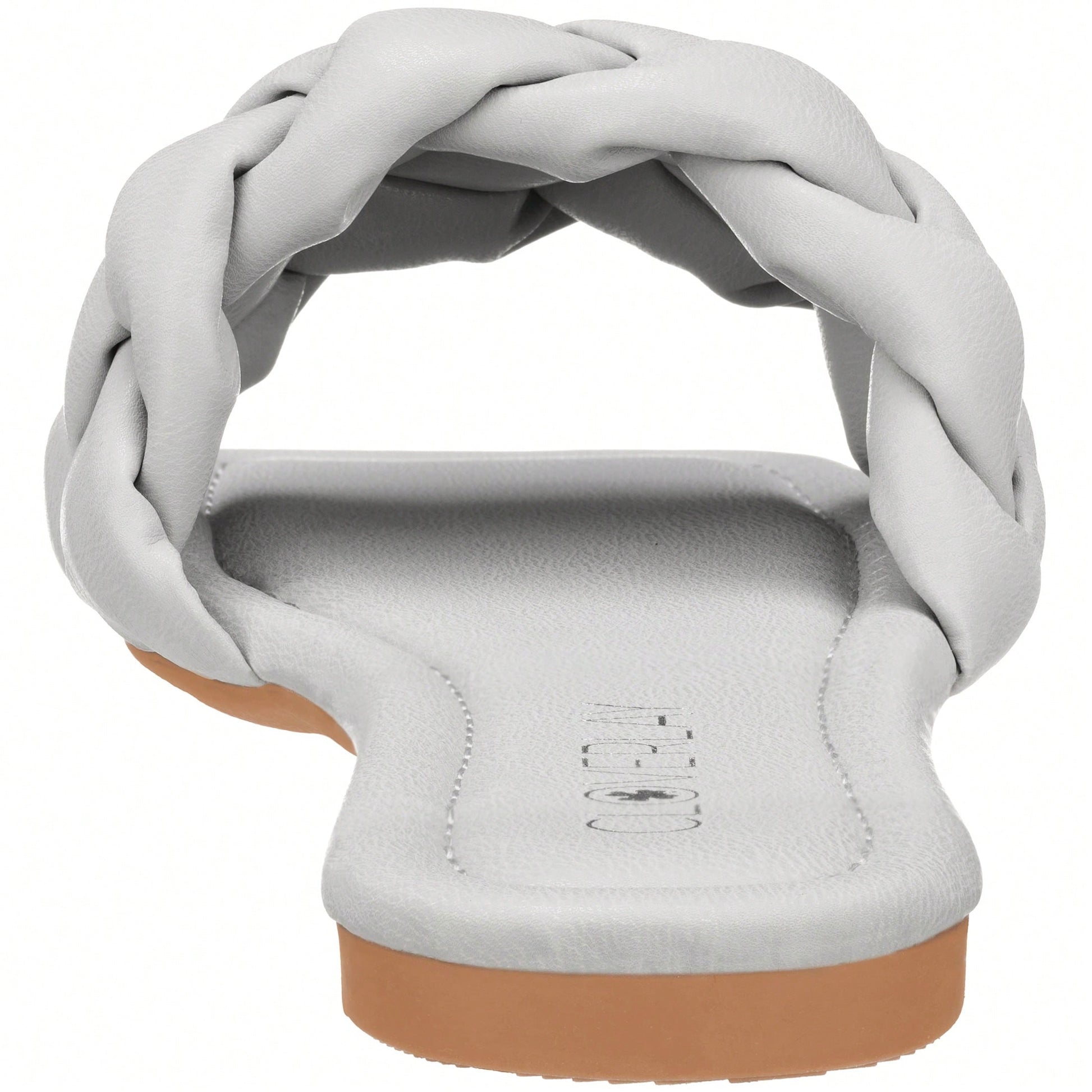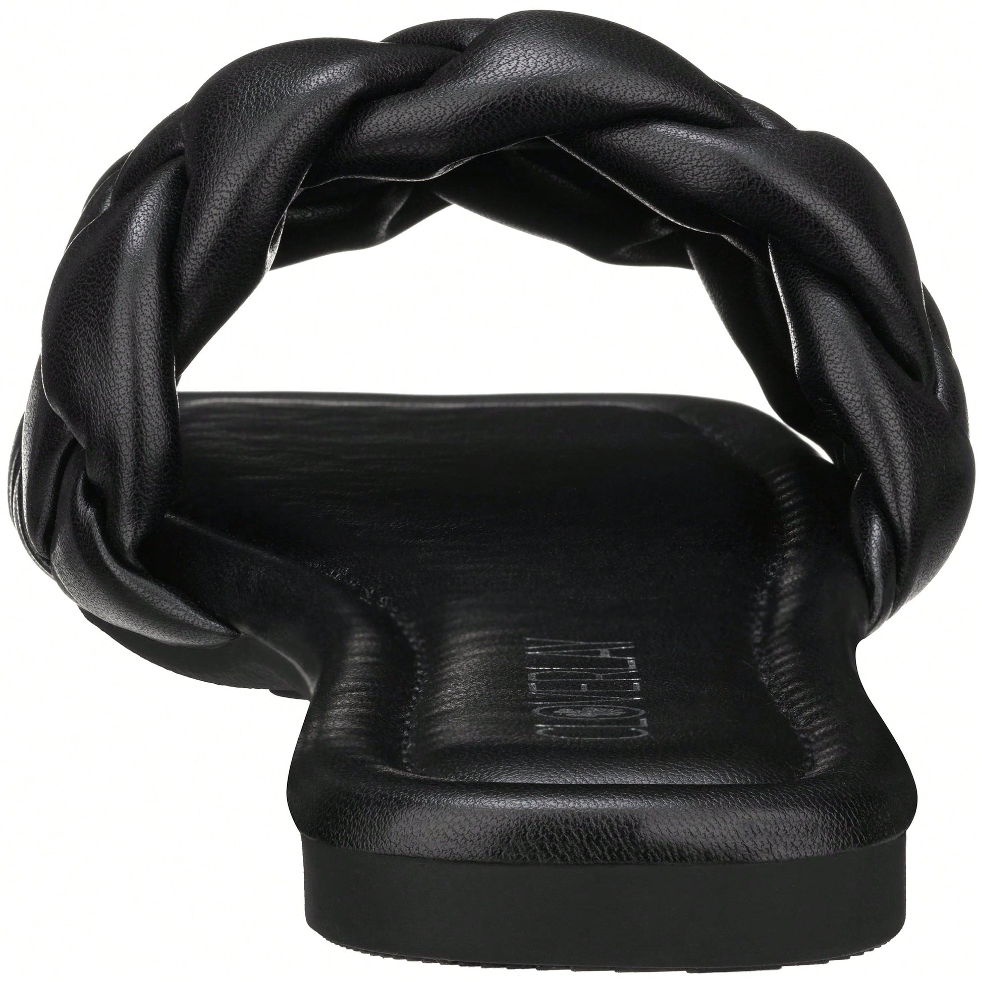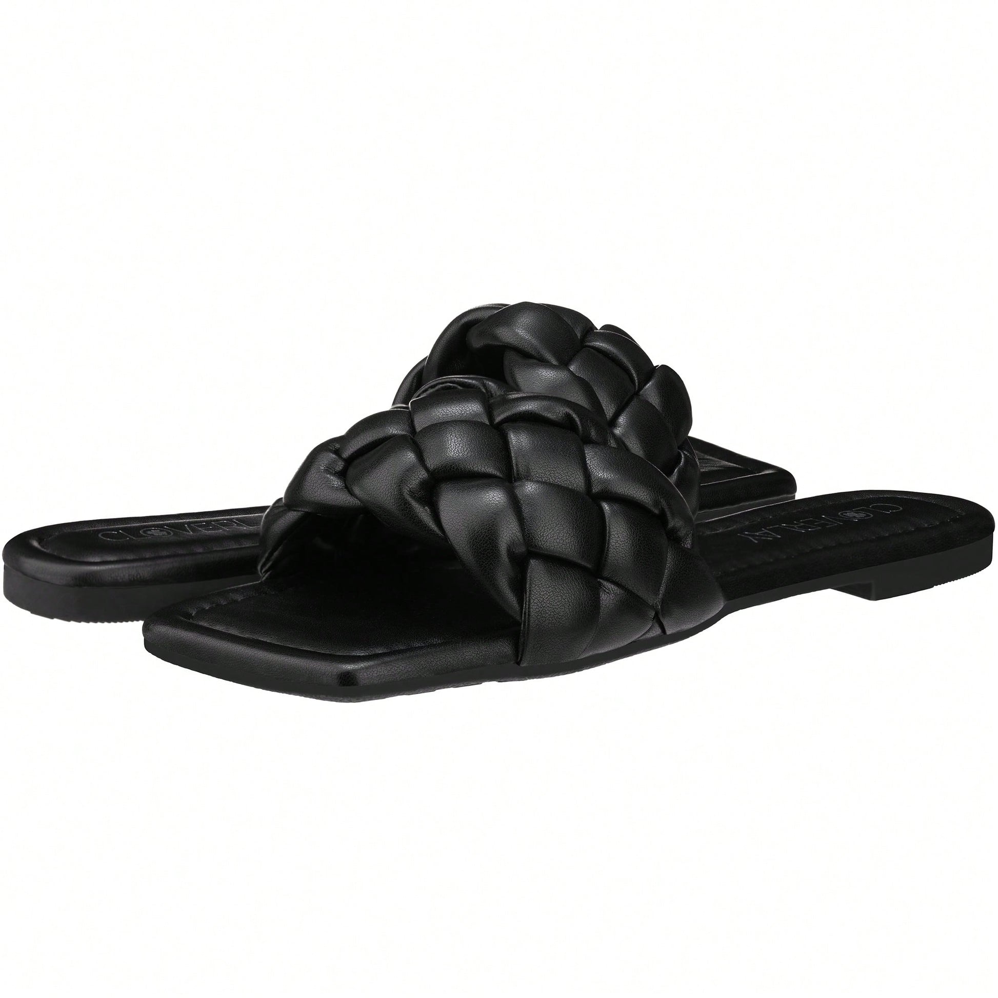 Women Braided Design Single Band Flat Sandals Open Toe Slide Sandals Square Toe Woven Sandals