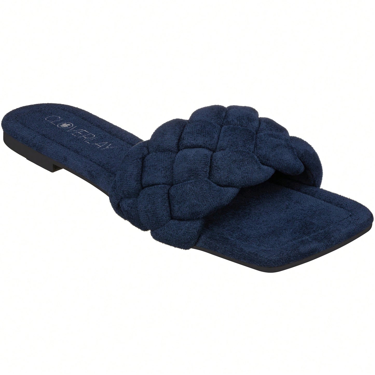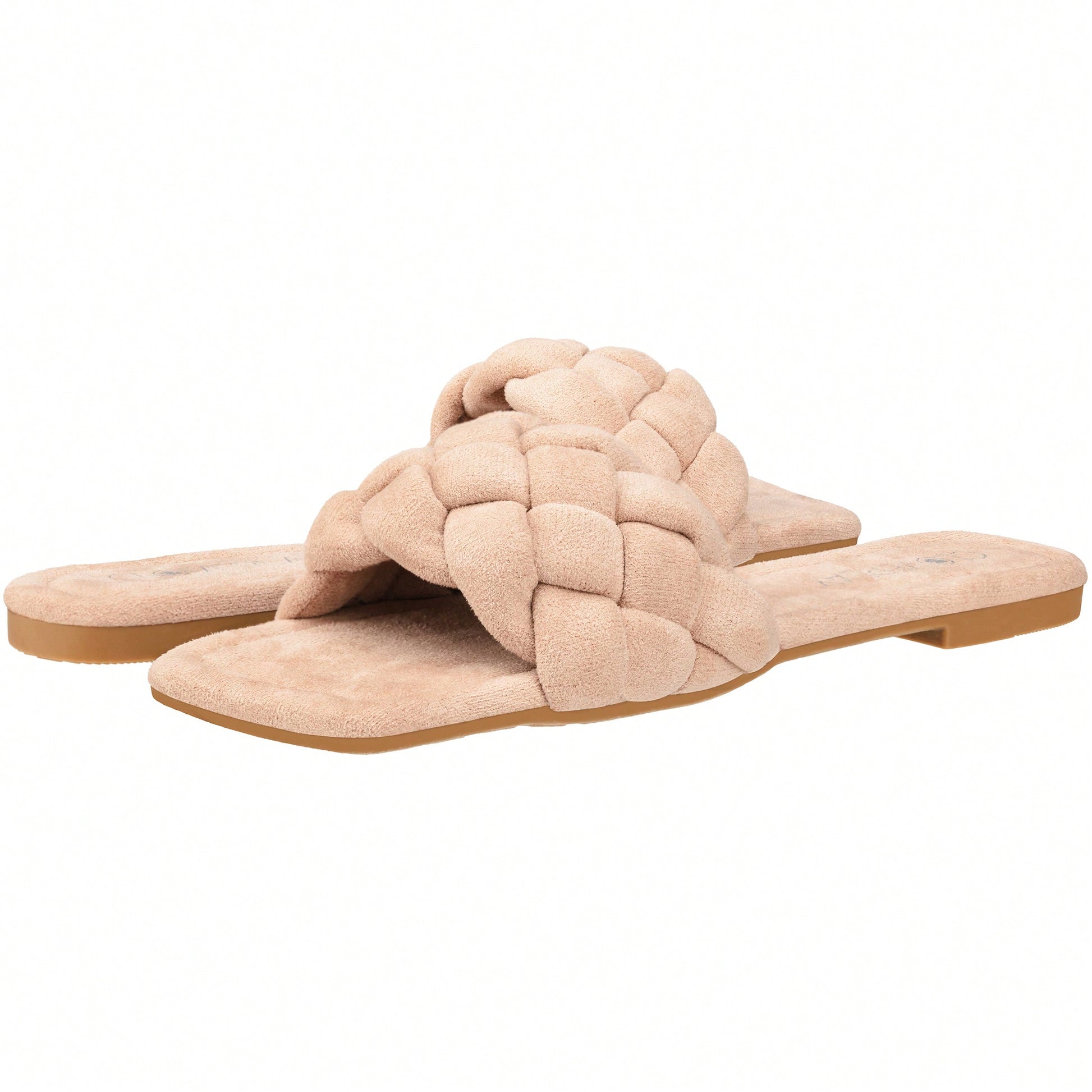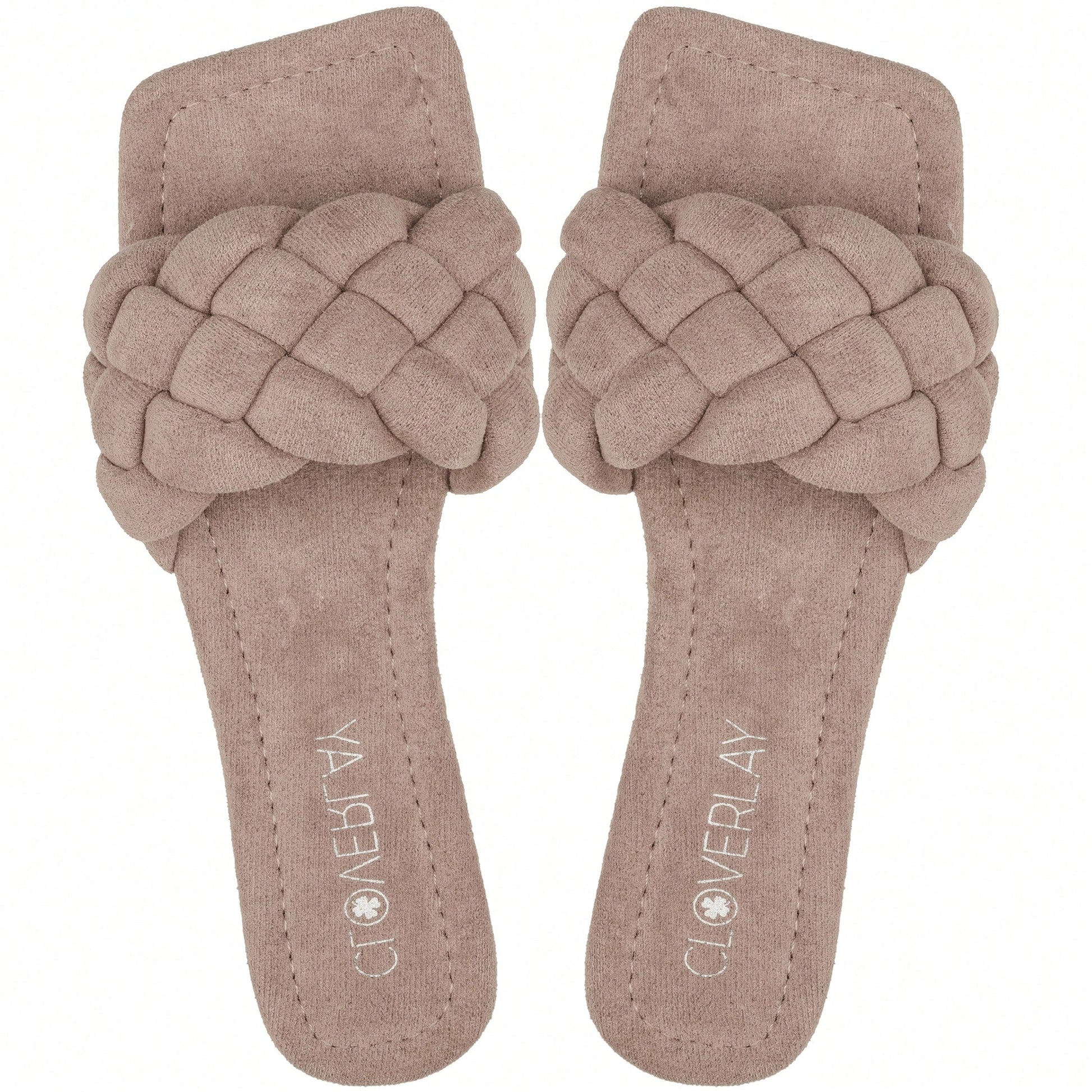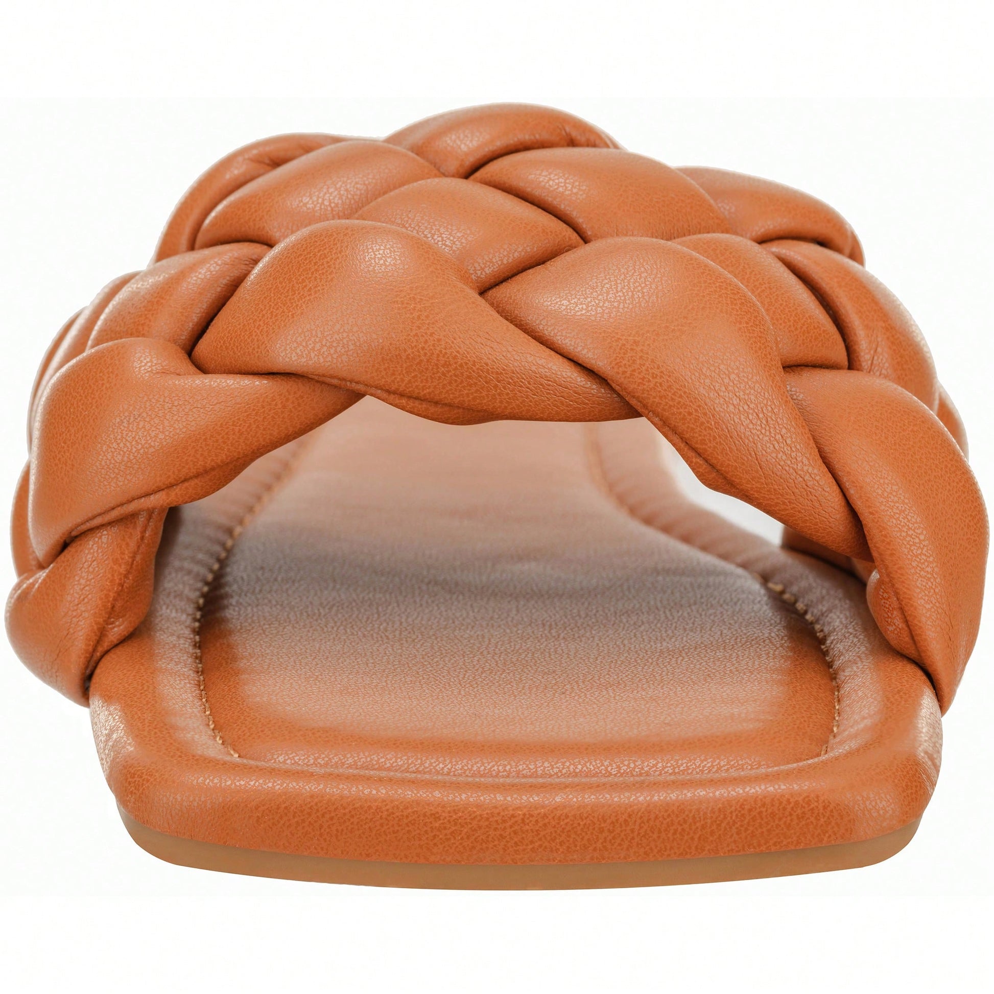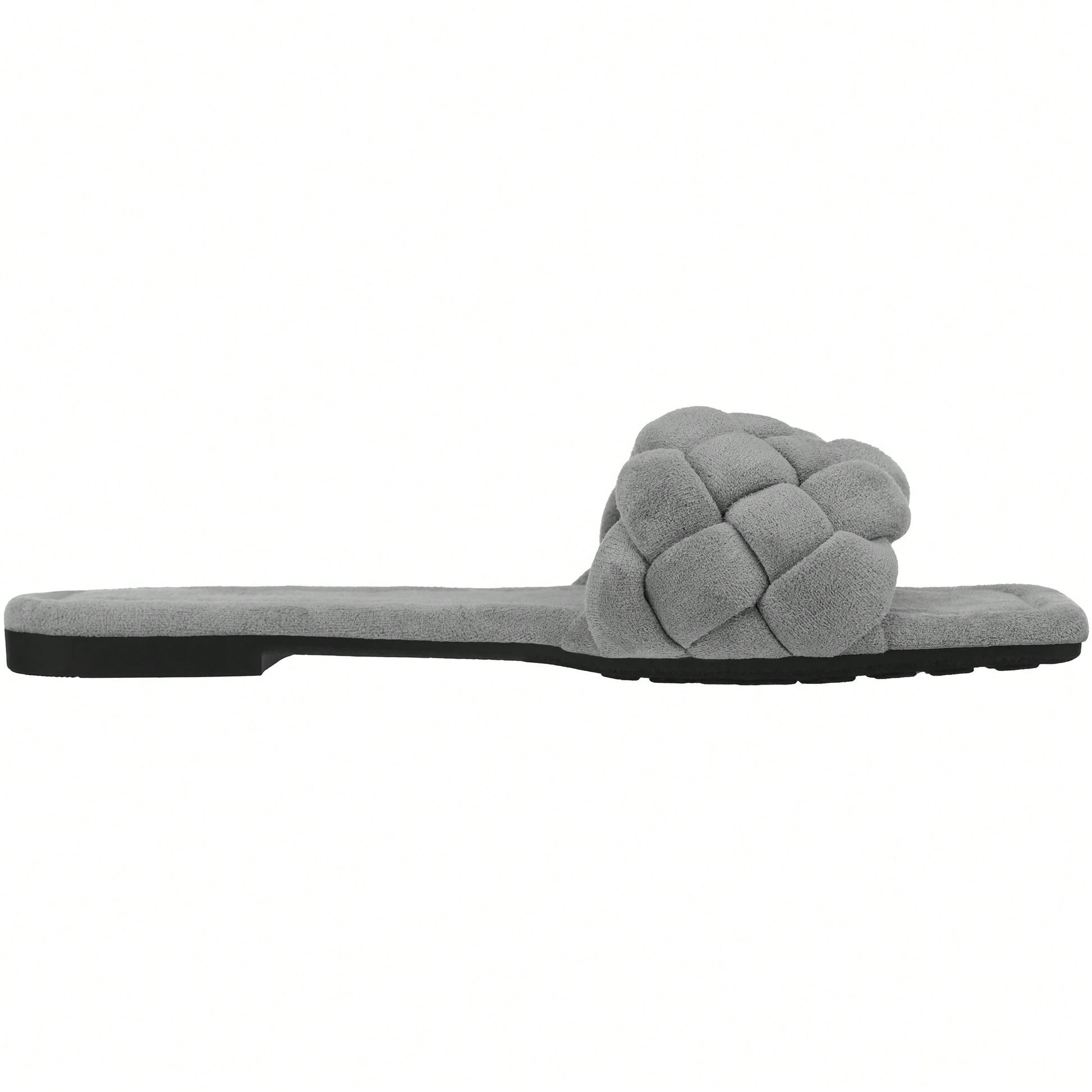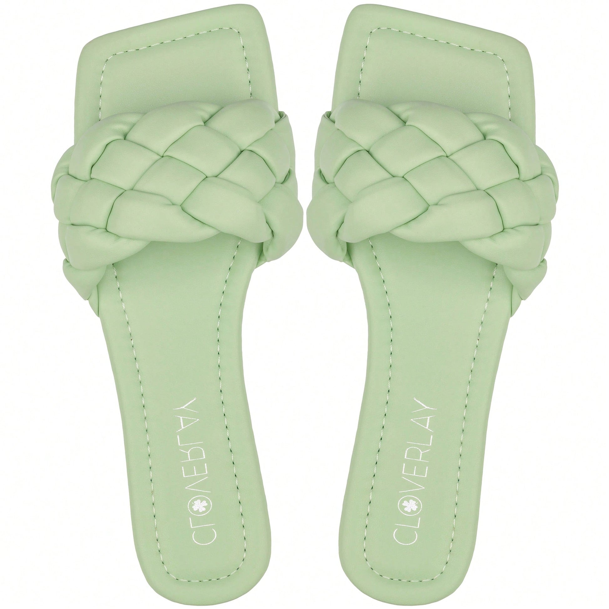 Women Braided Design Single Band Flat Sandals Open Toe Slide Sandals Square Toe Woven Sandals