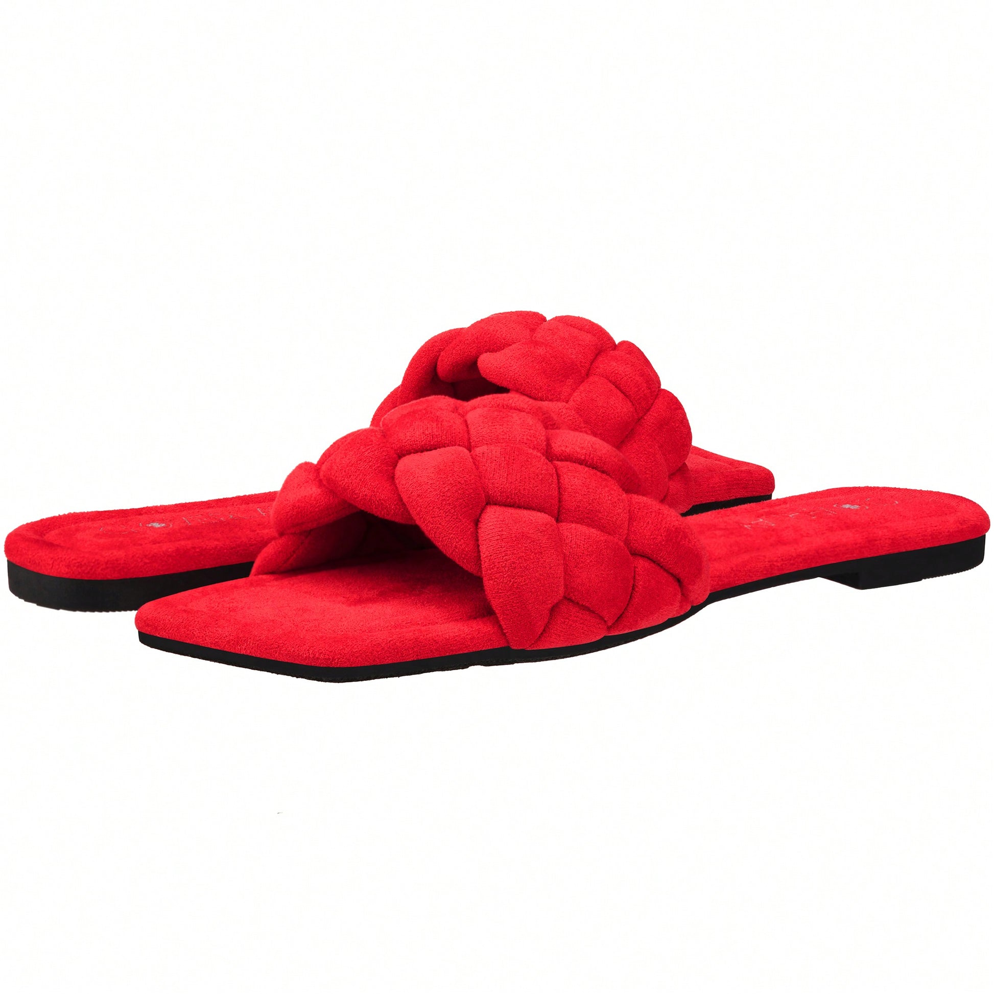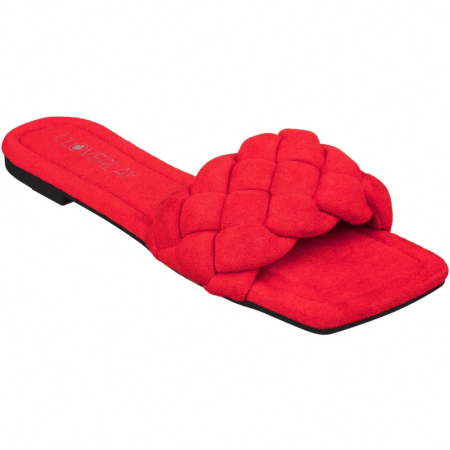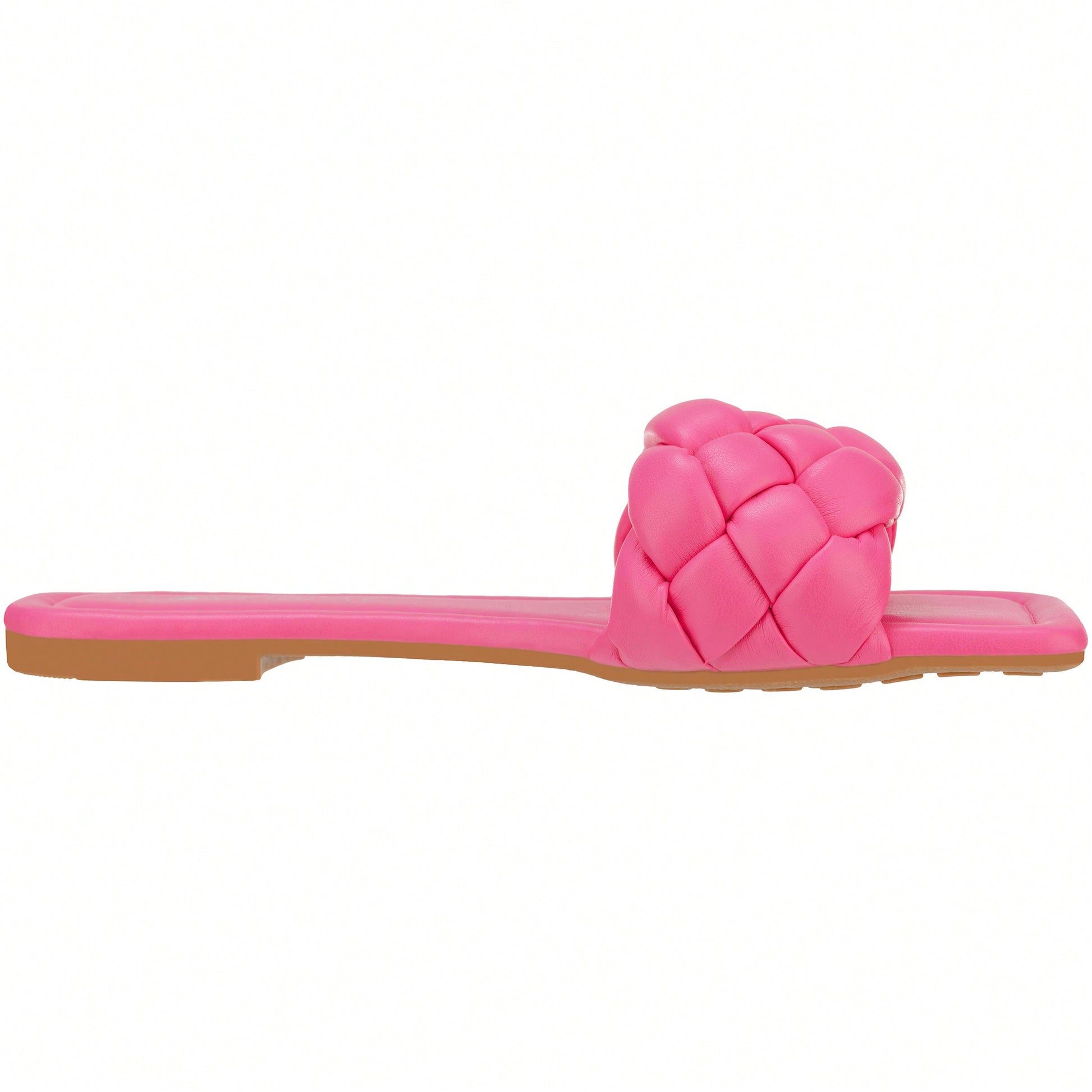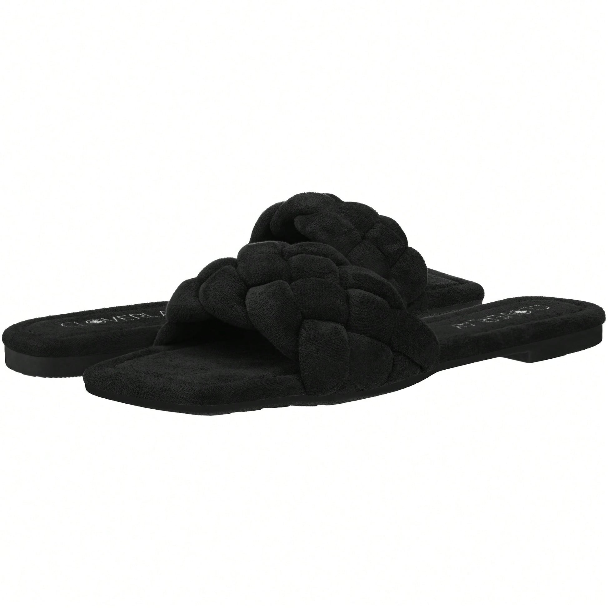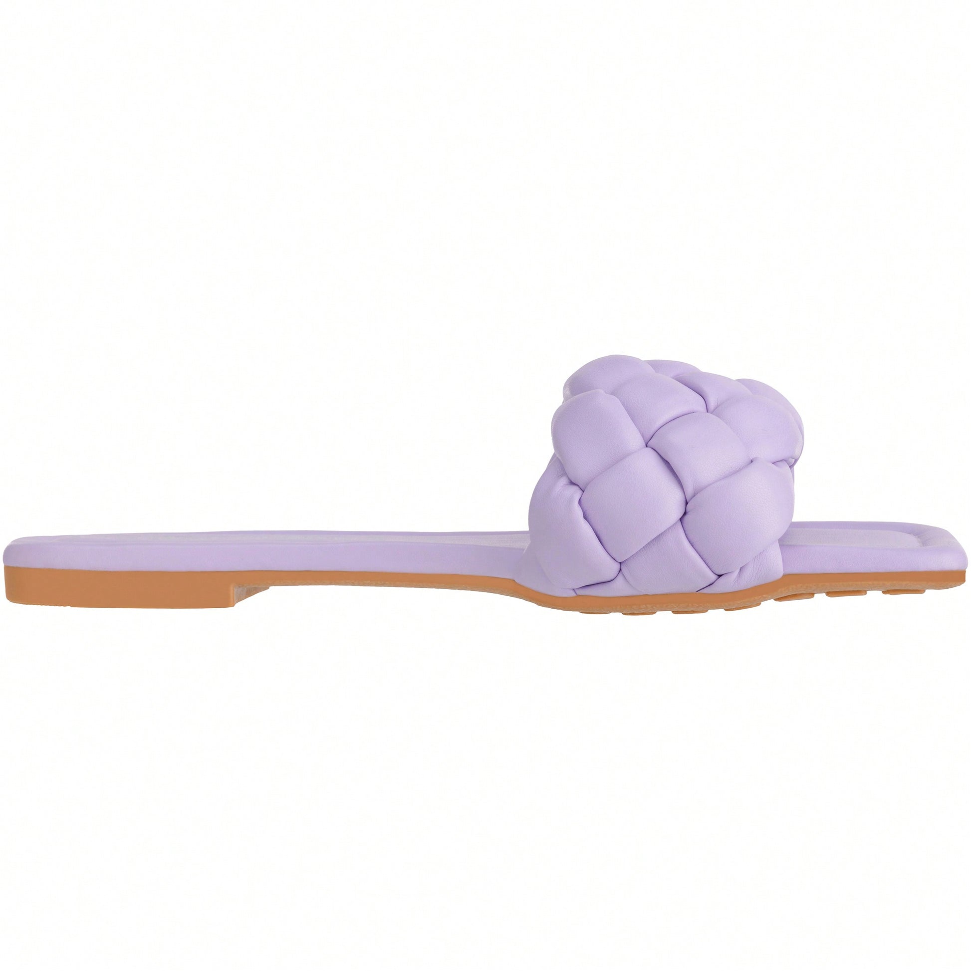 Women Braided Design Single Band Flat Sandals Open Toe Slide Sandals Square Toe Woven Sandals