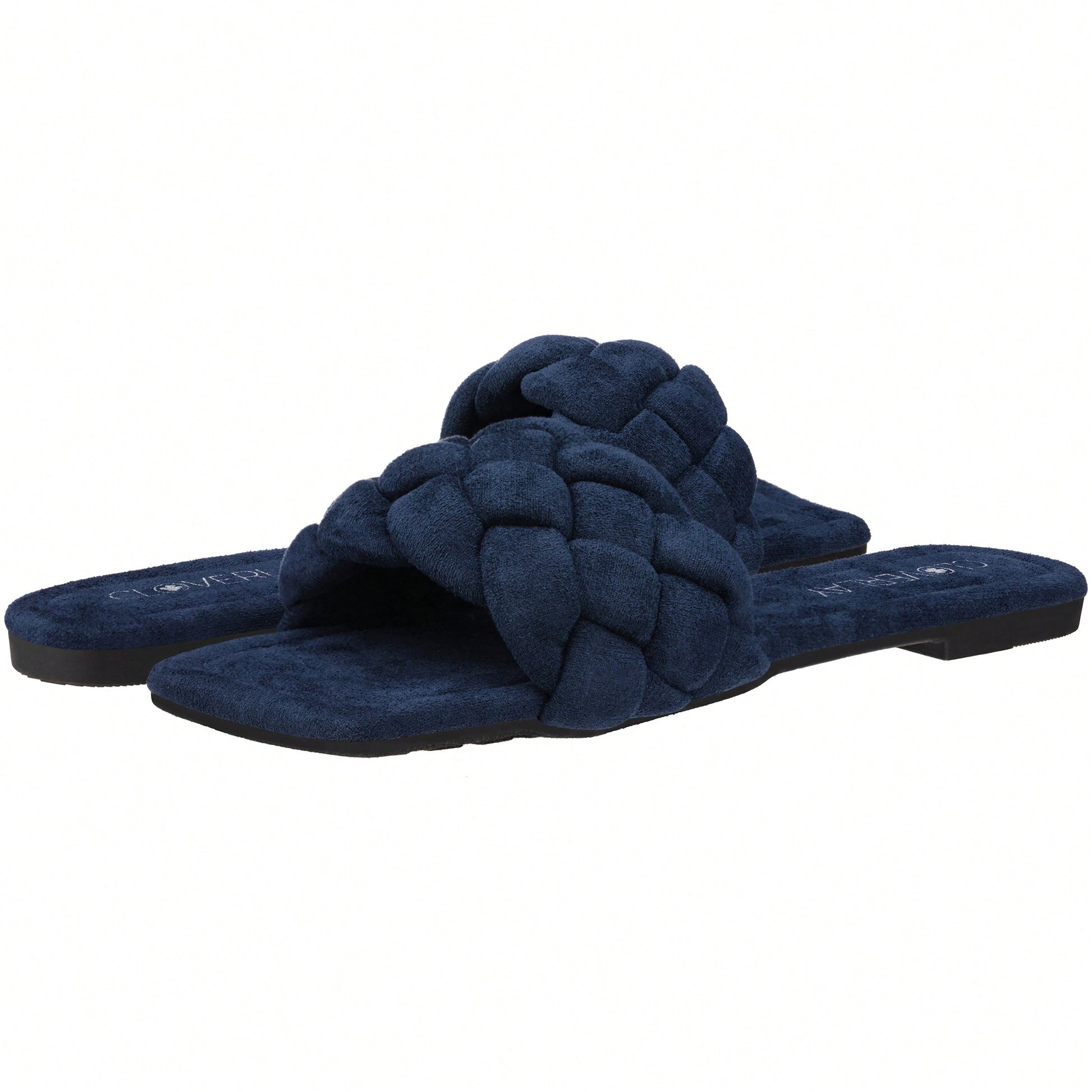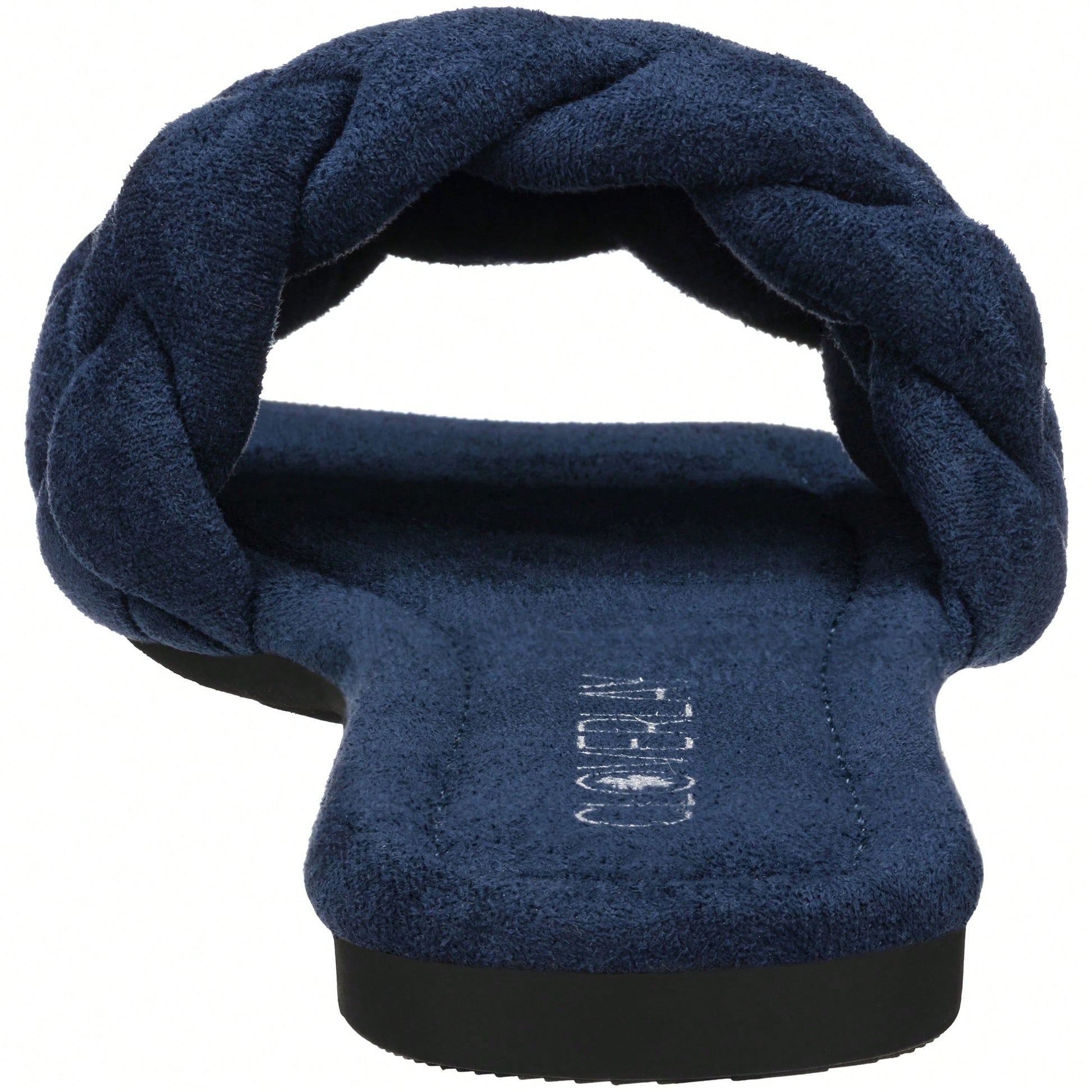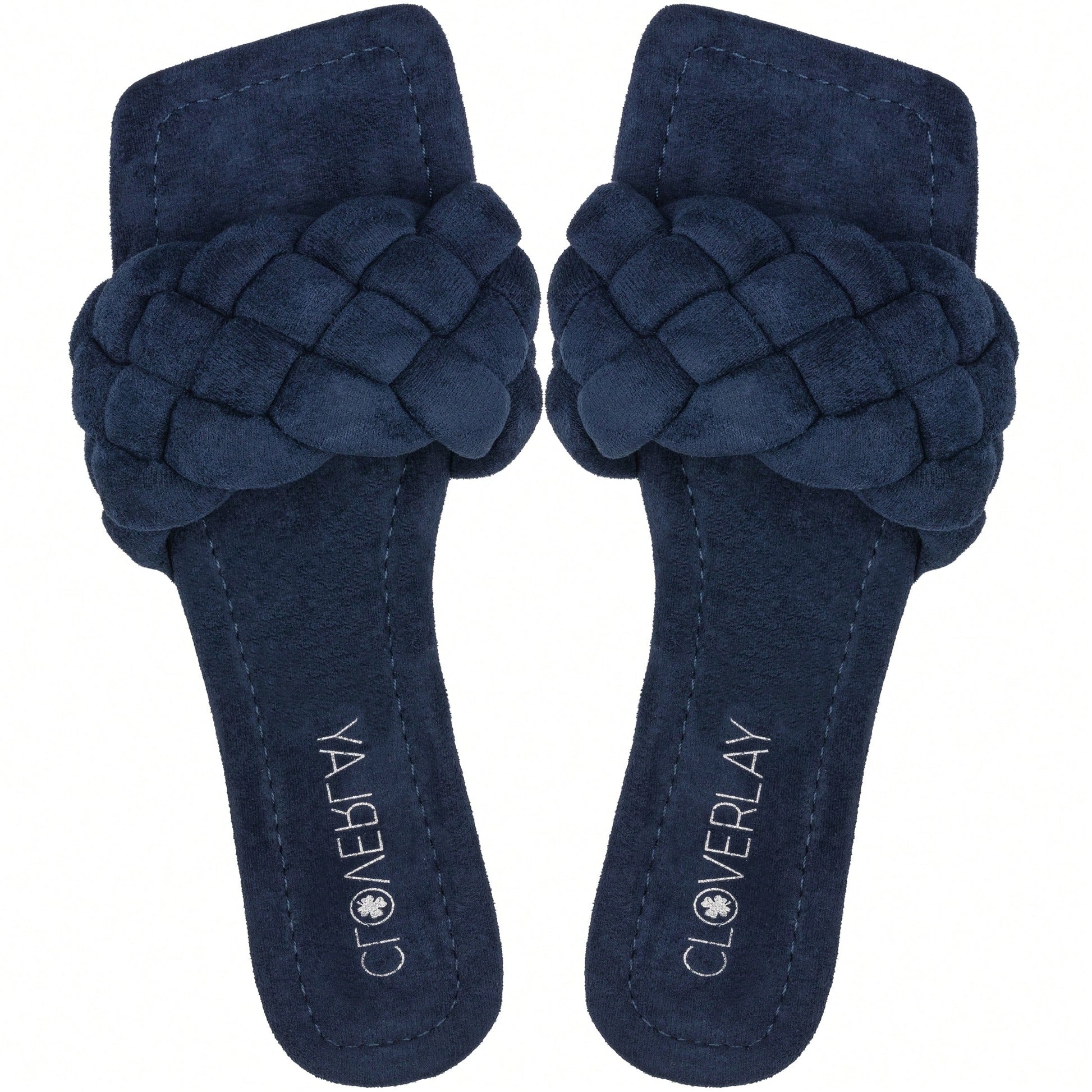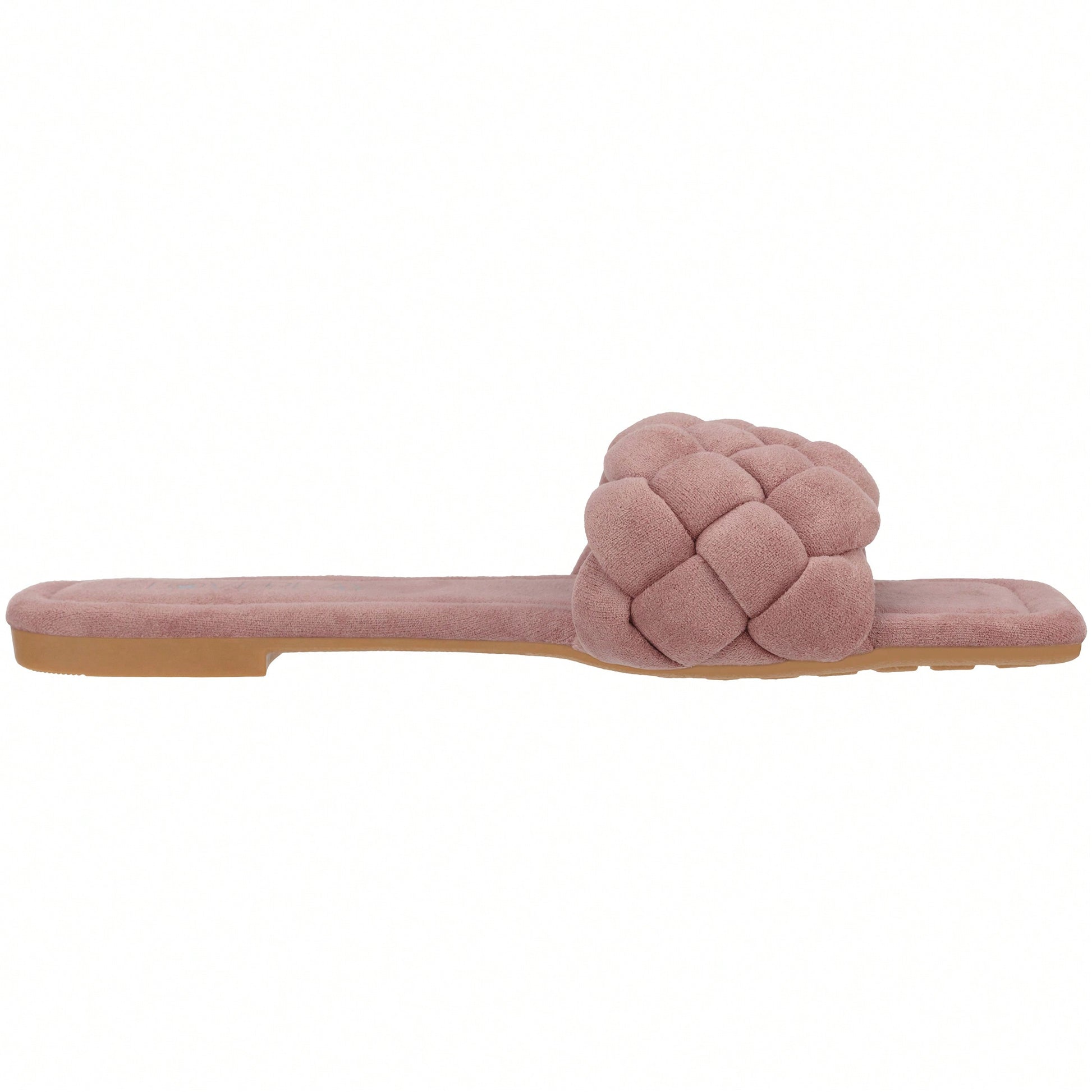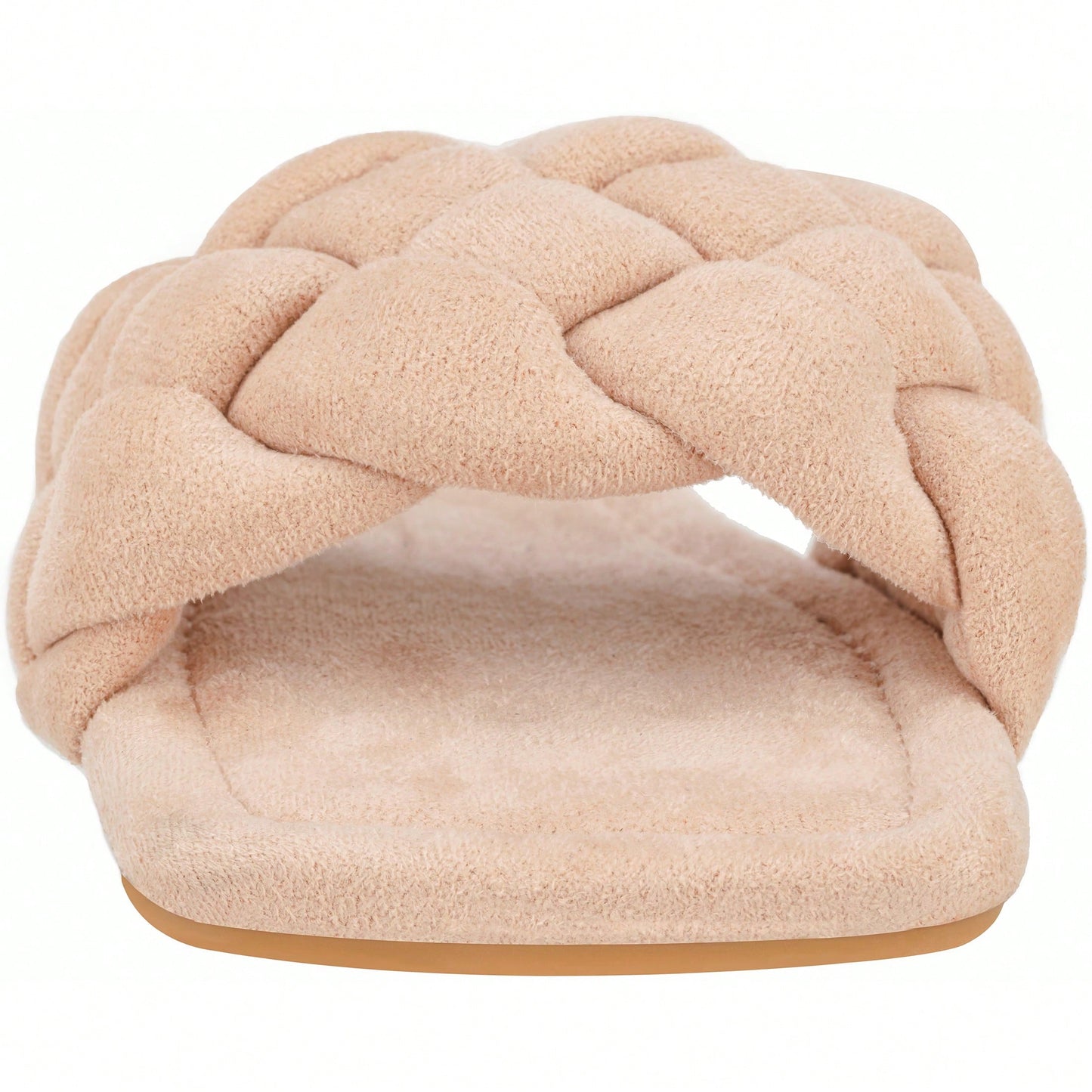 Women Braided Design Single Band Flat Sandals Open Toe Slide Sandals Square Toe Woven Sandals