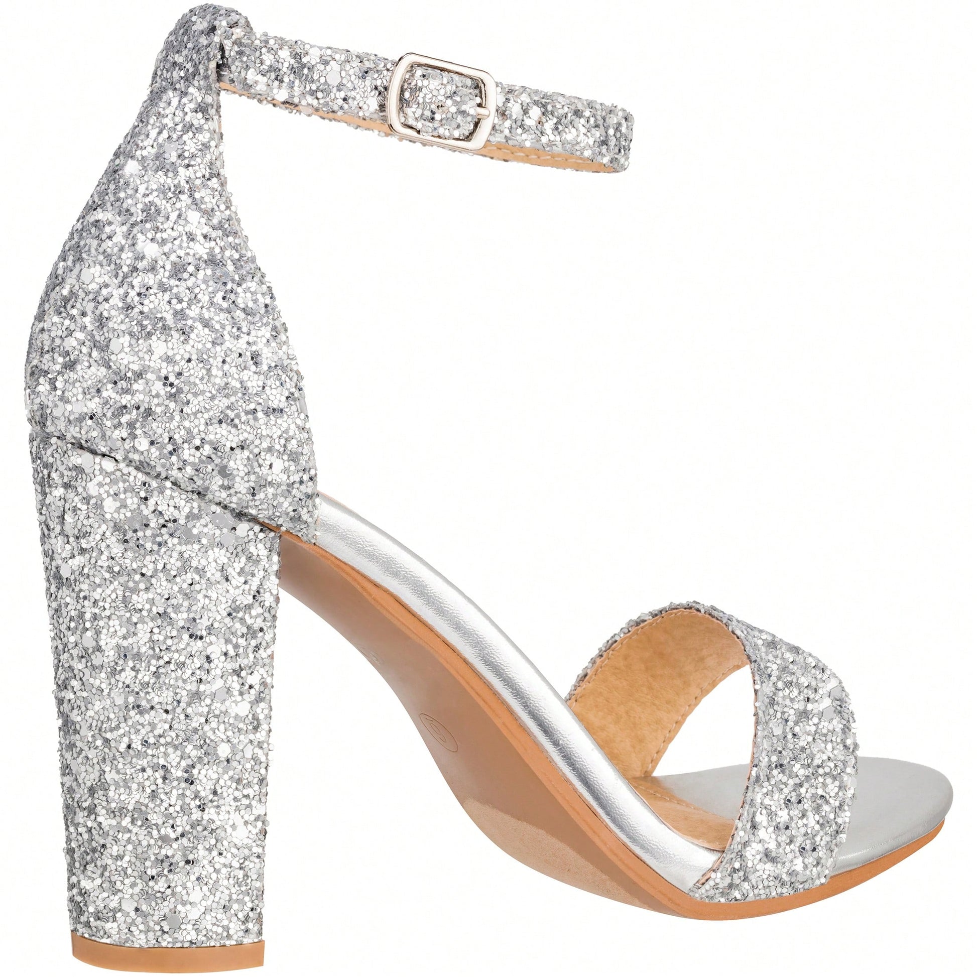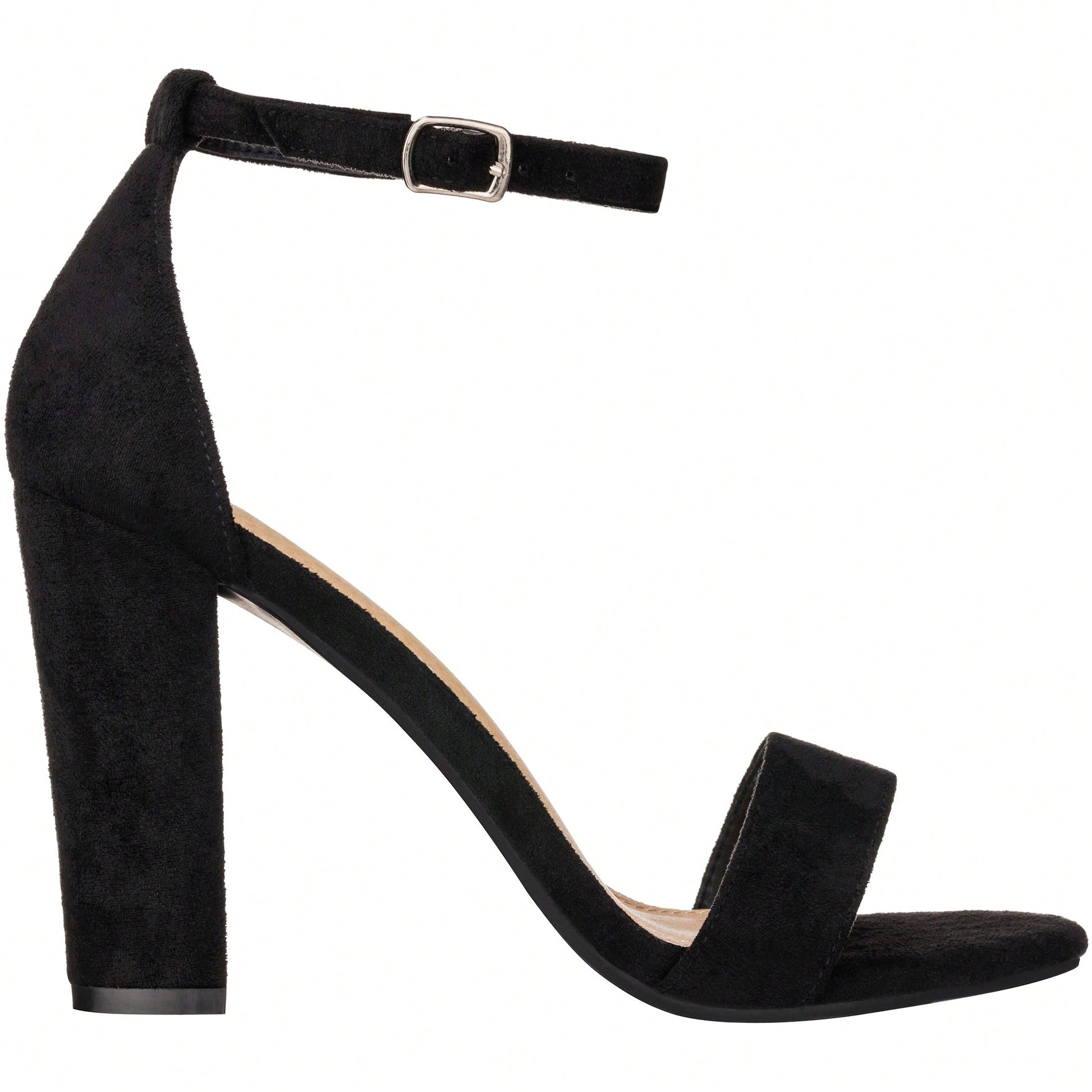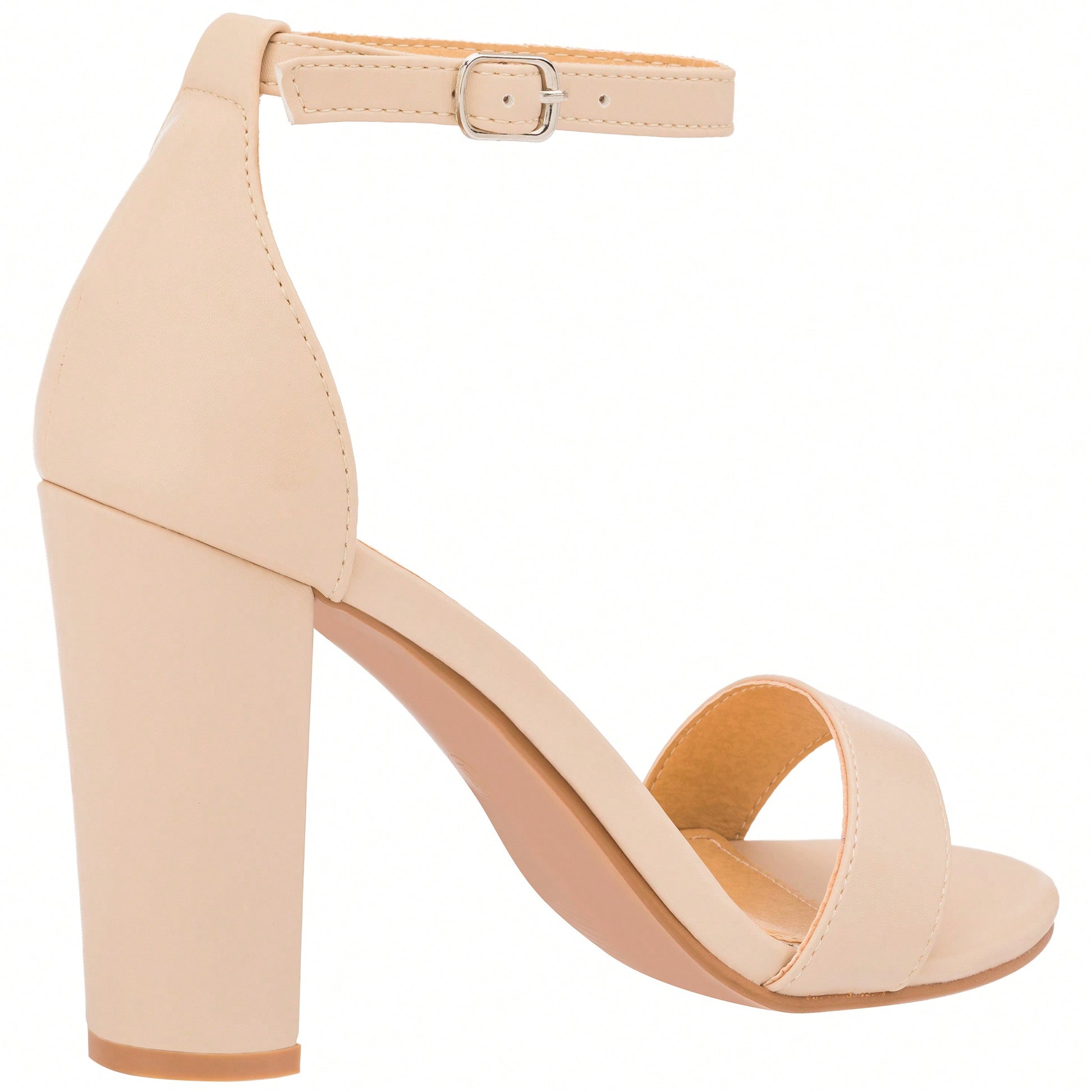 Women Chunky Heeled Ankle Strap Sandals Elegant Single Band Buckle Decor Sandals High Heel Sandals Open Toe Ankle Strap Sandals Heels