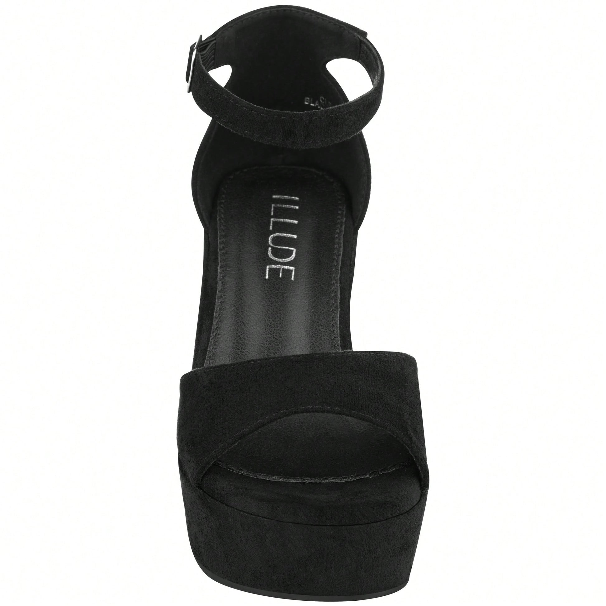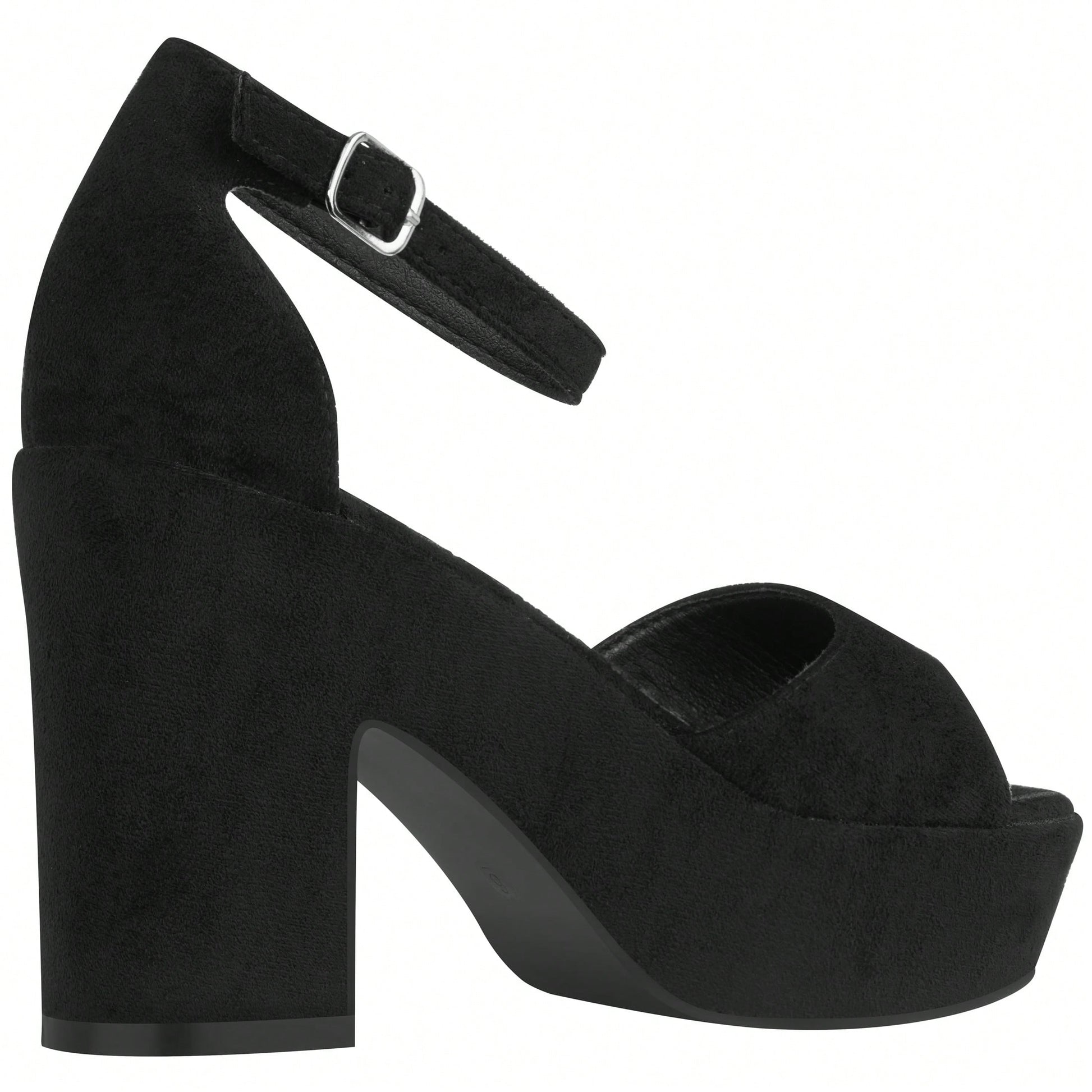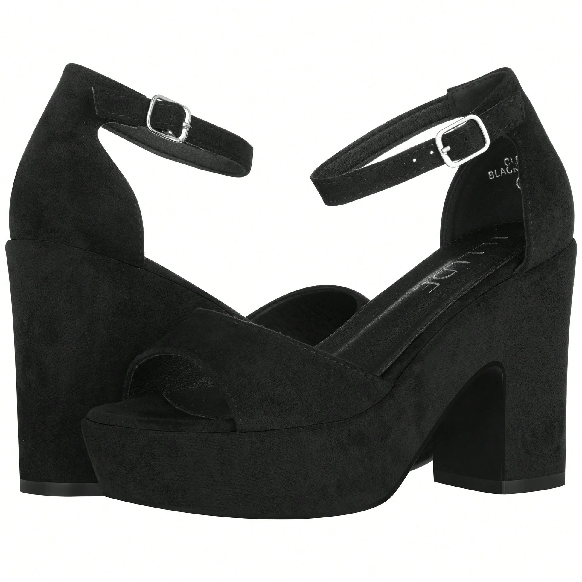 Women Platform Chunky Heeled Sandals Ankle Strap Sexy Open Toe Heels Chunky Block Platform Wedge Sandals Suede