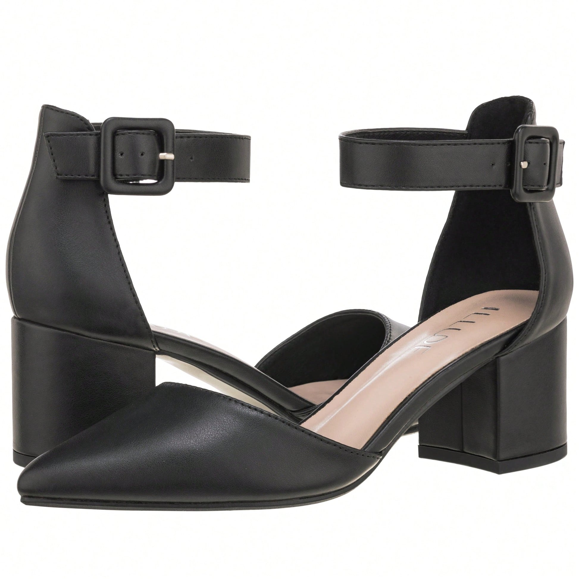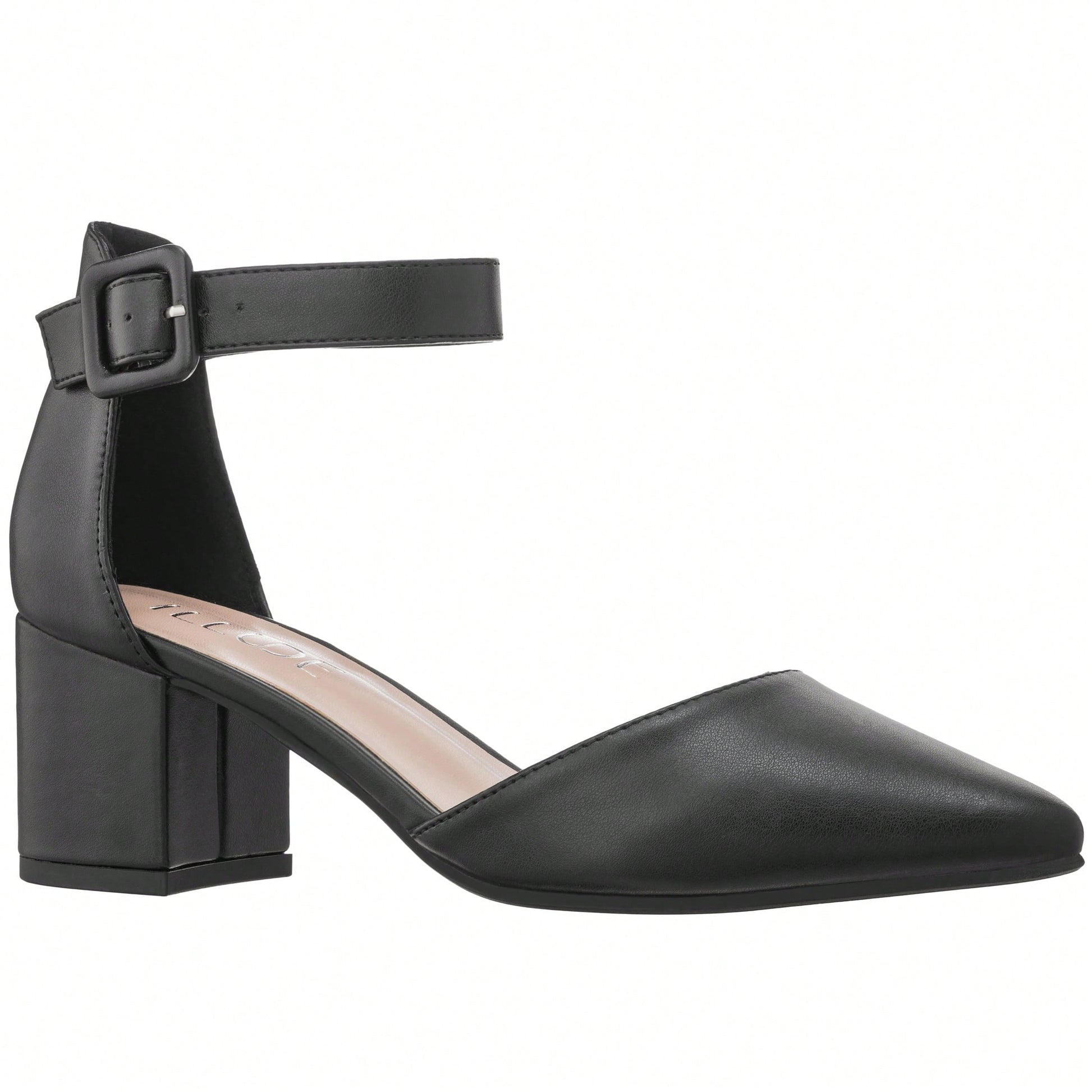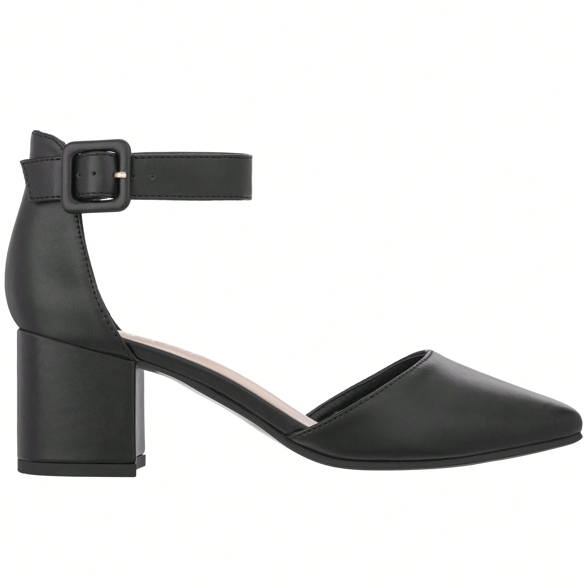 • 100% VEGAN: Buy these guilt-free, knowing your purchase is making no dent in the environment! • SIMPLE BUT TRENDY: These pumps with chunky heels are suitable to wear anytime anywhere. The ankle strap and pointed toe will help you get in on two trends at once • TIMELESS GLAMOUR: Classic pumps for any special occasion. Perfect any of your looks with these classic heels! • STYLISH COMFORT: Features a soft inner lining that will keep your ankles and toes blister-free. The closed pointed toe, adjustable ankle straps, and non-skid outsole stabilize your steps with grace. • MEASUREMENTS: Heel measures approximately 2.25 inches. True to size.