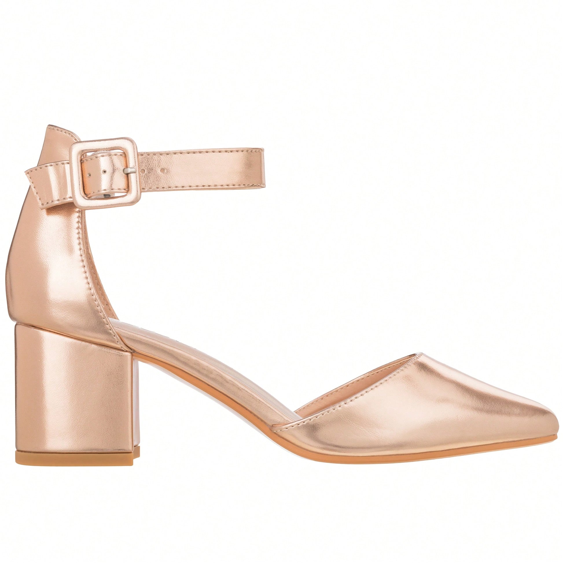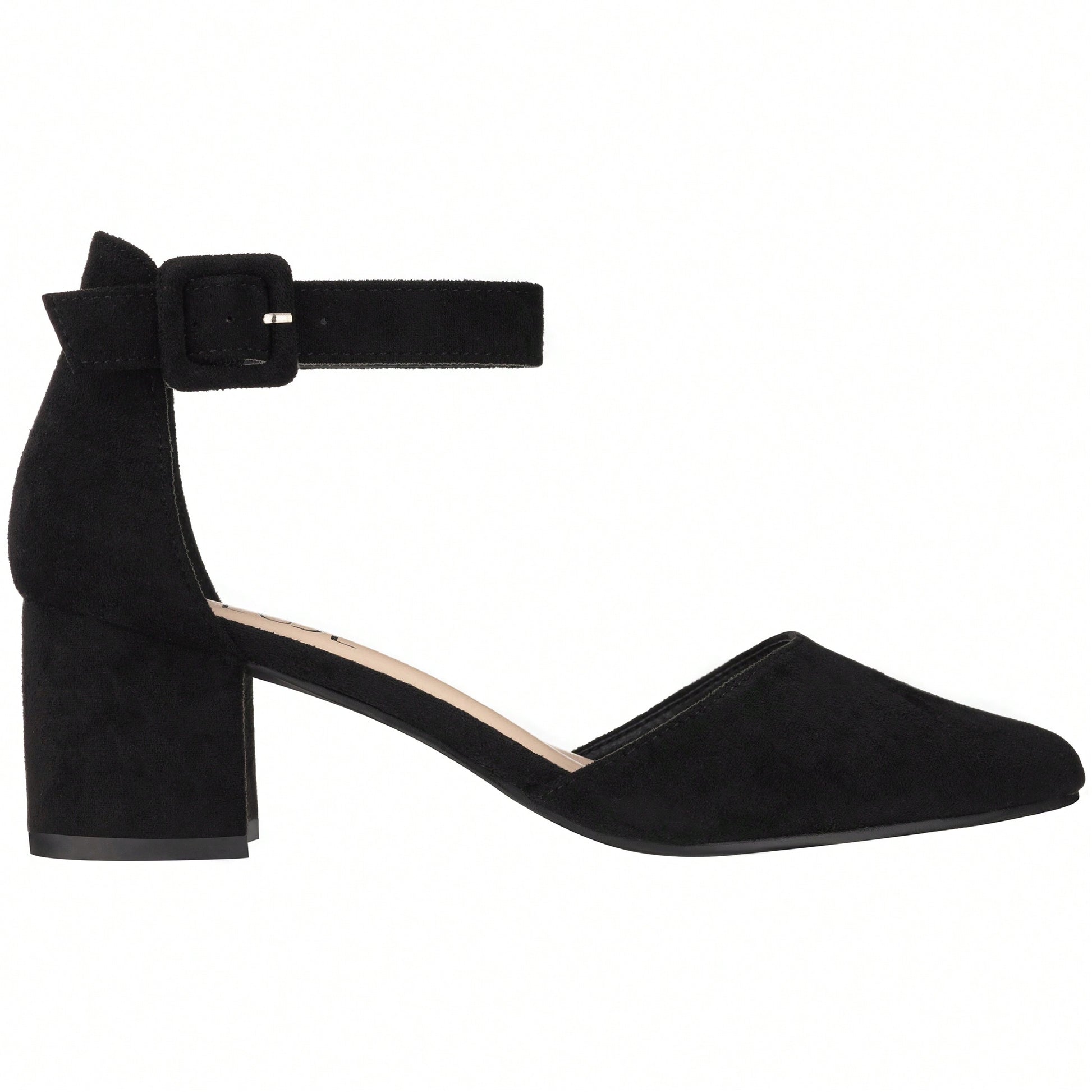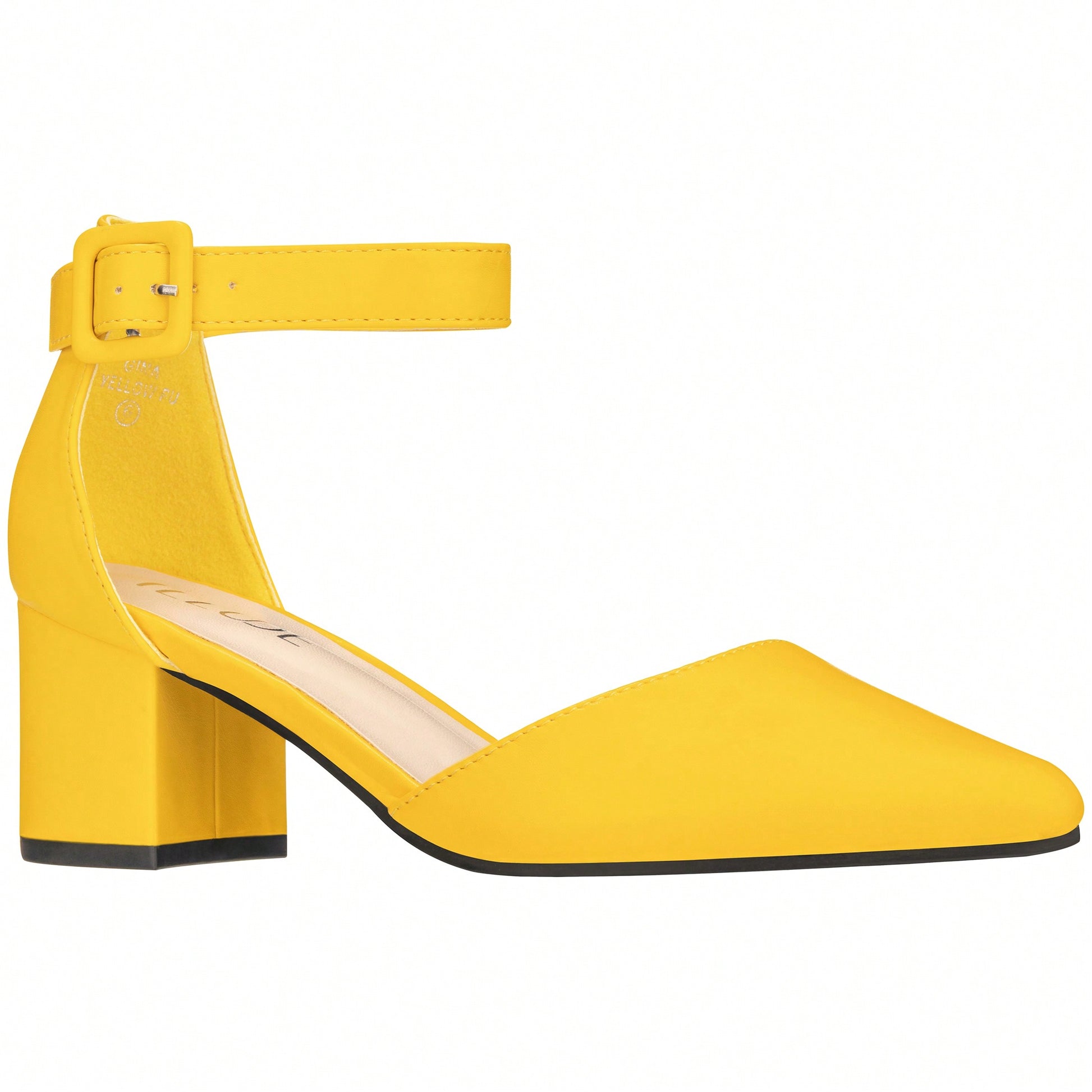 • 100% VEGAN: Buy these guilt-free, knowing your purchase is making no dent in the environment! • SIMPLE BUT TRENDY: These pumps with chunky heels are suitable to wear anytime anywhere. The ankle strap and pointed toe will help you get in on two trends at once • TIMELESS GLAMOUR: Classic pumps for any special occasion. Perfect any of your looks with these classic heels! • STYLISH COMFORT: Features a soft inner lining that will keep your ankles and toes blister-free. The closed pointed toe, adjustable ankle straps, and non-skid outsole stabilize your steps with grace. • MEASUREMENTS: Heel measures approximately 2.25 inches. True to size.