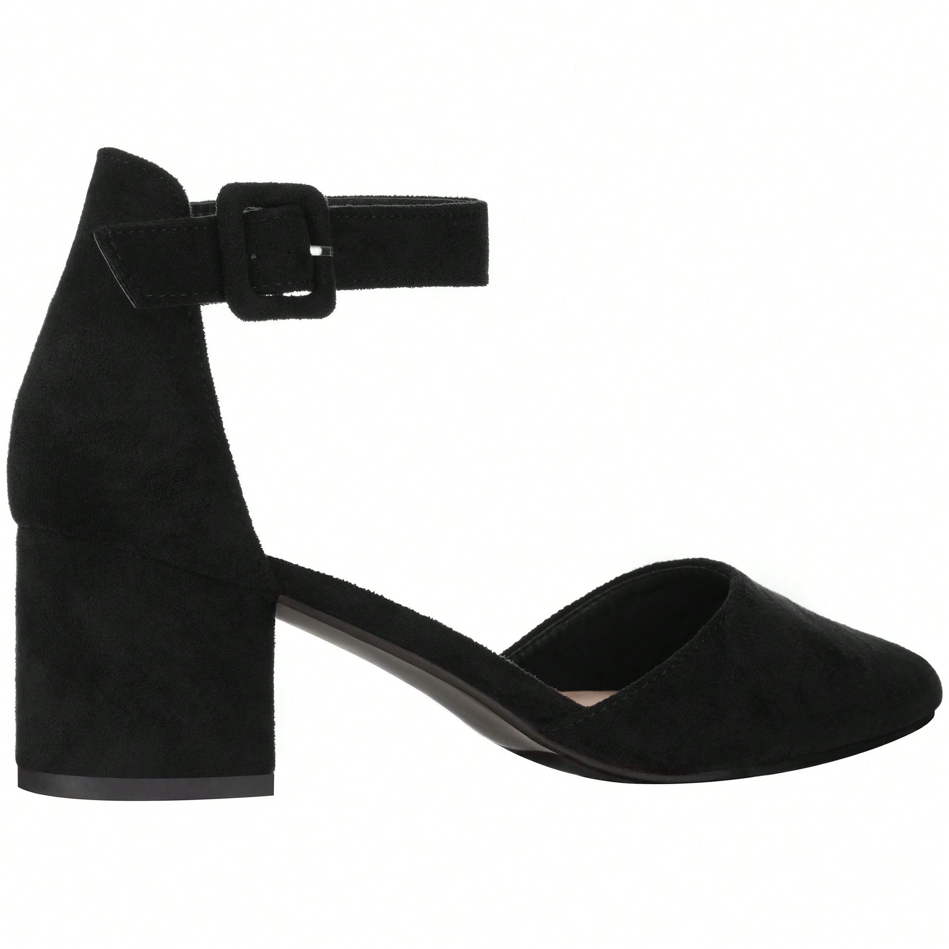 Women Point Toe Chunky Heeled Ankle Strap Pumps Fashionable Pointed Toe Ankle Strap Stiletto Heels Elegant Pumps Suede