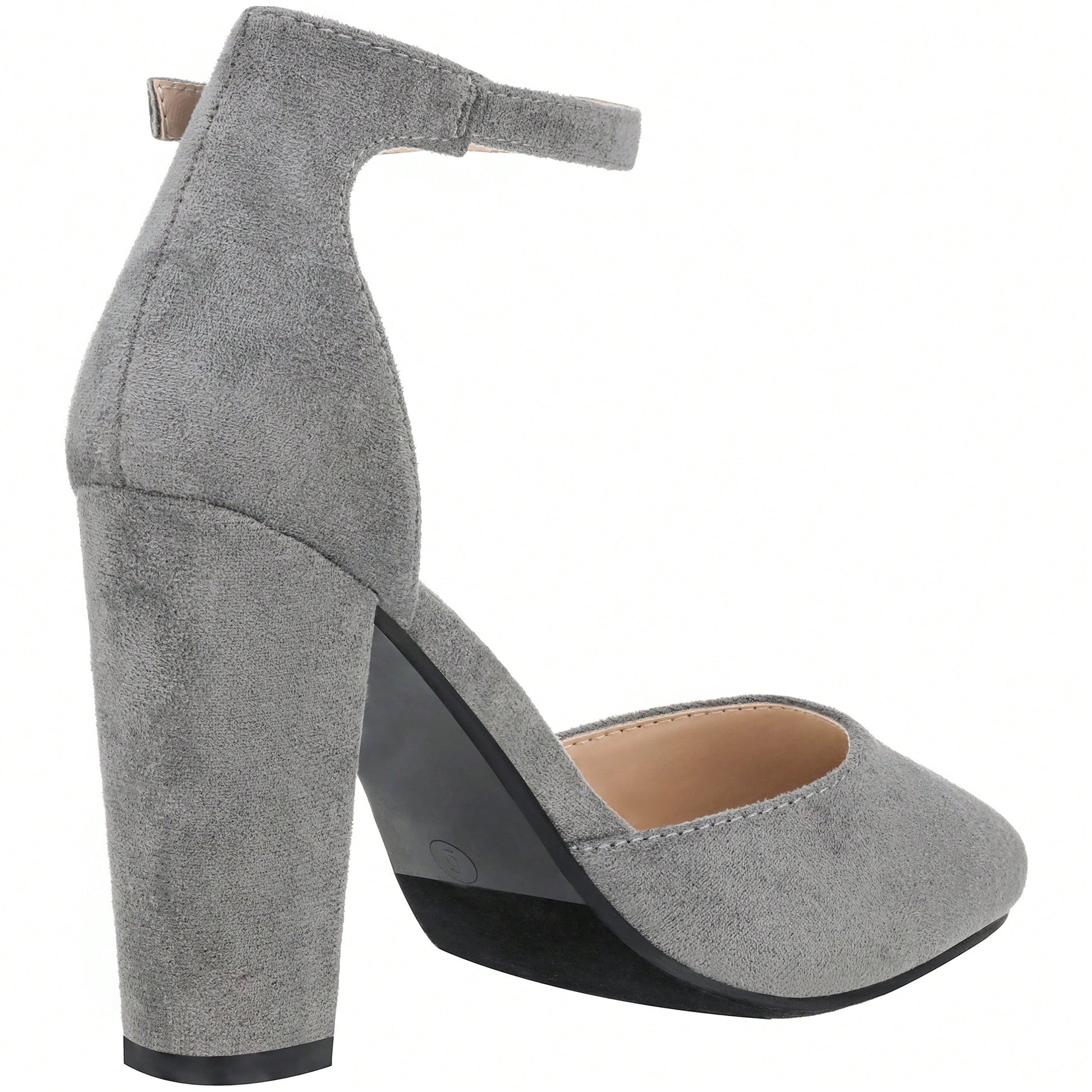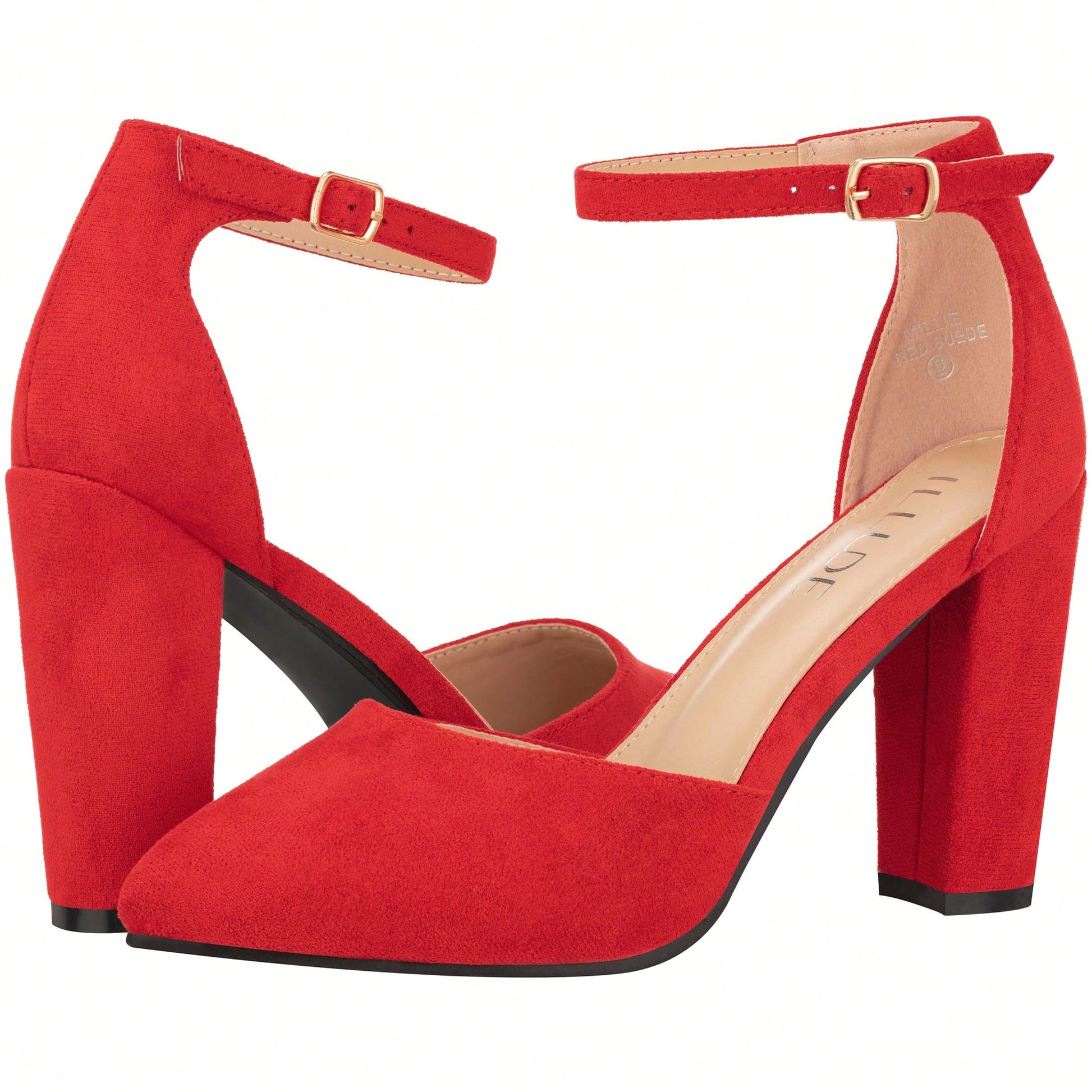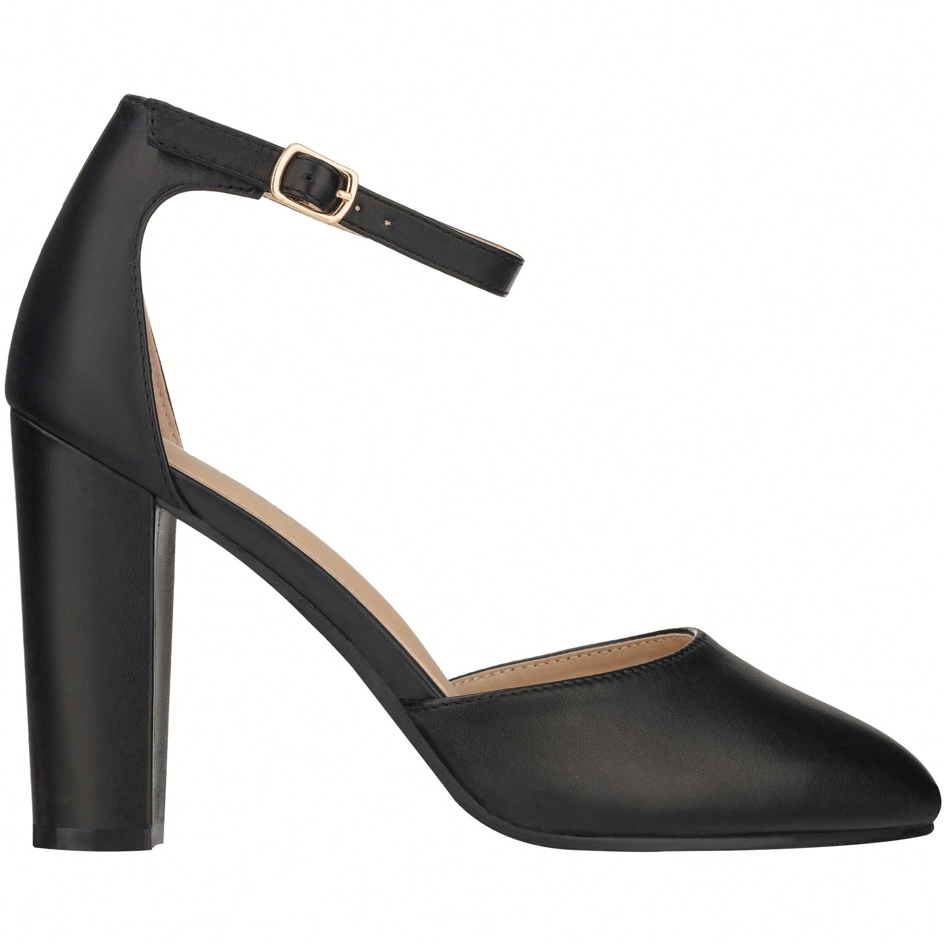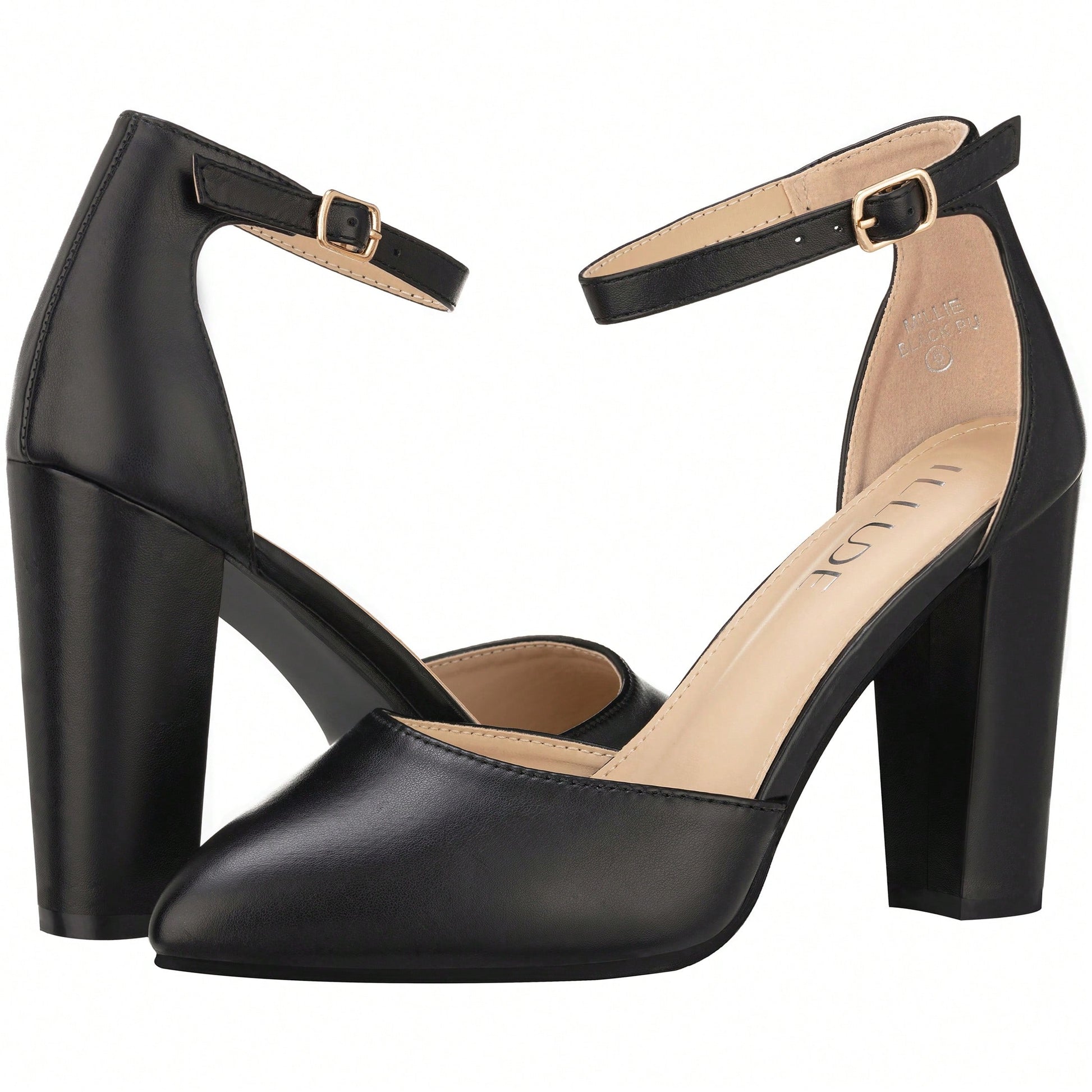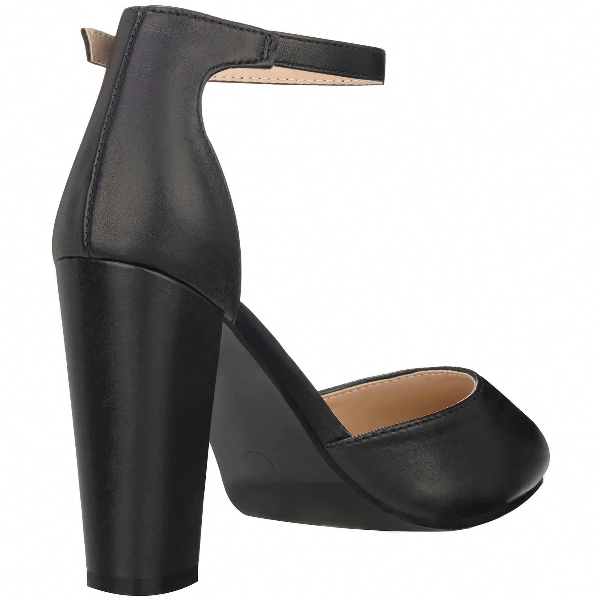 Women Point Toe Chunky Heeled Pumps Ankle Strap Pumps High Heel Ankle Strap Pump