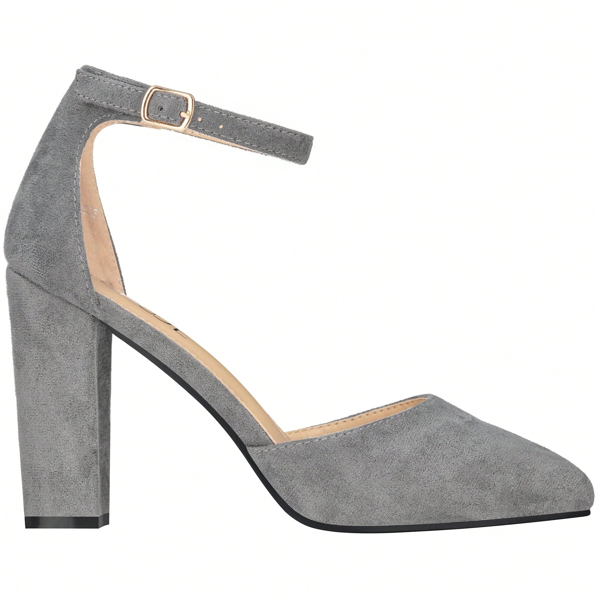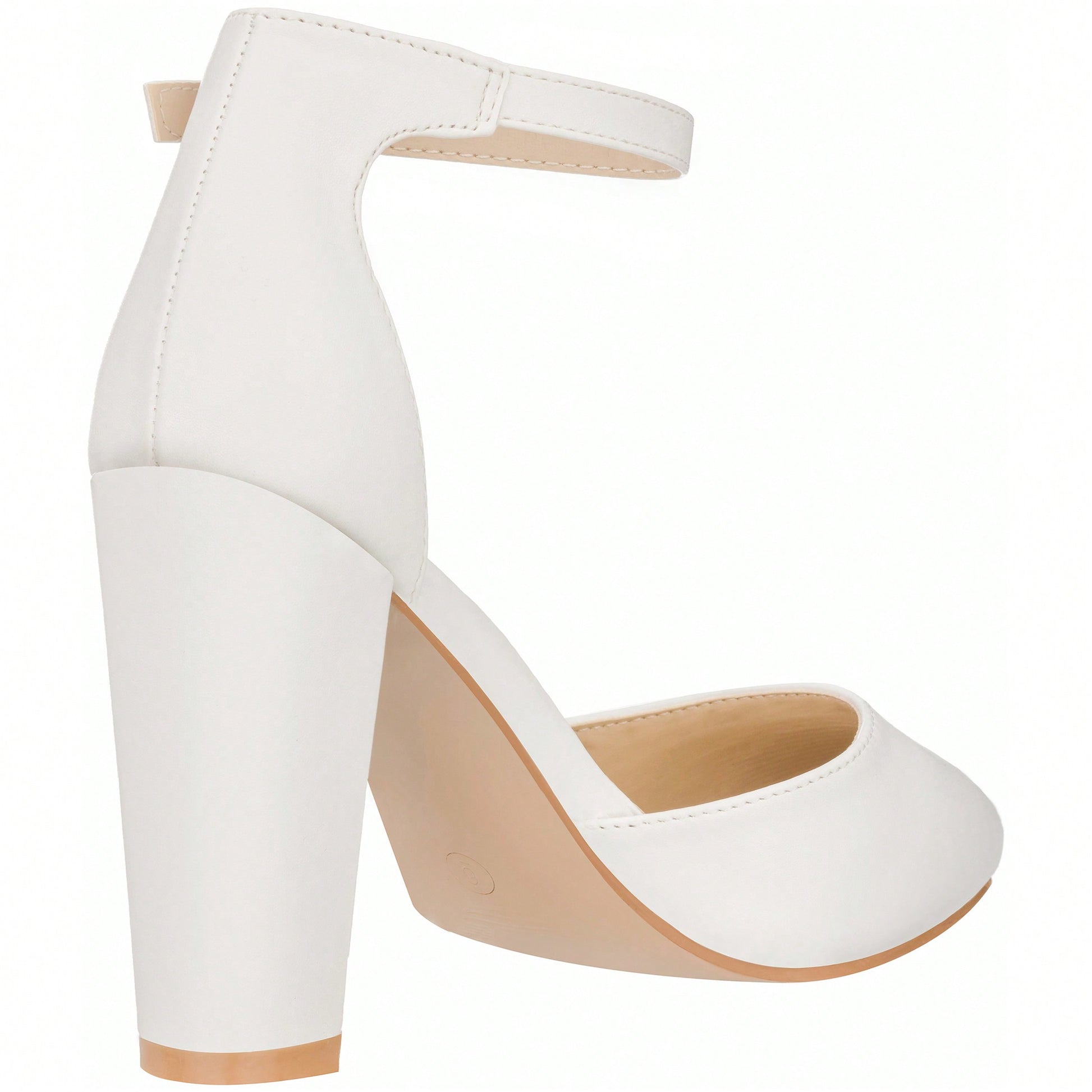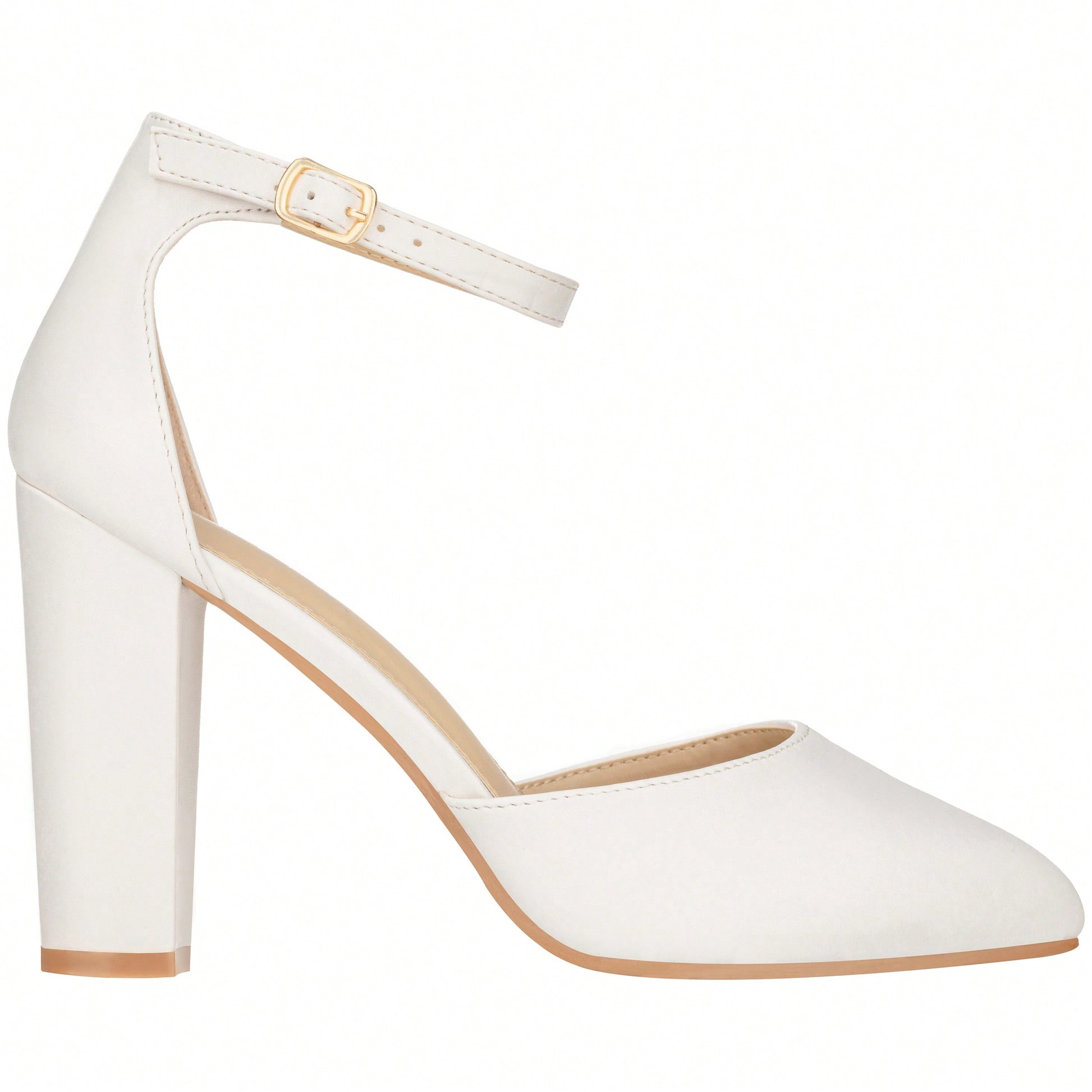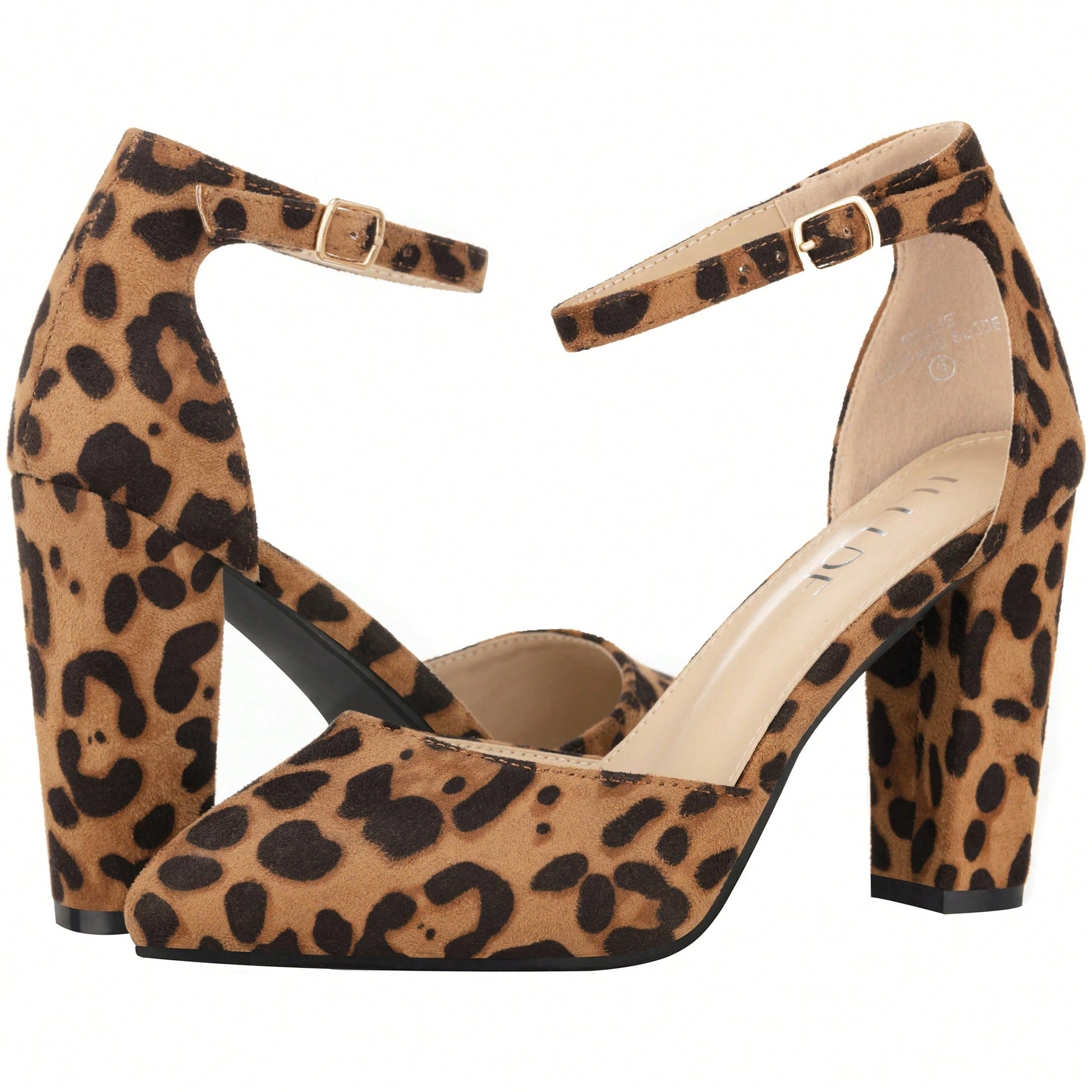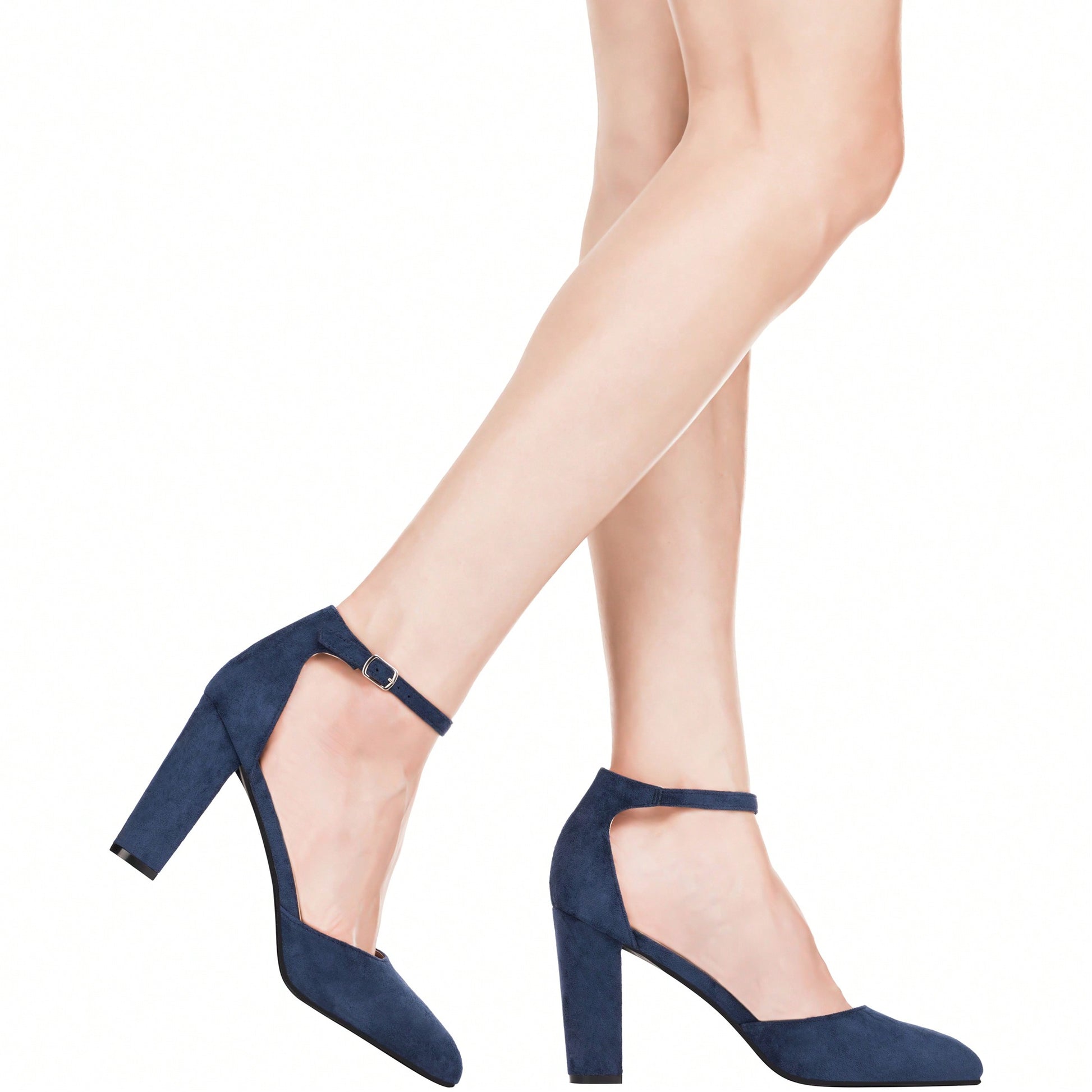 Women Point Toe Chunky Heeled Pumps Ankle Strap Pumps High Heel Ankle Strap Pump
