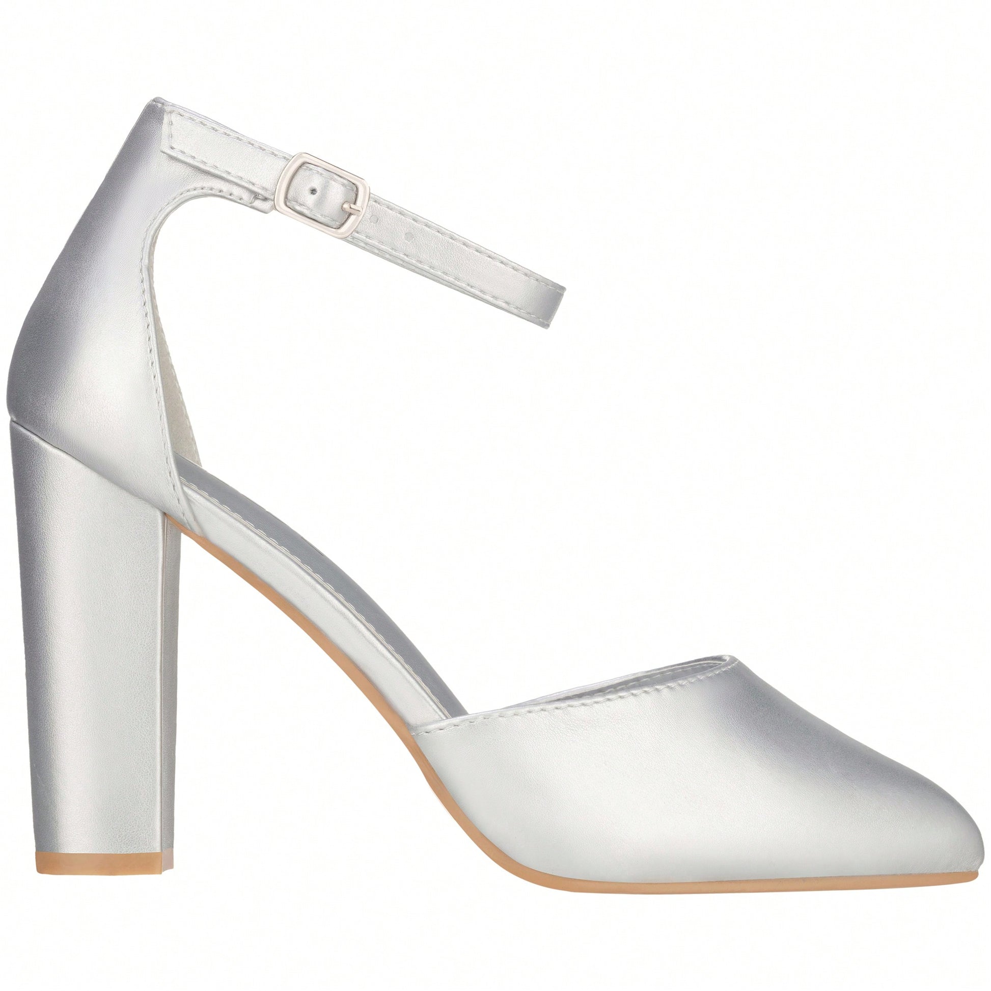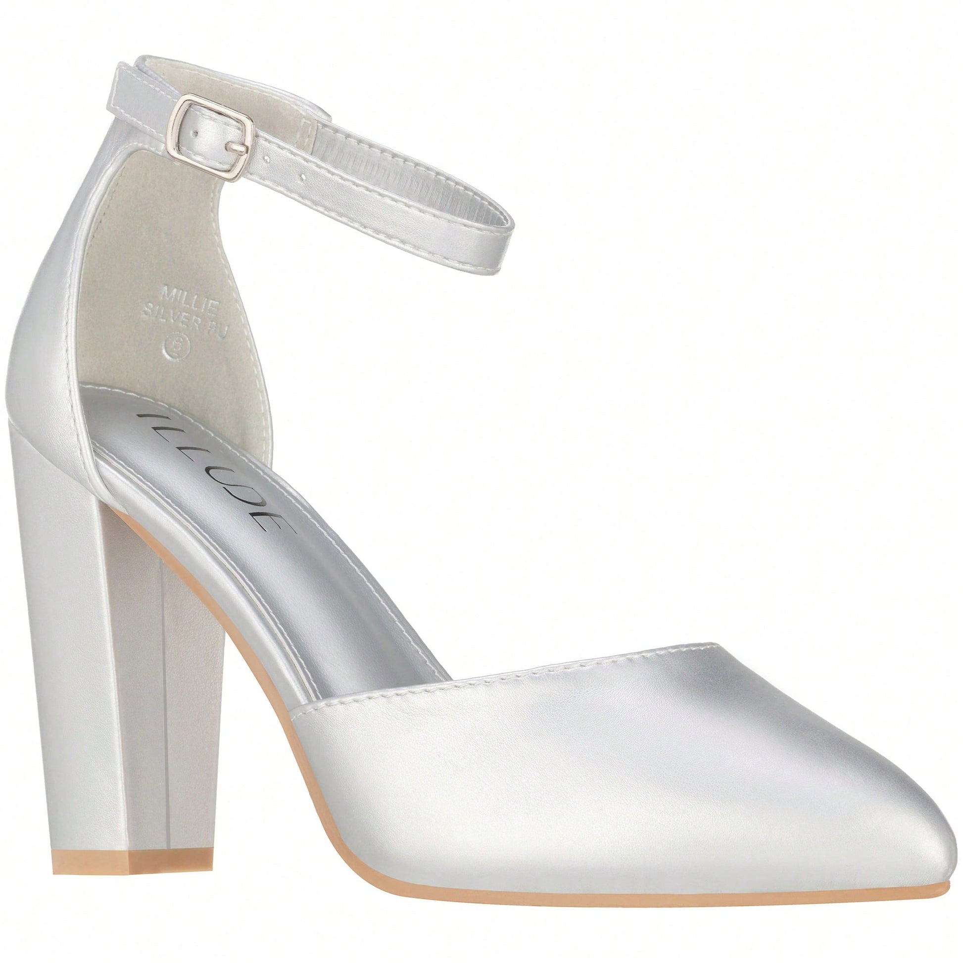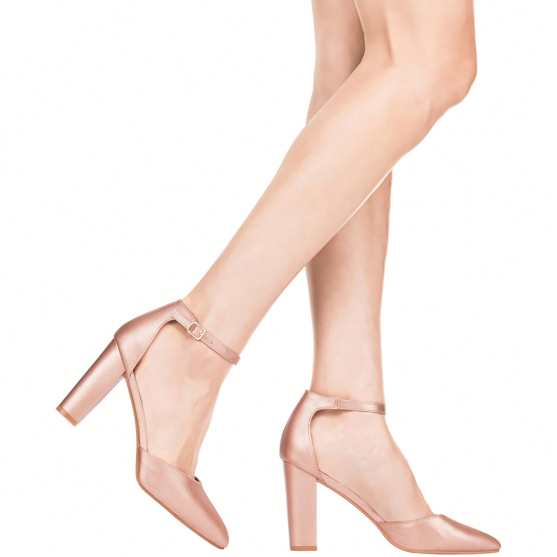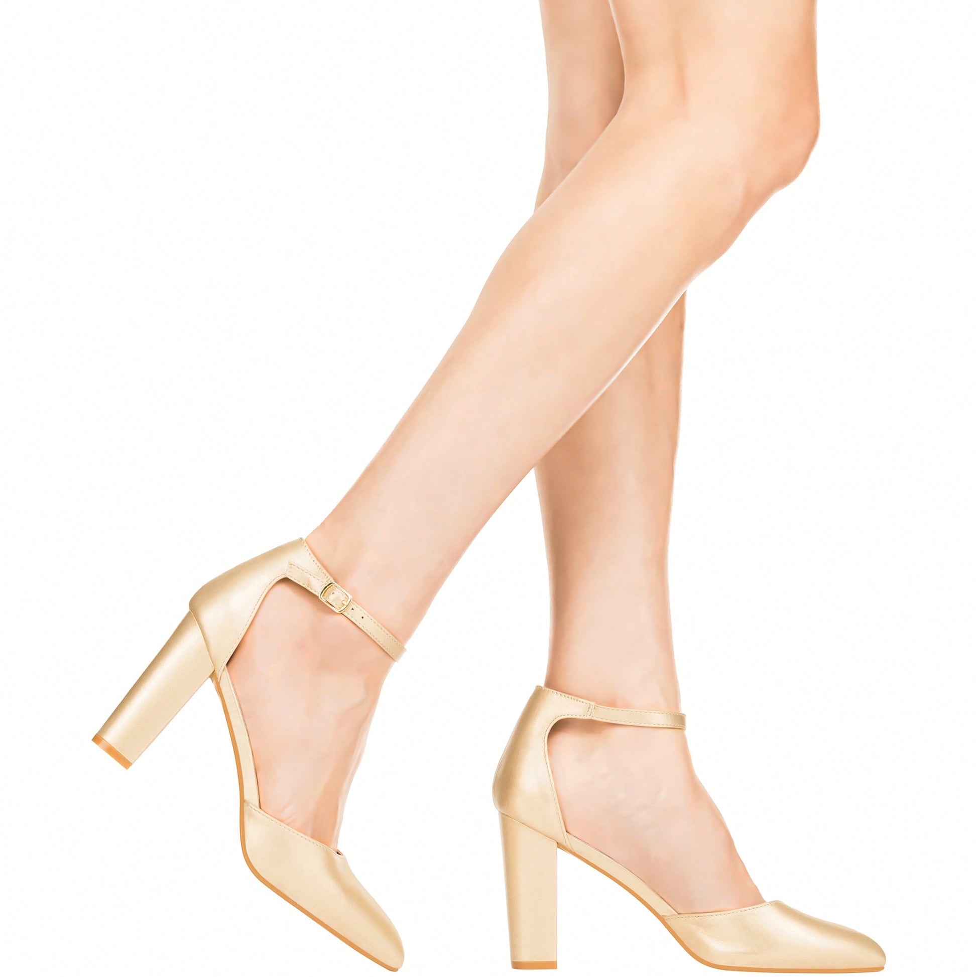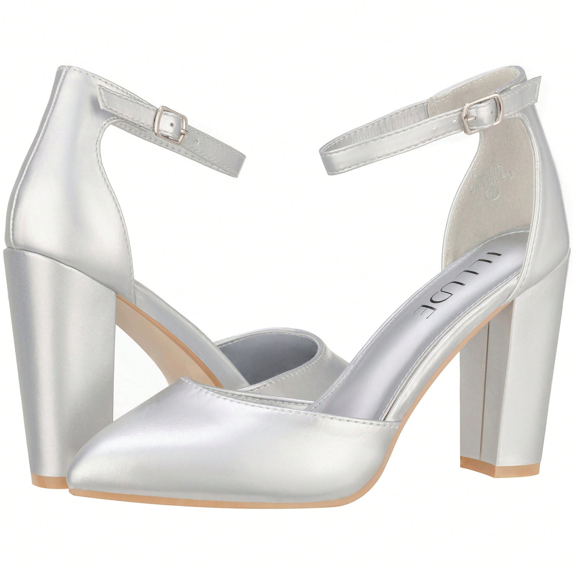 Women Point Toe Chunky Heeled Pumps Ankle Strap Pumps High Heel Ankle Strap Pump