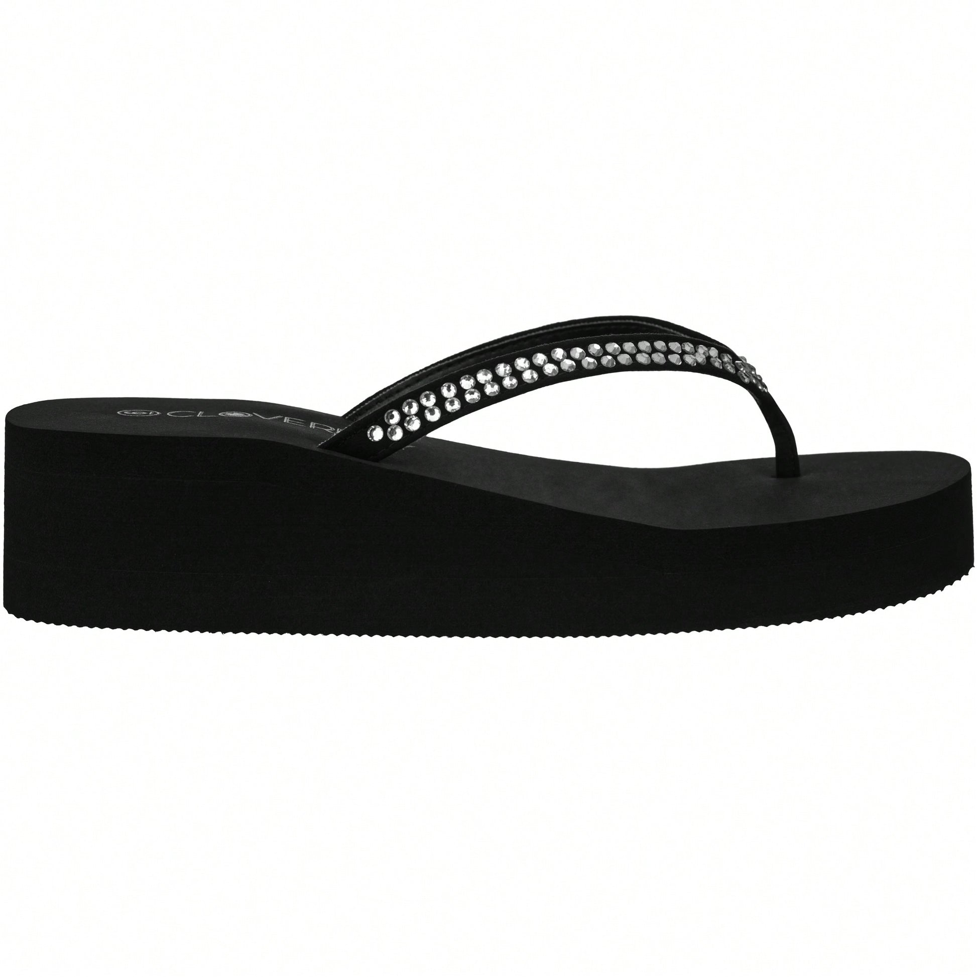 Women Rhinestone Decor Flip Flops Glamorous Summer Flip Flops Toe Post Vacation Fashion Black Flip Flops Summer Fashion Sandals