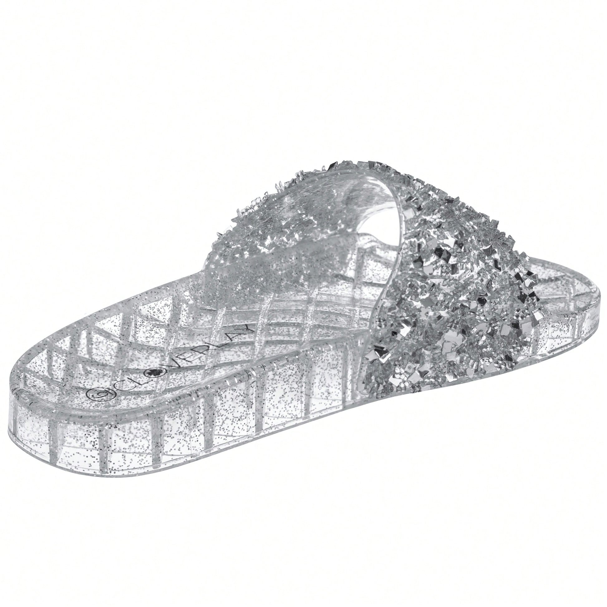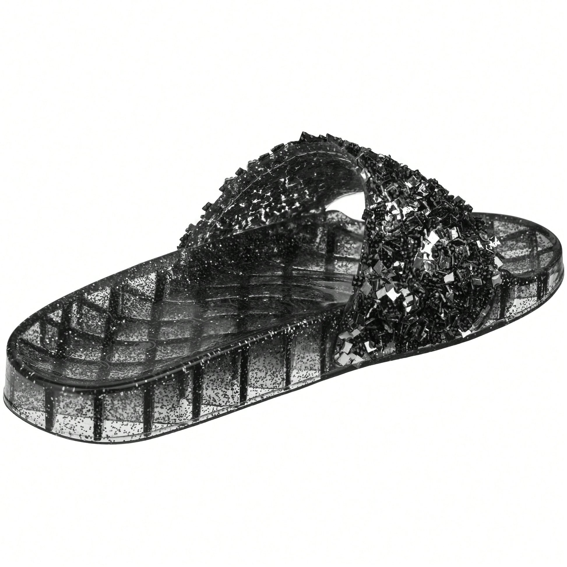 Women Rhinestone Decor Outdoor And Indoor Glamorous Flat Slides Jelly Glitter Slide Sandals Slippers