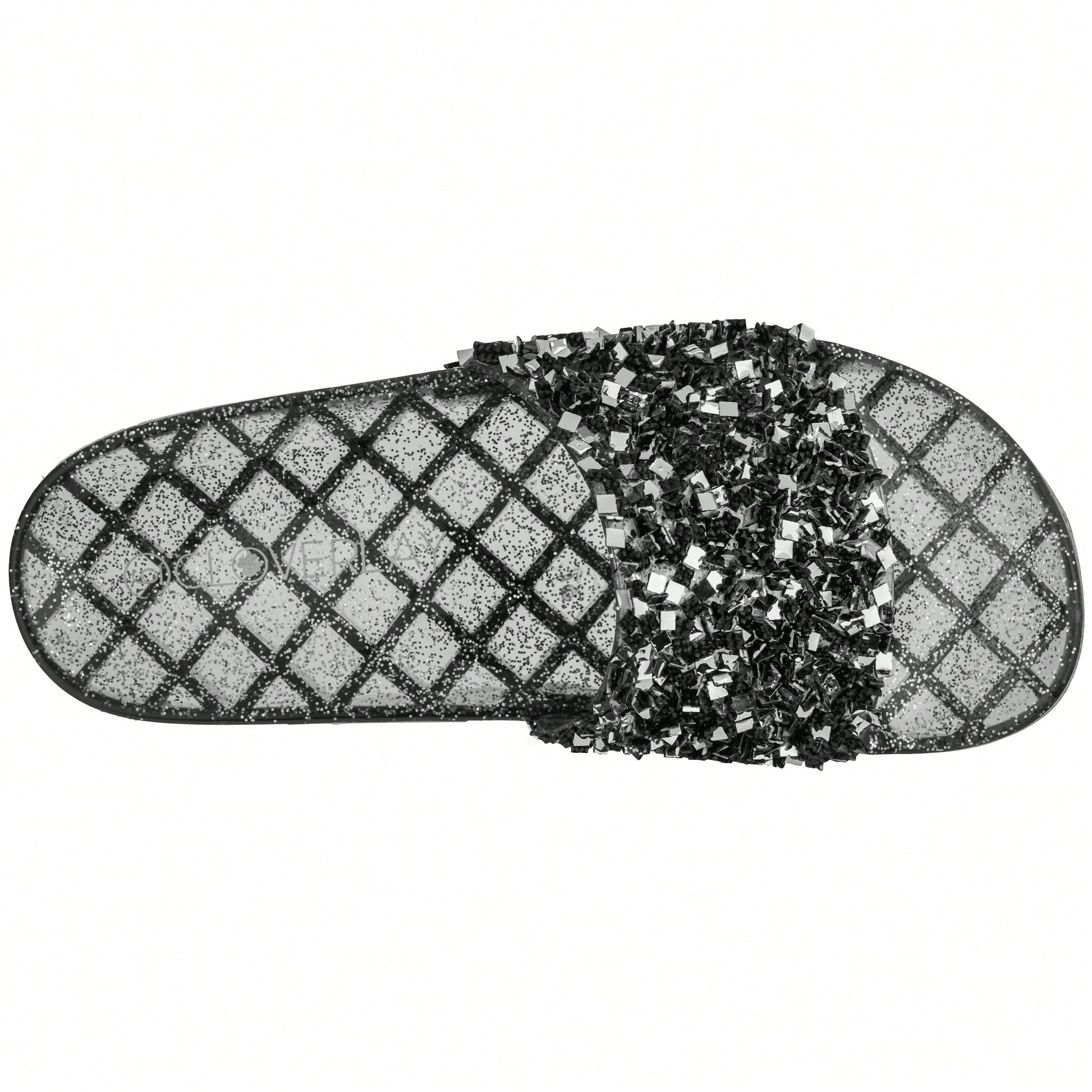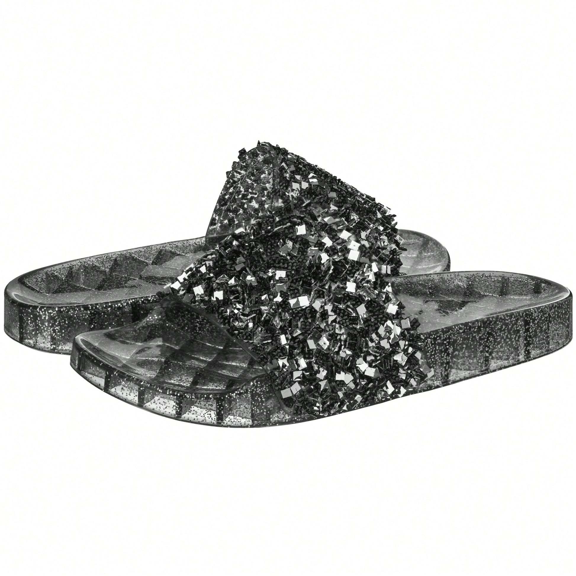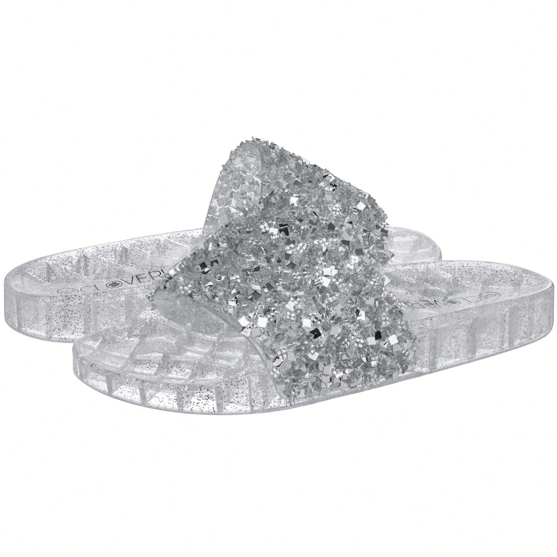 • STYLISH & COMFORTABLE: You will stay in style with these attractive, fashionable, bling slides. The comfortable jelly sole relieves tired feet and provides anti-slip protection.