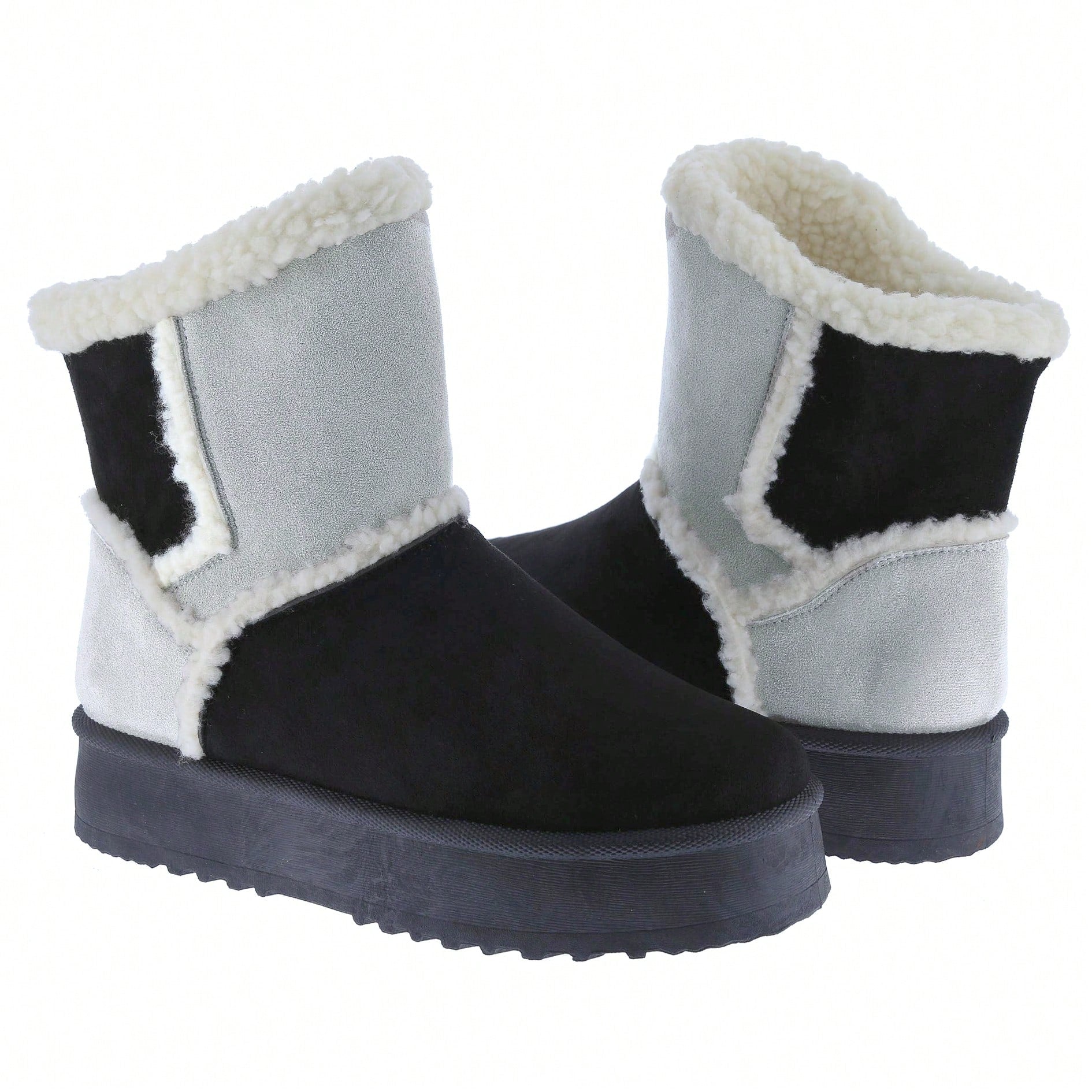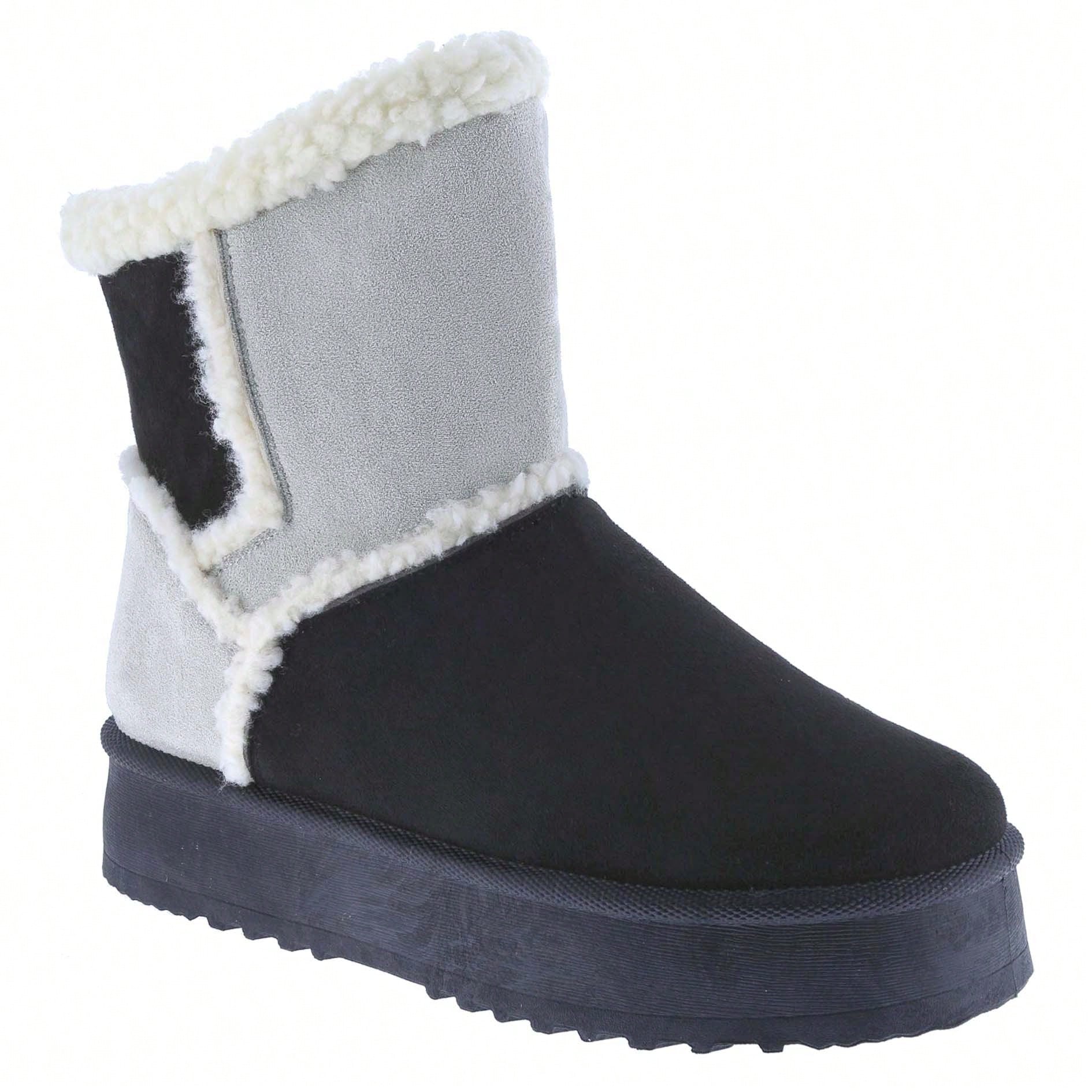 Women Warm Outdoor Snow Ankle Boots Platform Winter Boots With Faux Fur Lining Slip On Lug Sole Ankle Booties