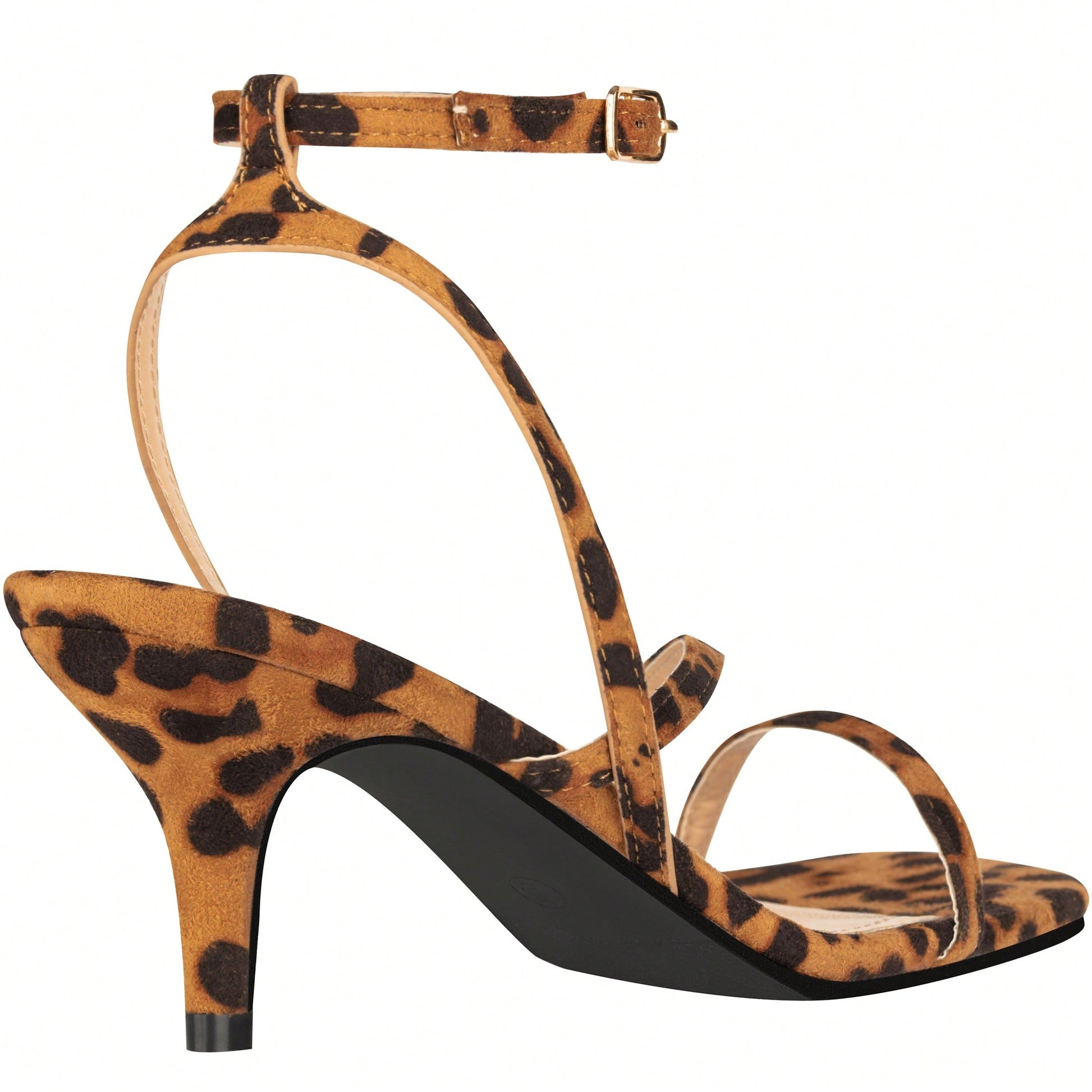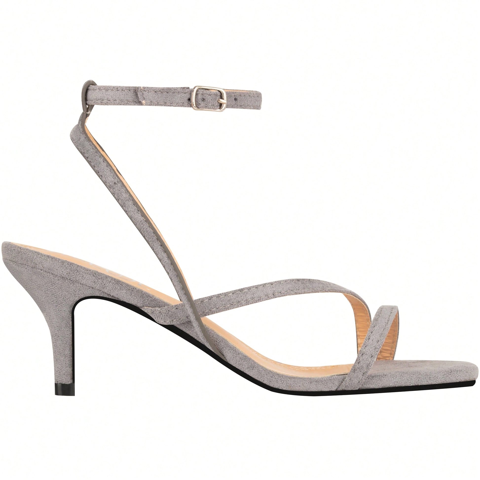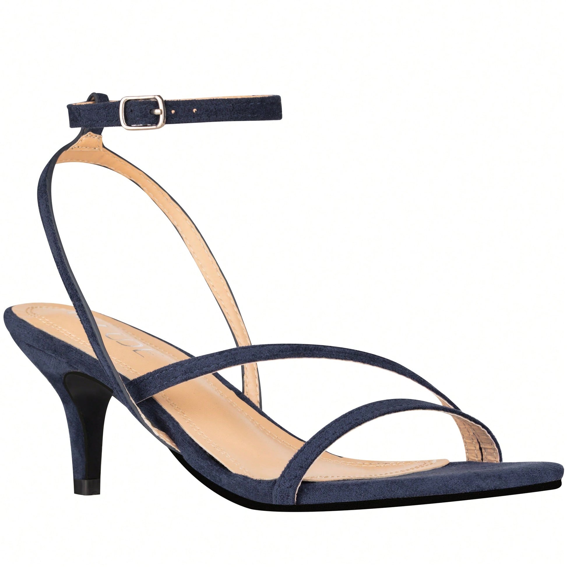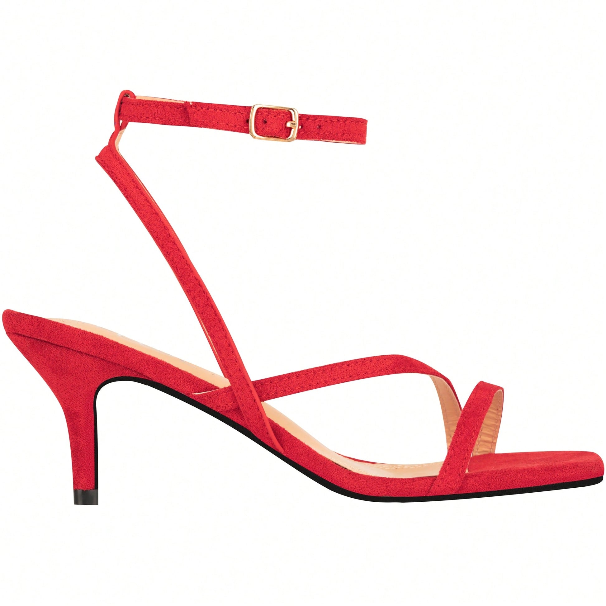 Womens Ankle Strap Sandal Heels Low Kitten Heel Square Toe Strappy Heeled Sandals