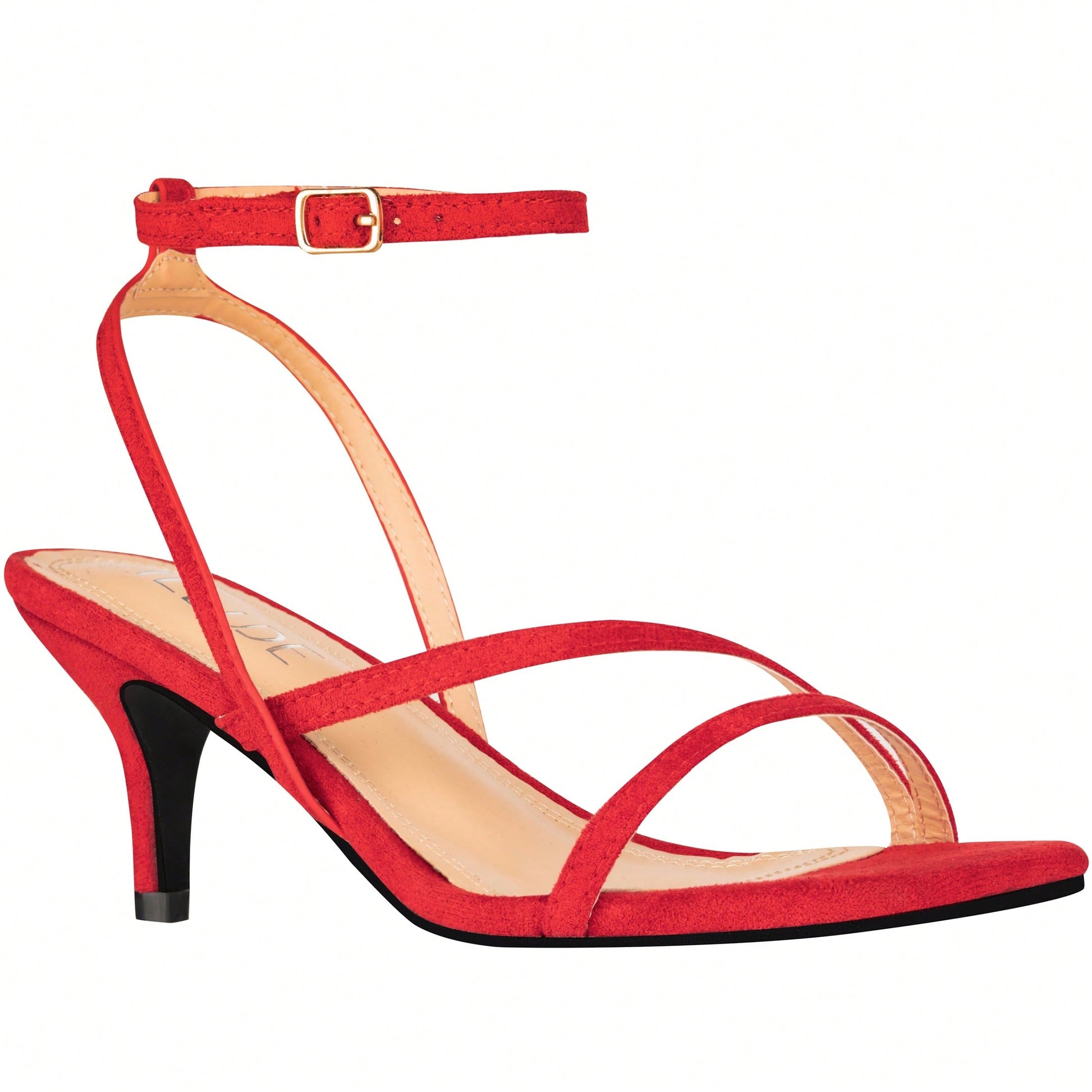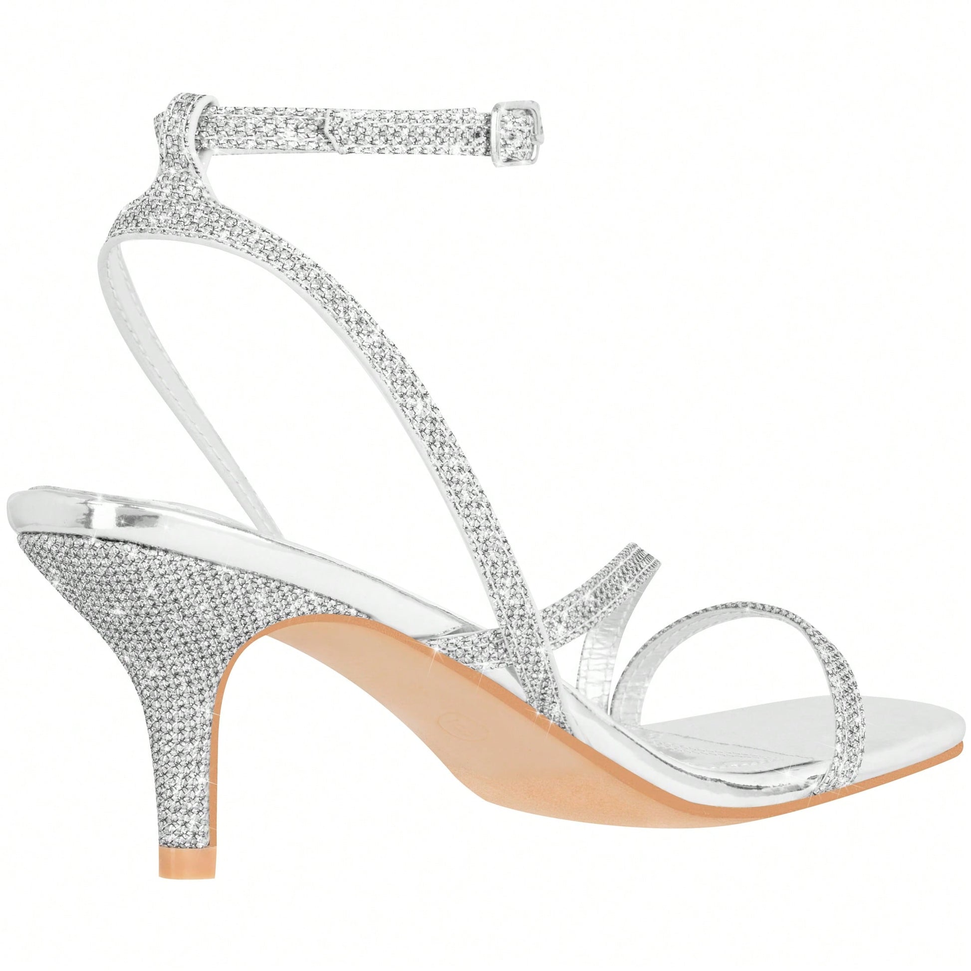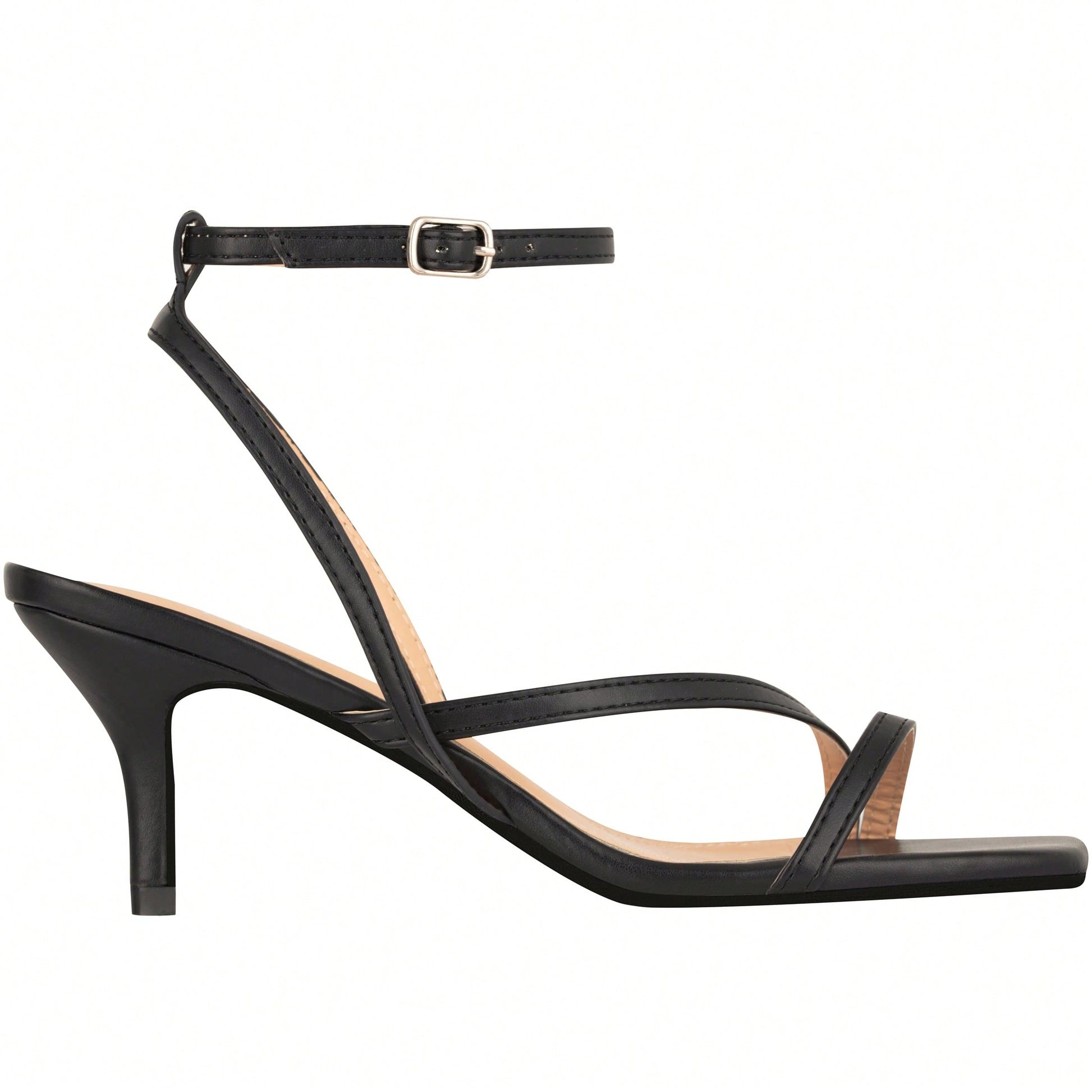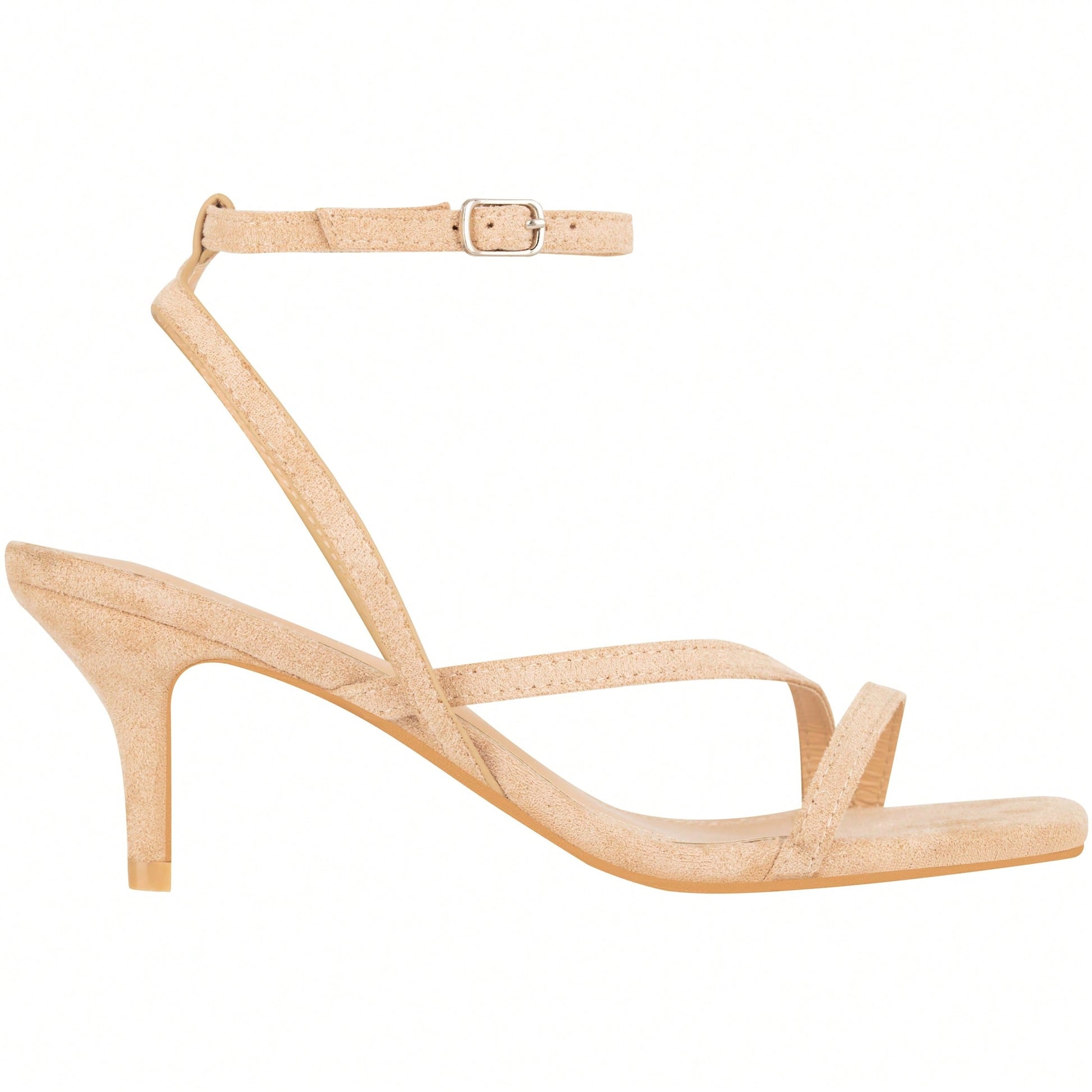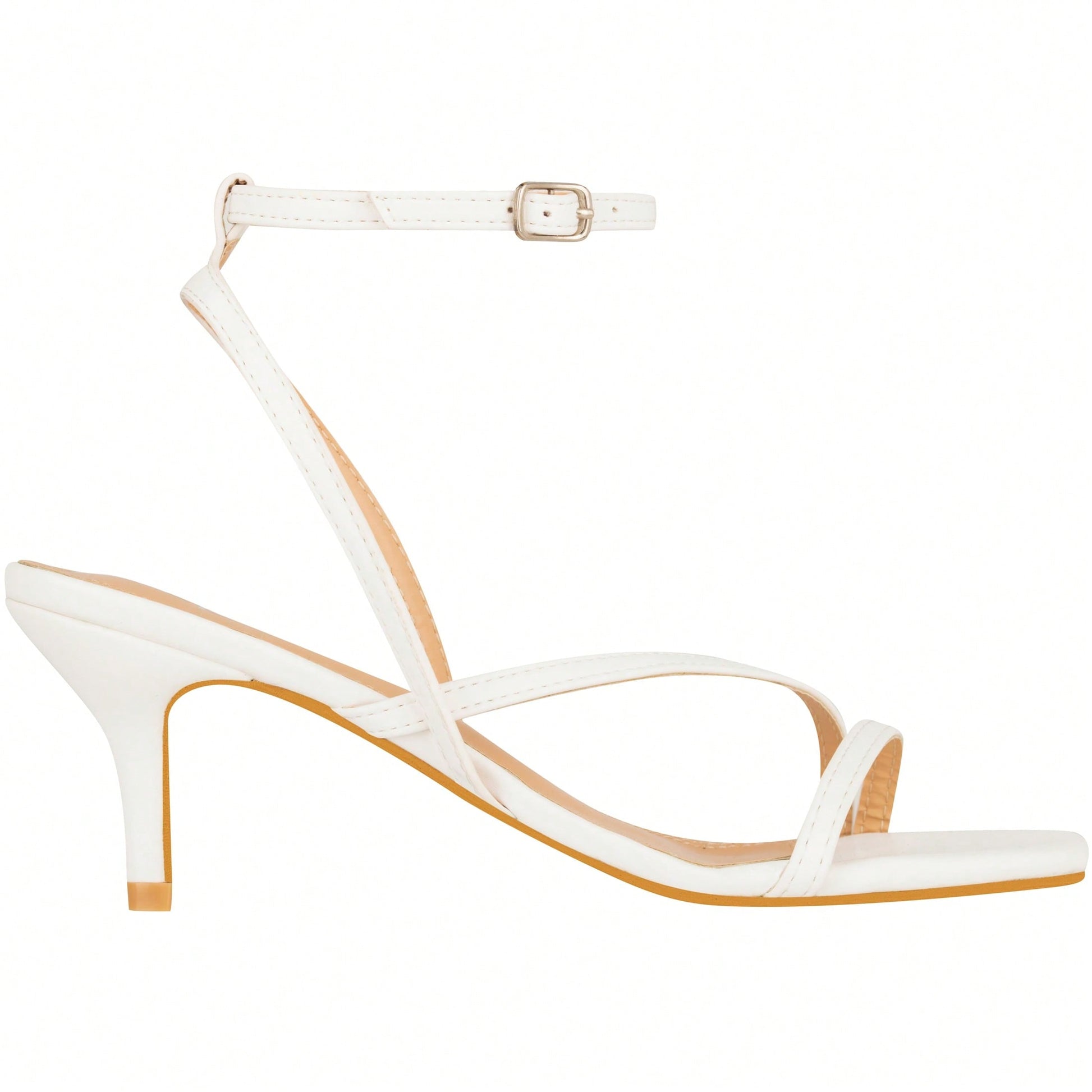 Womens Ankle Strap Sandal Heels Low Kitten Heel Square Toe Strappy Heeled Sandals