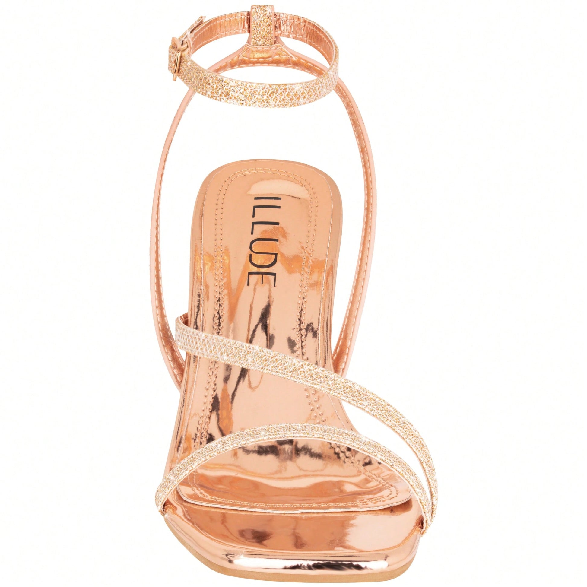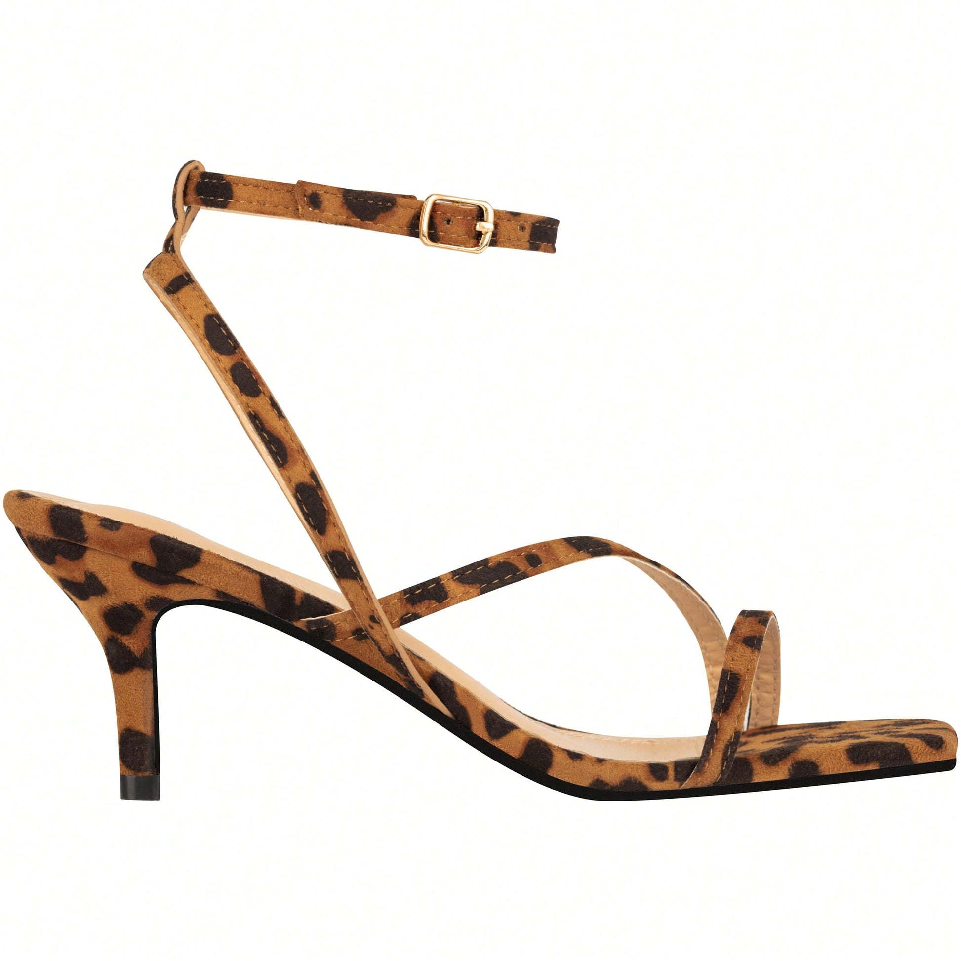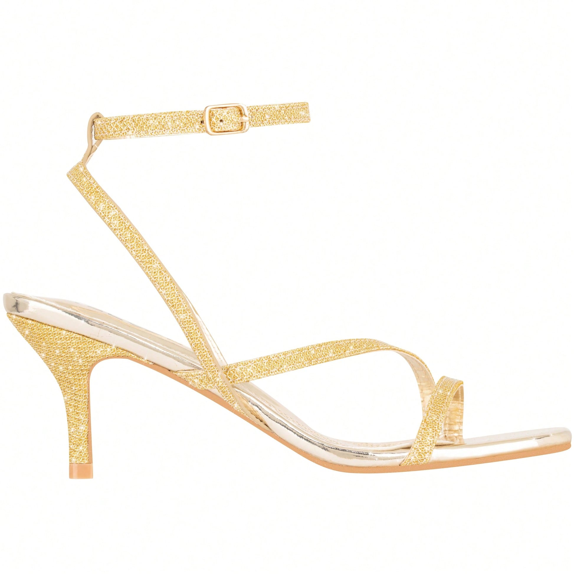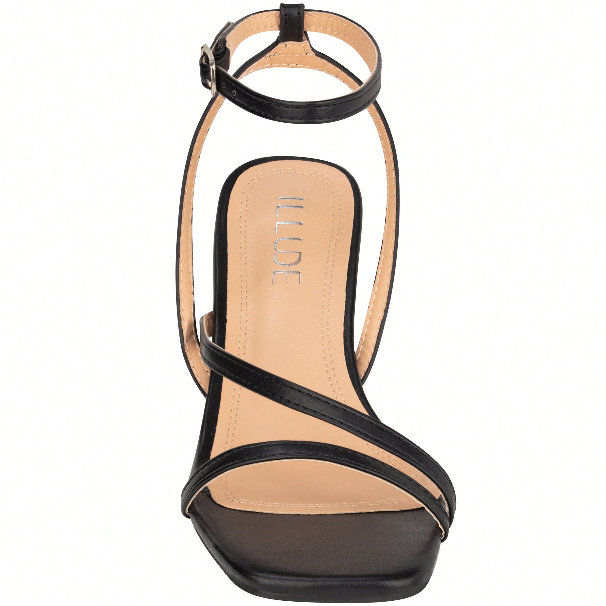 Womens Ankle Strap Sandal Heels Low Kitten Heel Square Toe Strappy Heeled Sandals
