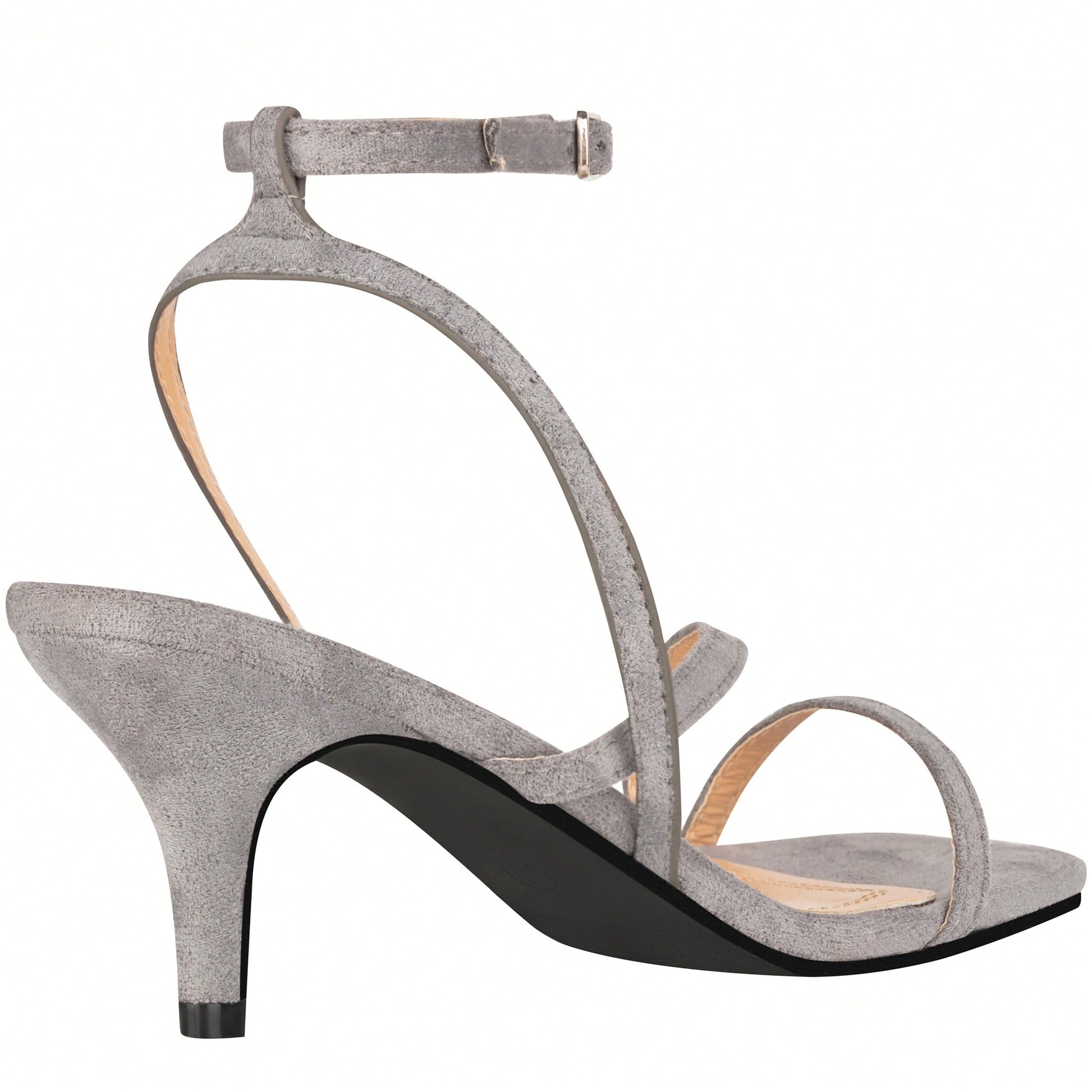 Womens Ankle Strap Sandal Heels Low Kitten Heel Square Toe Strappy Heeled Sandals Suede