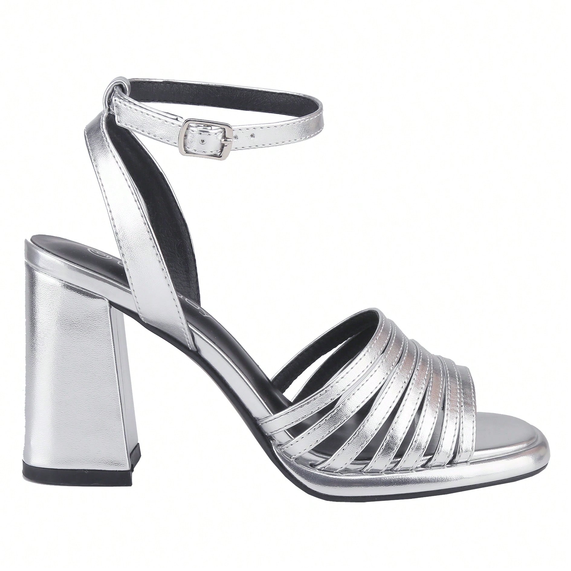 Women's Ankle Strap Square Toe Chunky Heels Sandals High Heeled Sandals