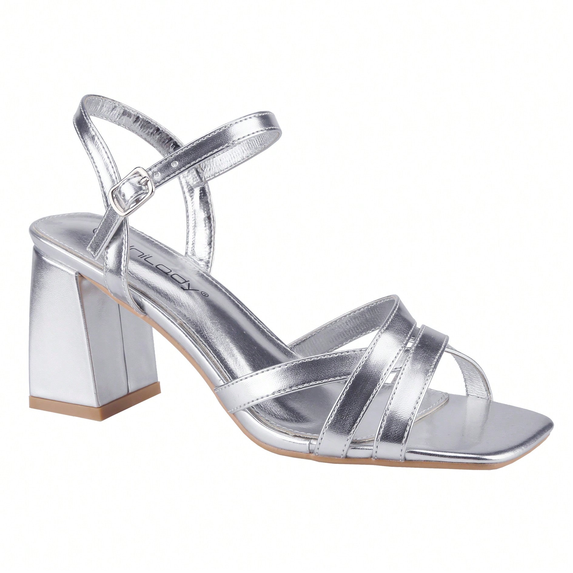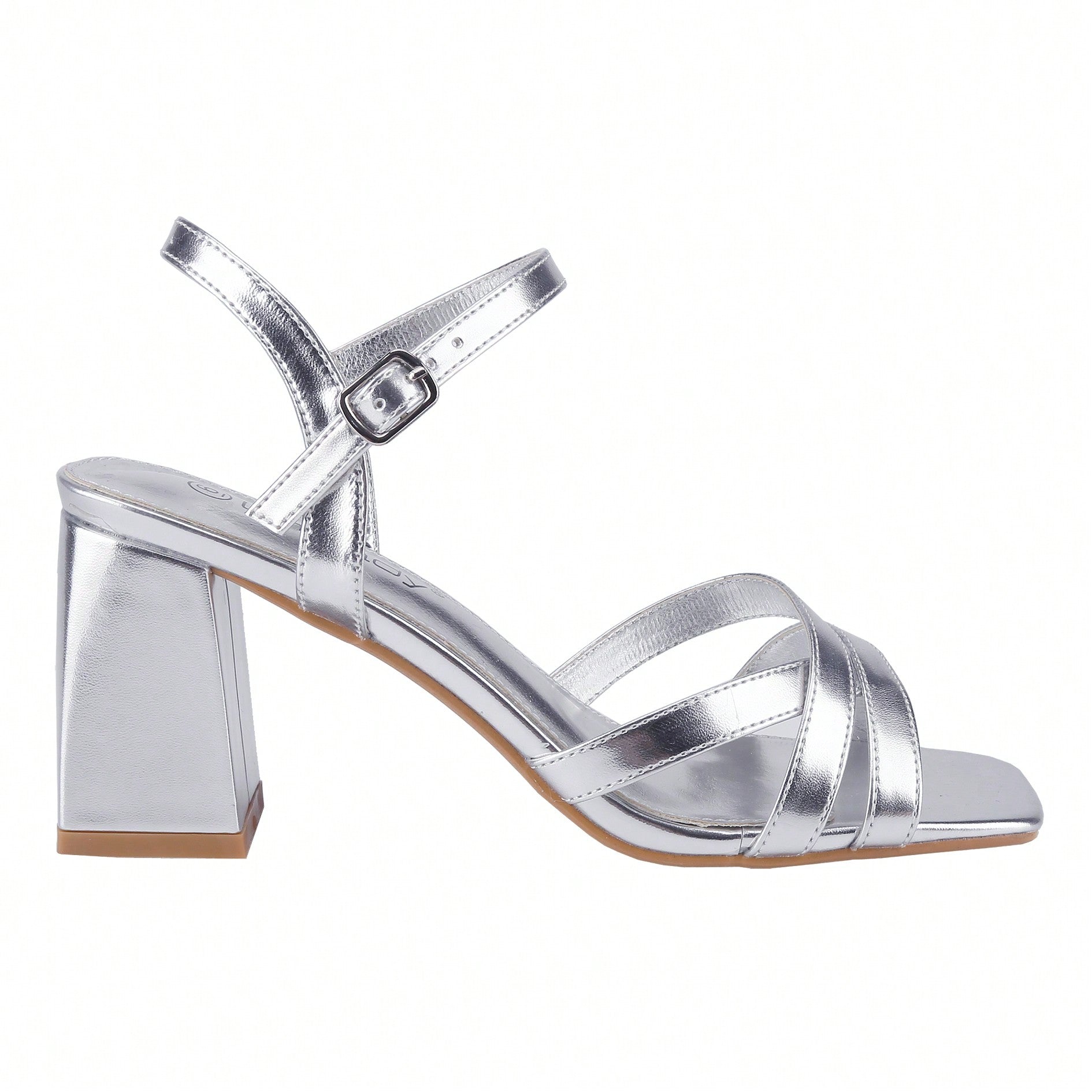 Women's Ankle Strap Square Toe Chunky Heels Sandals High Heeled Sandals