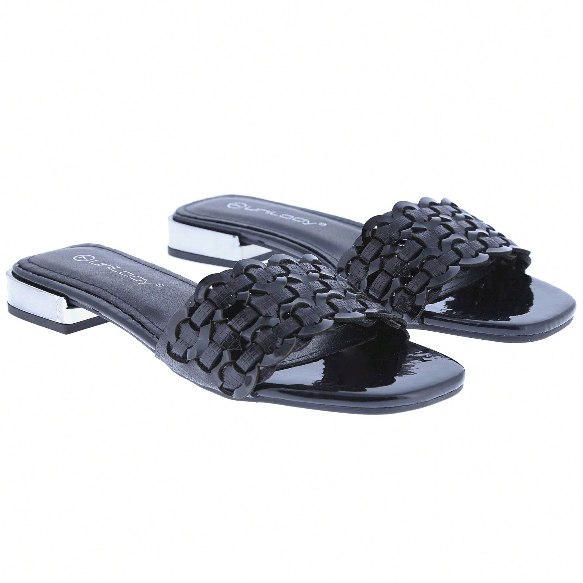 Women's Bling Rhinestone Square Flat Sandals, Crystal Satin Glitter Mules Slippers Boho Open Toe Slip-On Beach Sandals