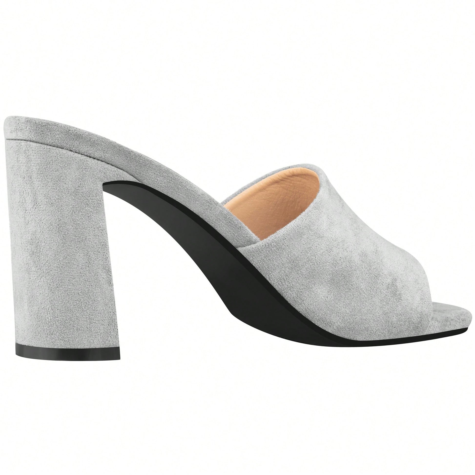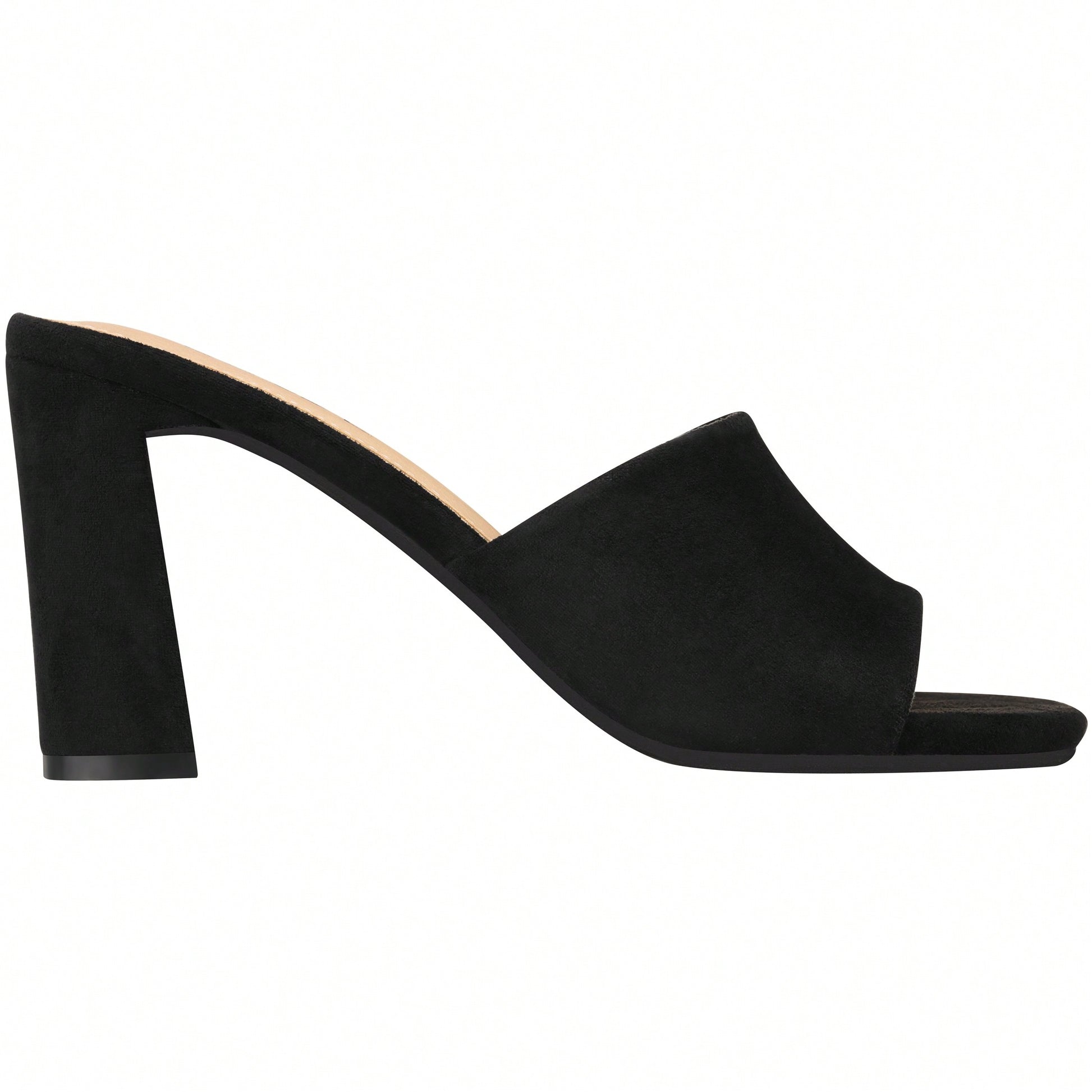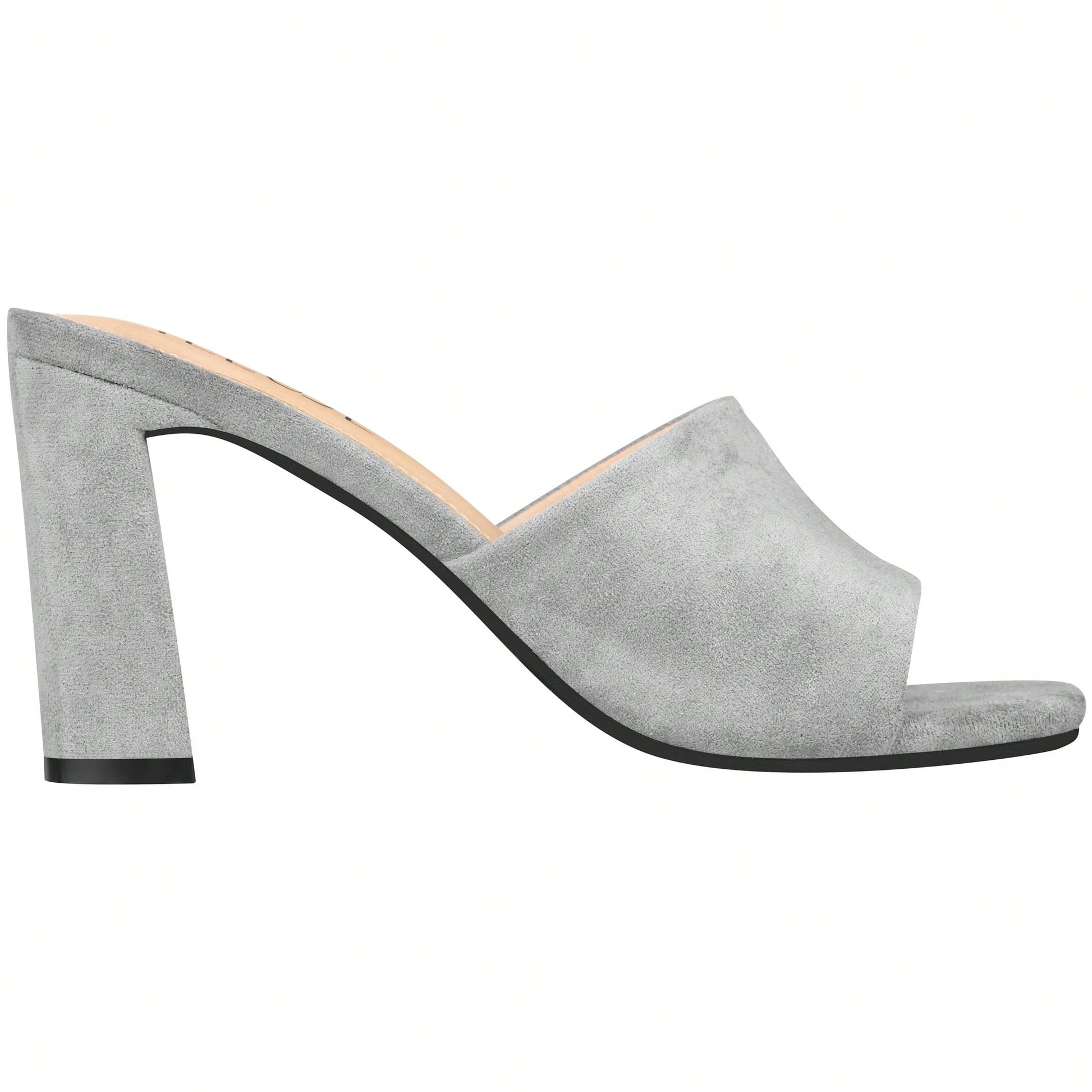 Women's Chunky Heeled Mule Sandals Low Heel Sandals Single Strap Square Toe Chunky Heeled Sandal Suede