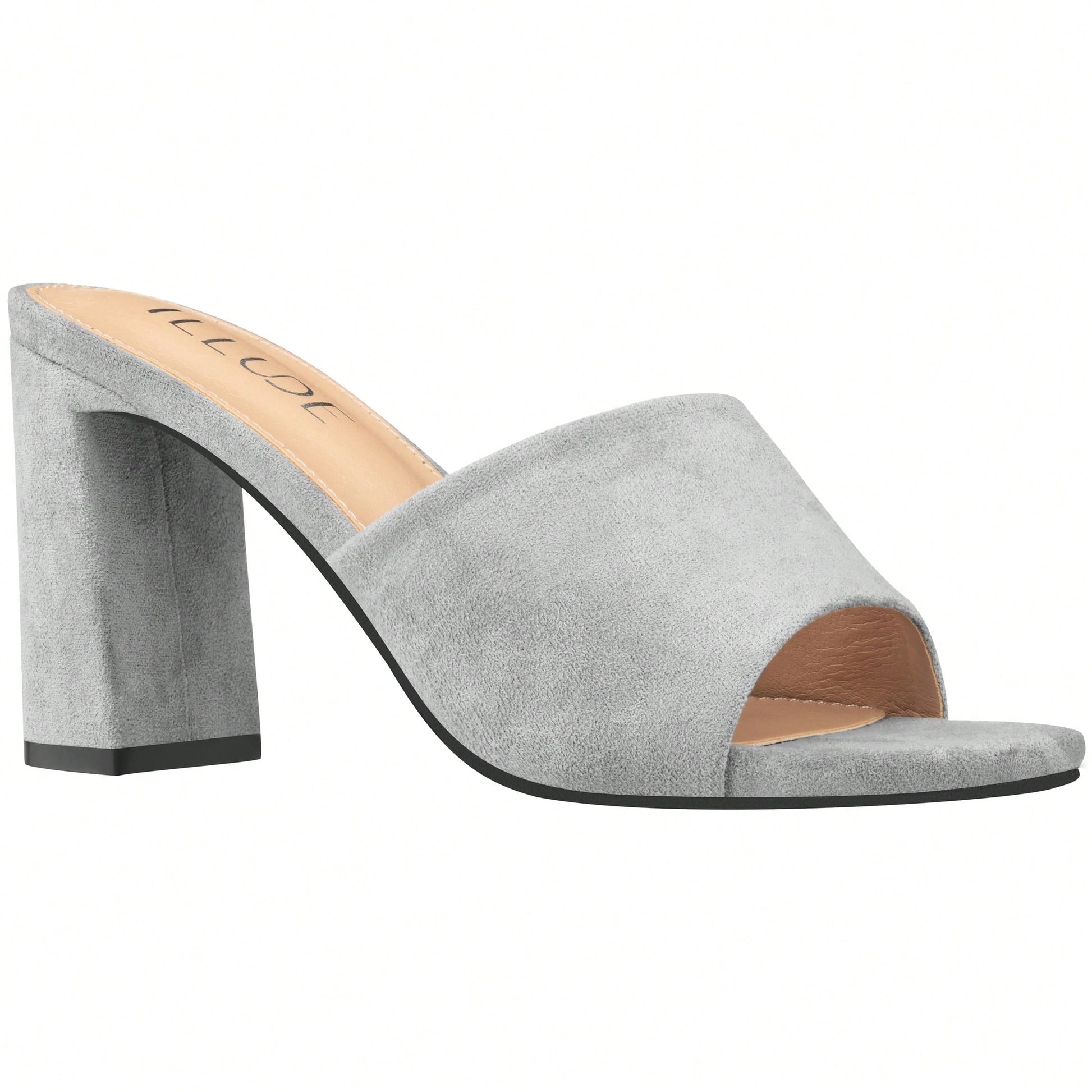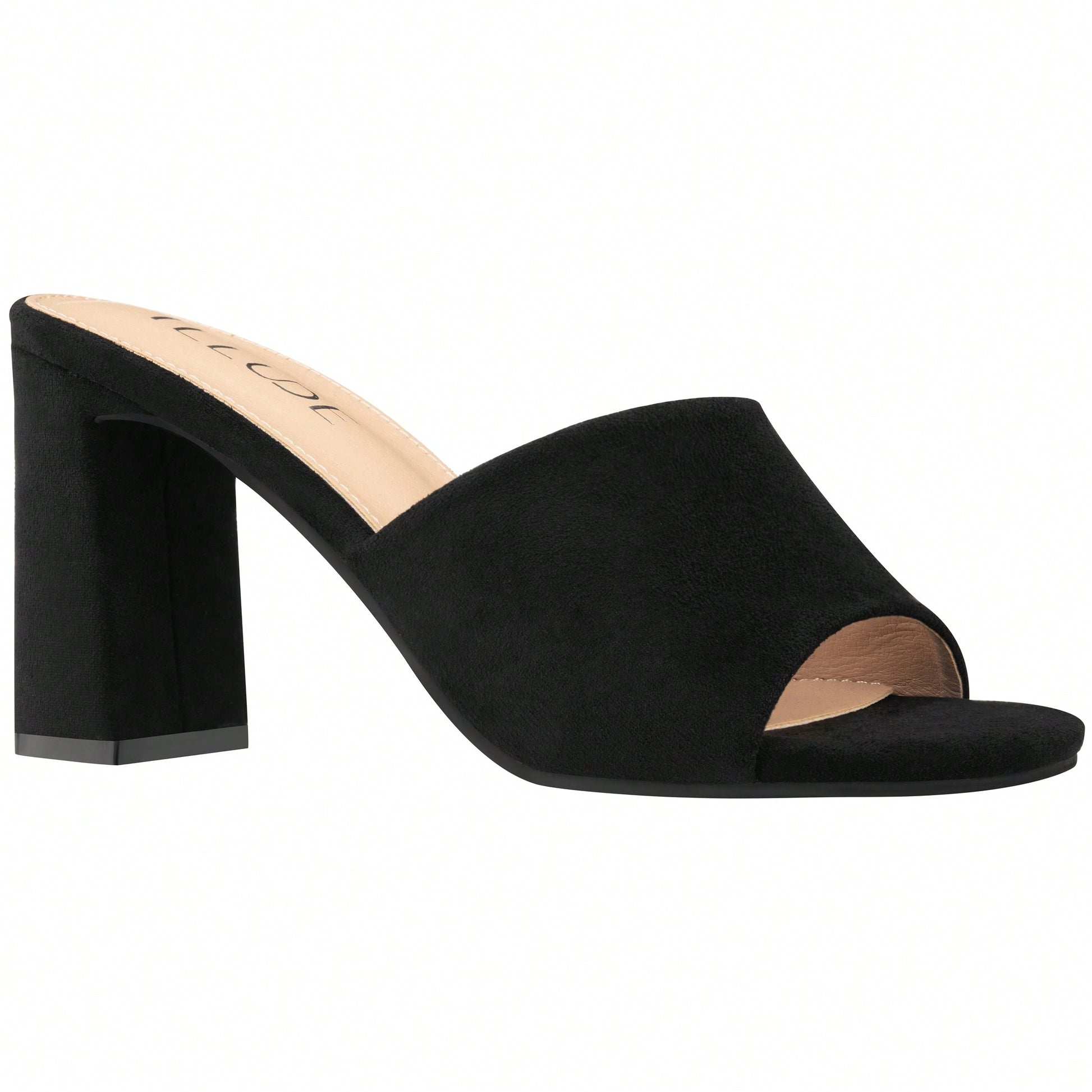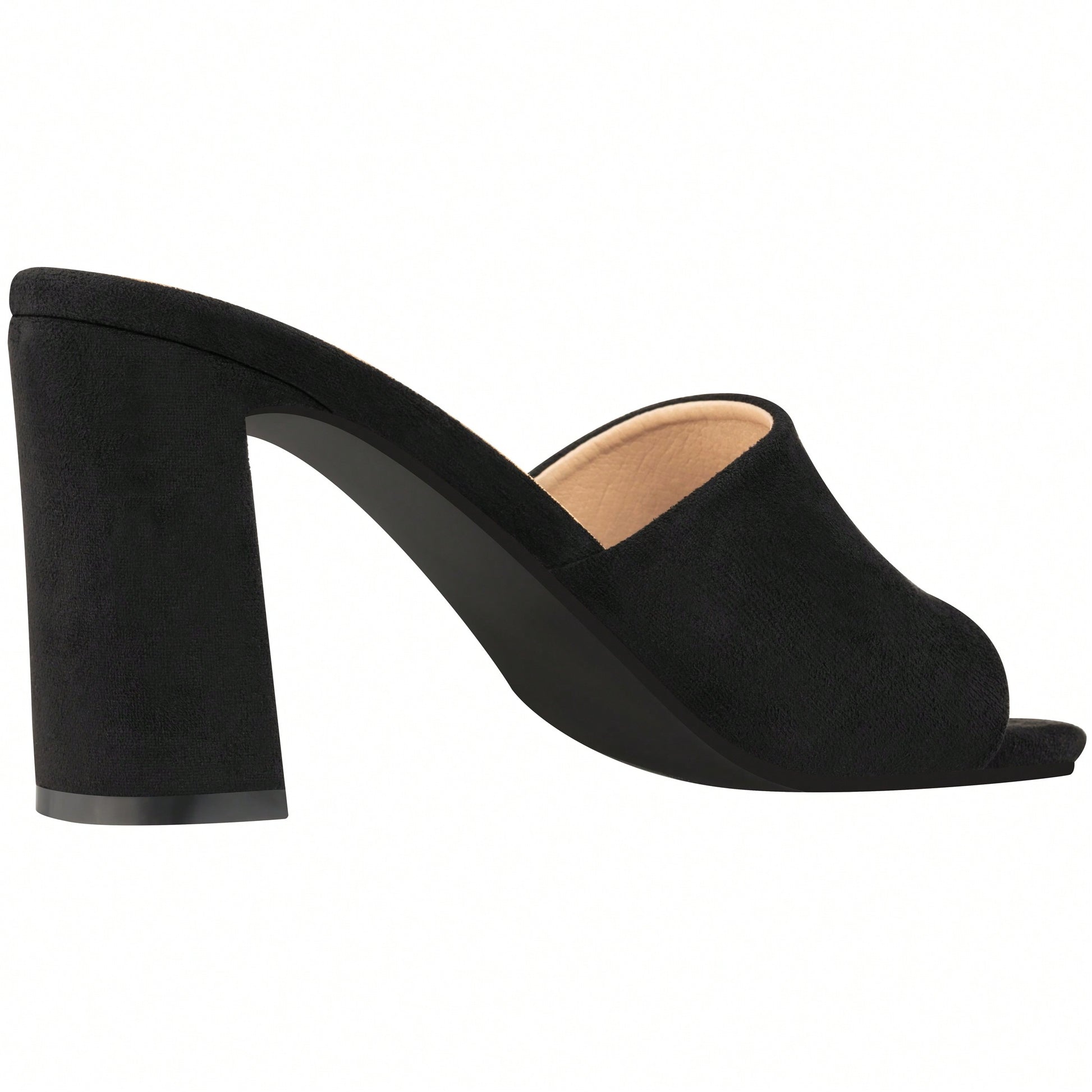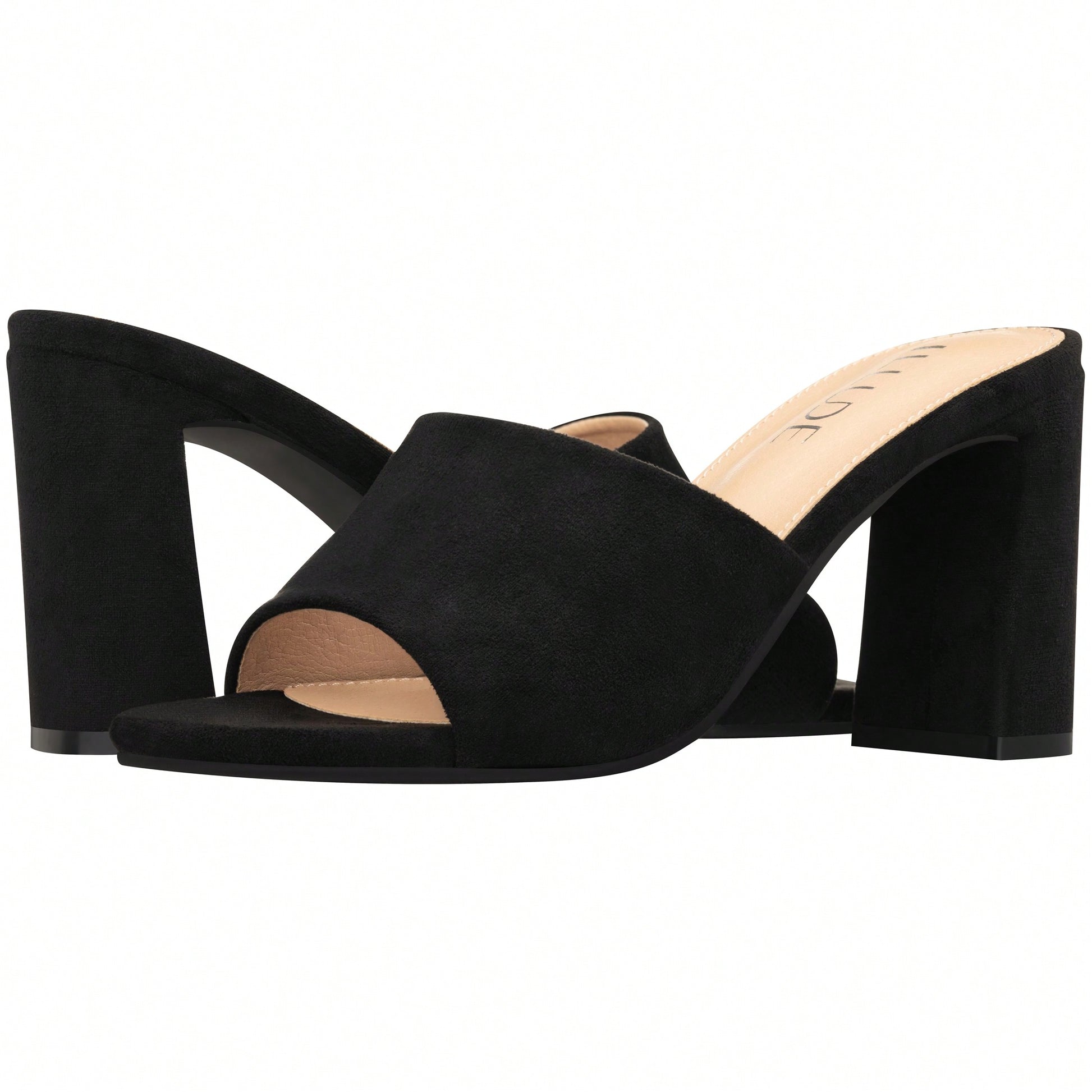 Women's Chunky Heeled Mule Sandals Low Heel Sandals Single Strap Square Toe Chunky Heeled Sandal Suede