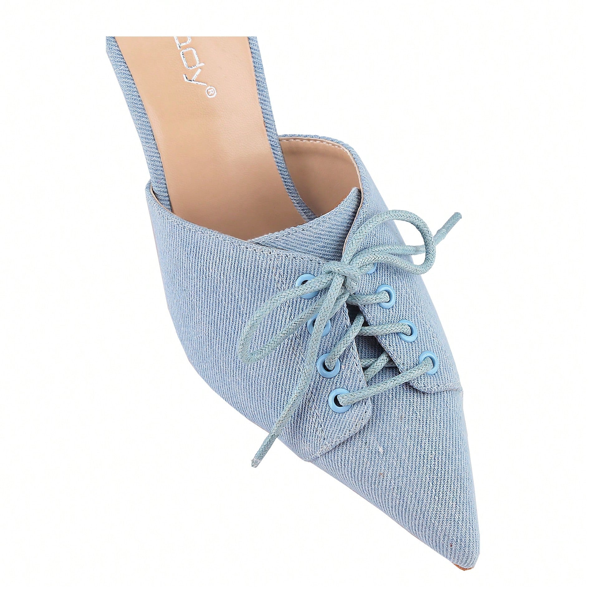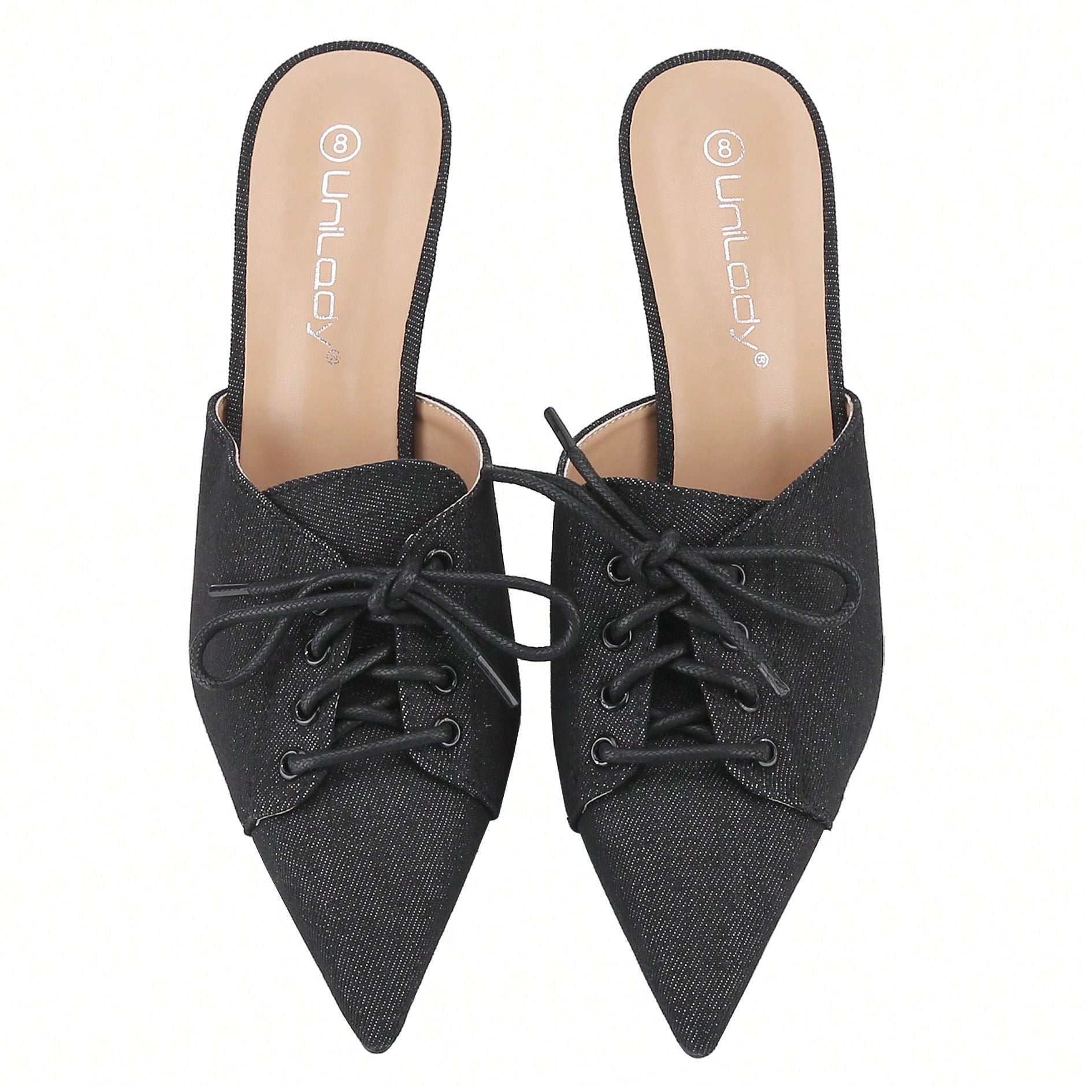 Women's Denim Stiletto Heels Sandals Pointed Toe Heeled Mule Pumps The heel measures approximately 2.4 inches; a classic low kitten heel with a soft footbed, and a pointed toe. You can dress them up for parties, dances, weddings, dates, night club, vacations, work, or daily life. These stylish heels are suitable for any occasion.