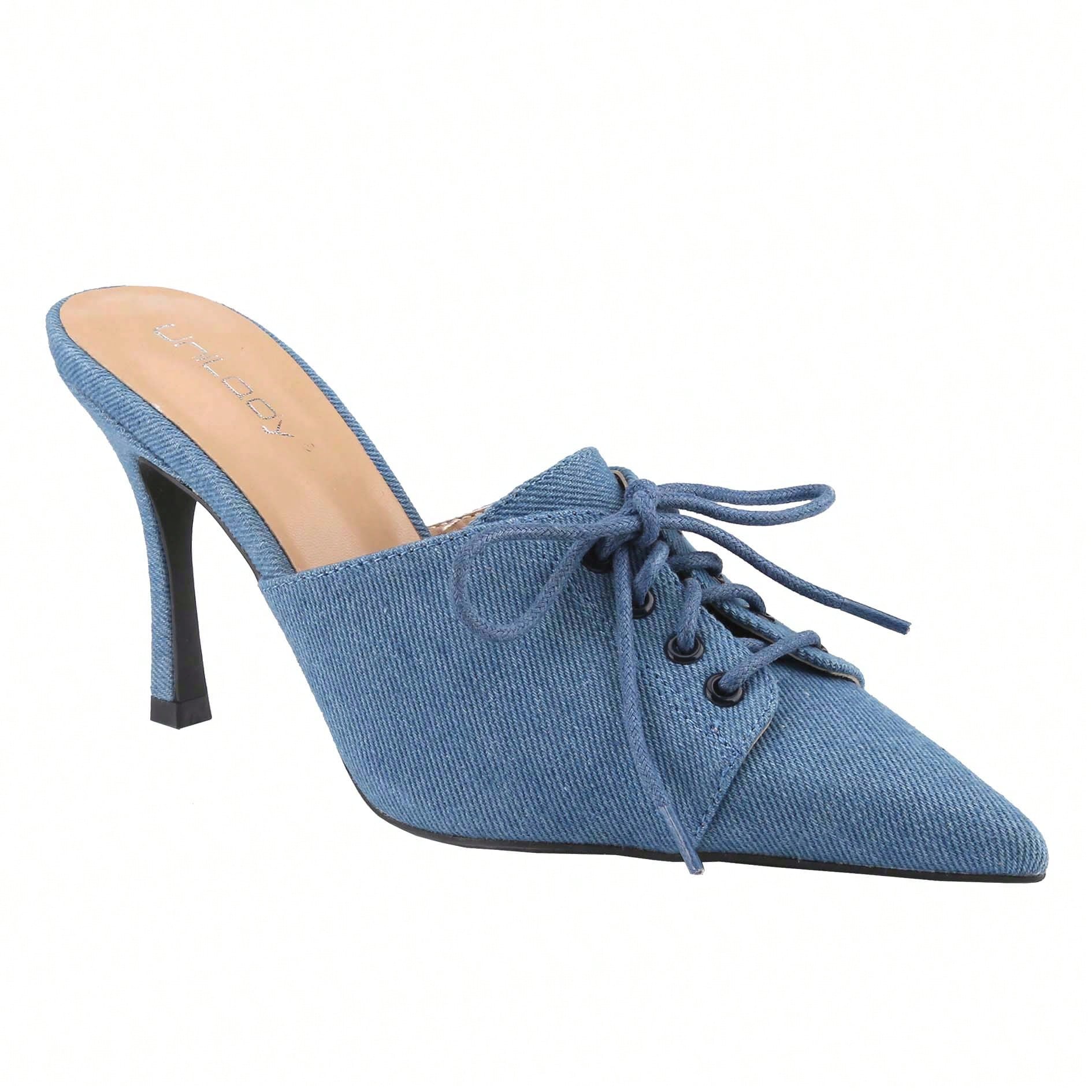 Womens Denim Stiletto Heels Sandals Pointed Toe Heeled Mule Pumps