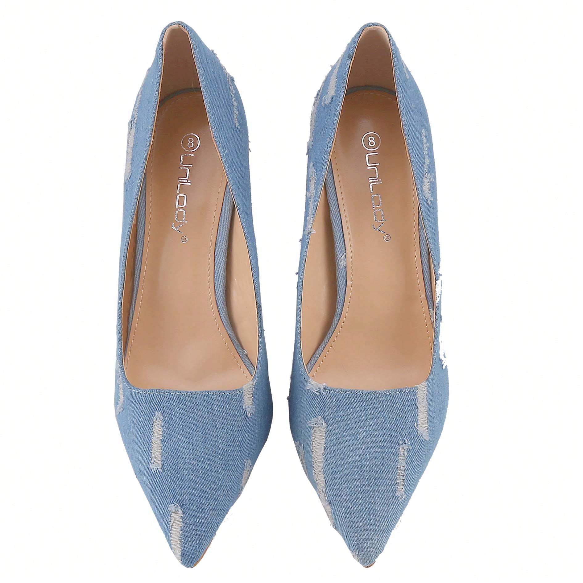 Women's Denim Stiletto Pumps Heels Pointed Toe Stiletto Dress Pump