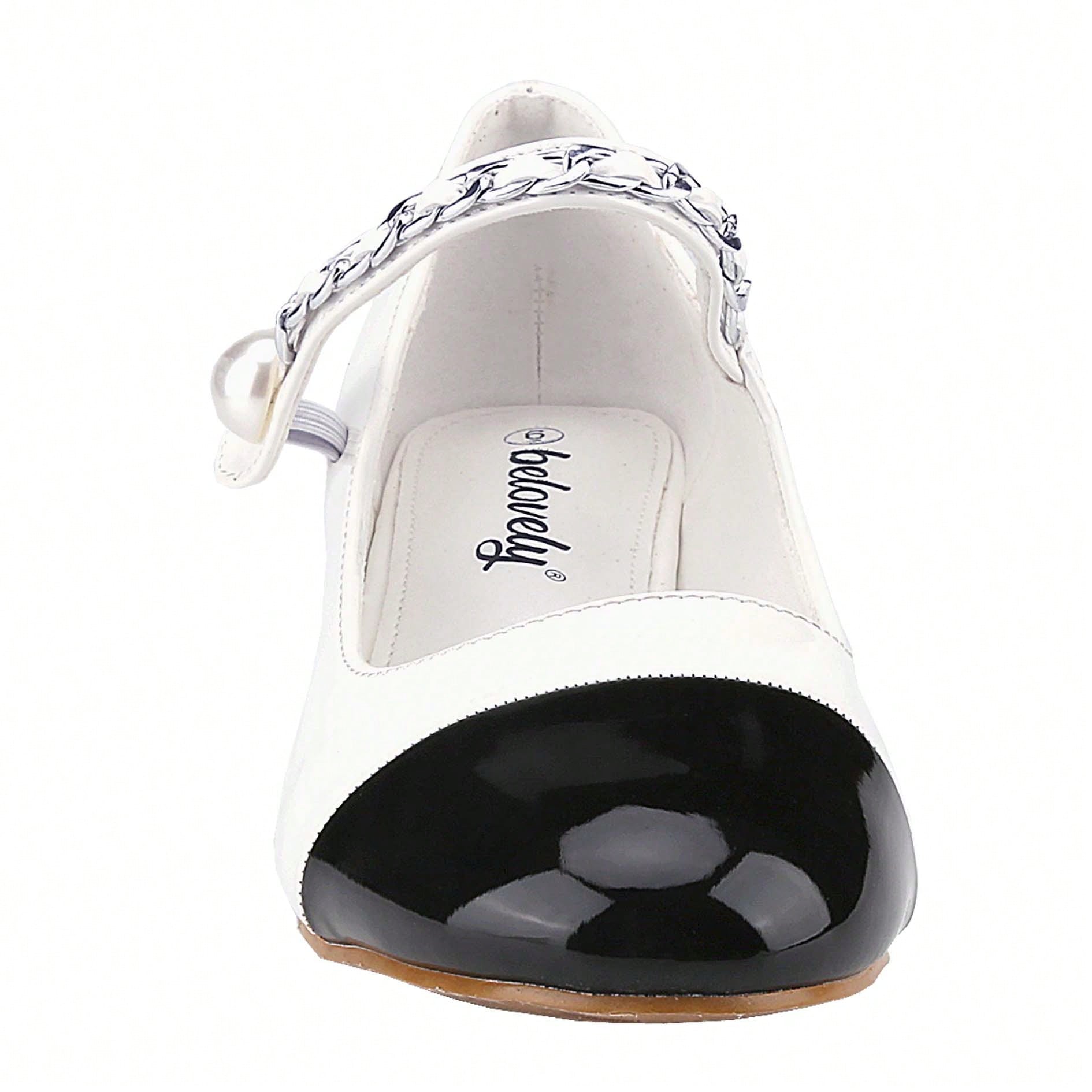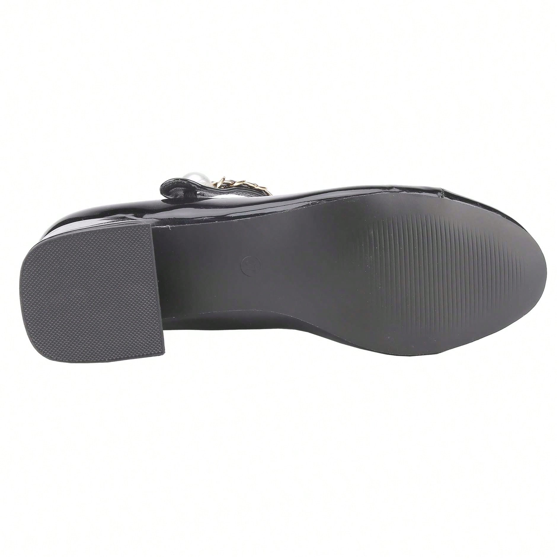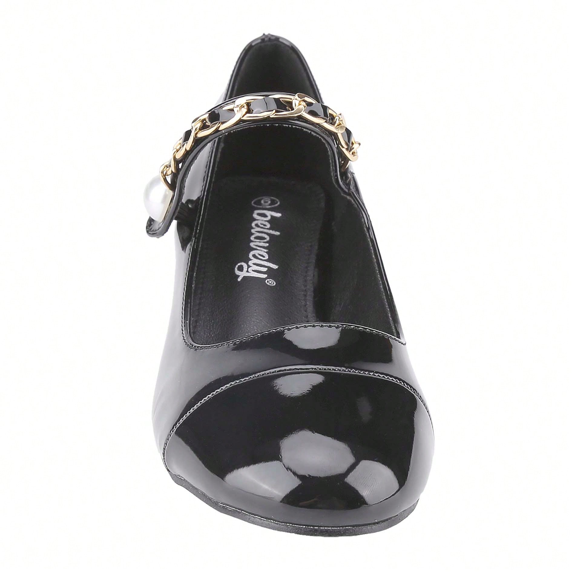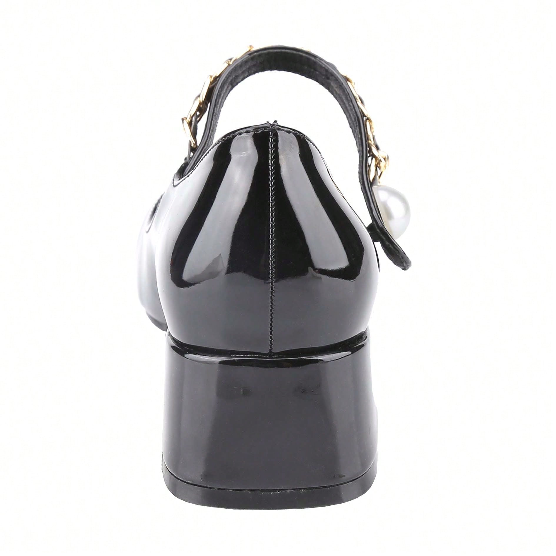 Women's Elegant Pearl-Chain Embellished French Mary Jane Pumps Patent High Heels