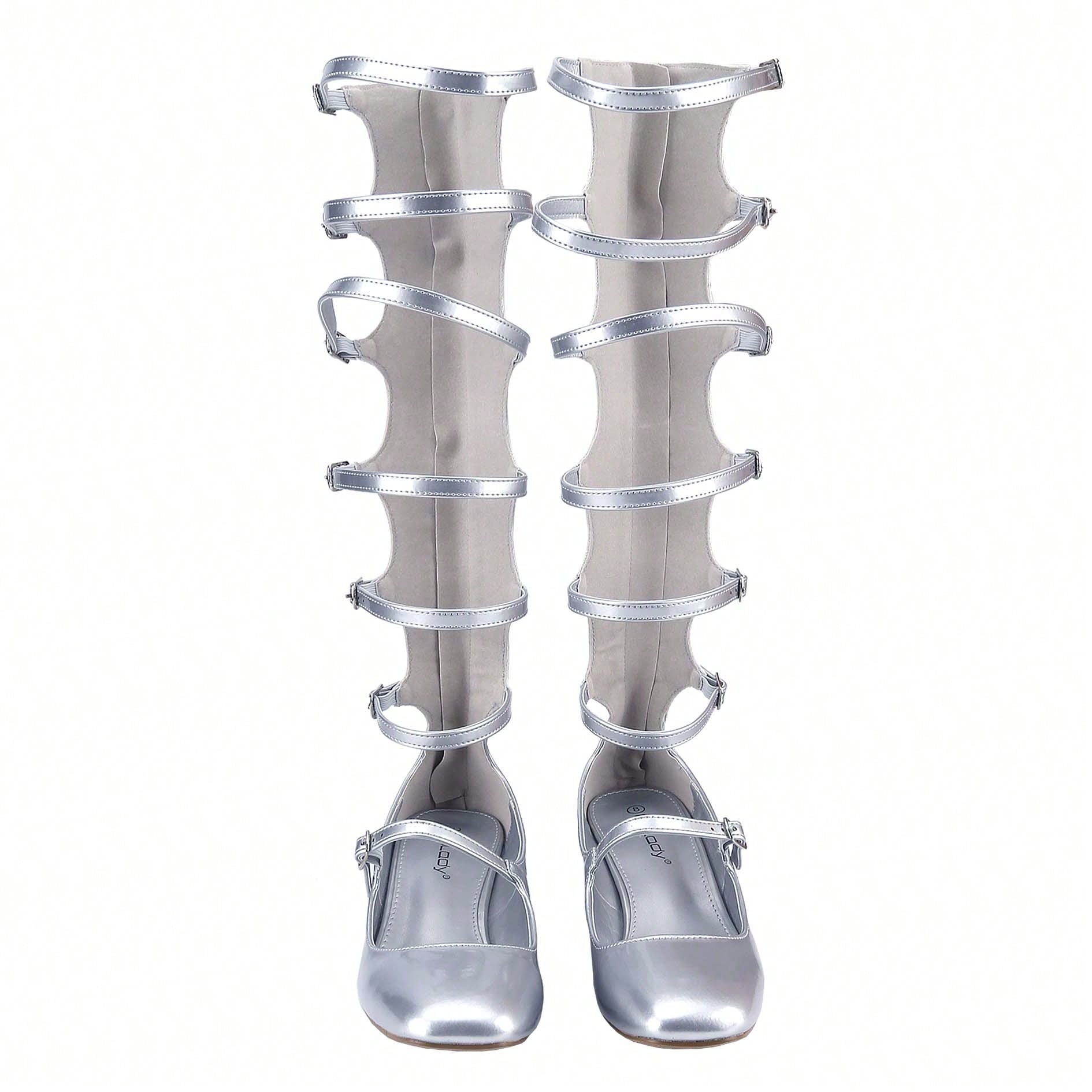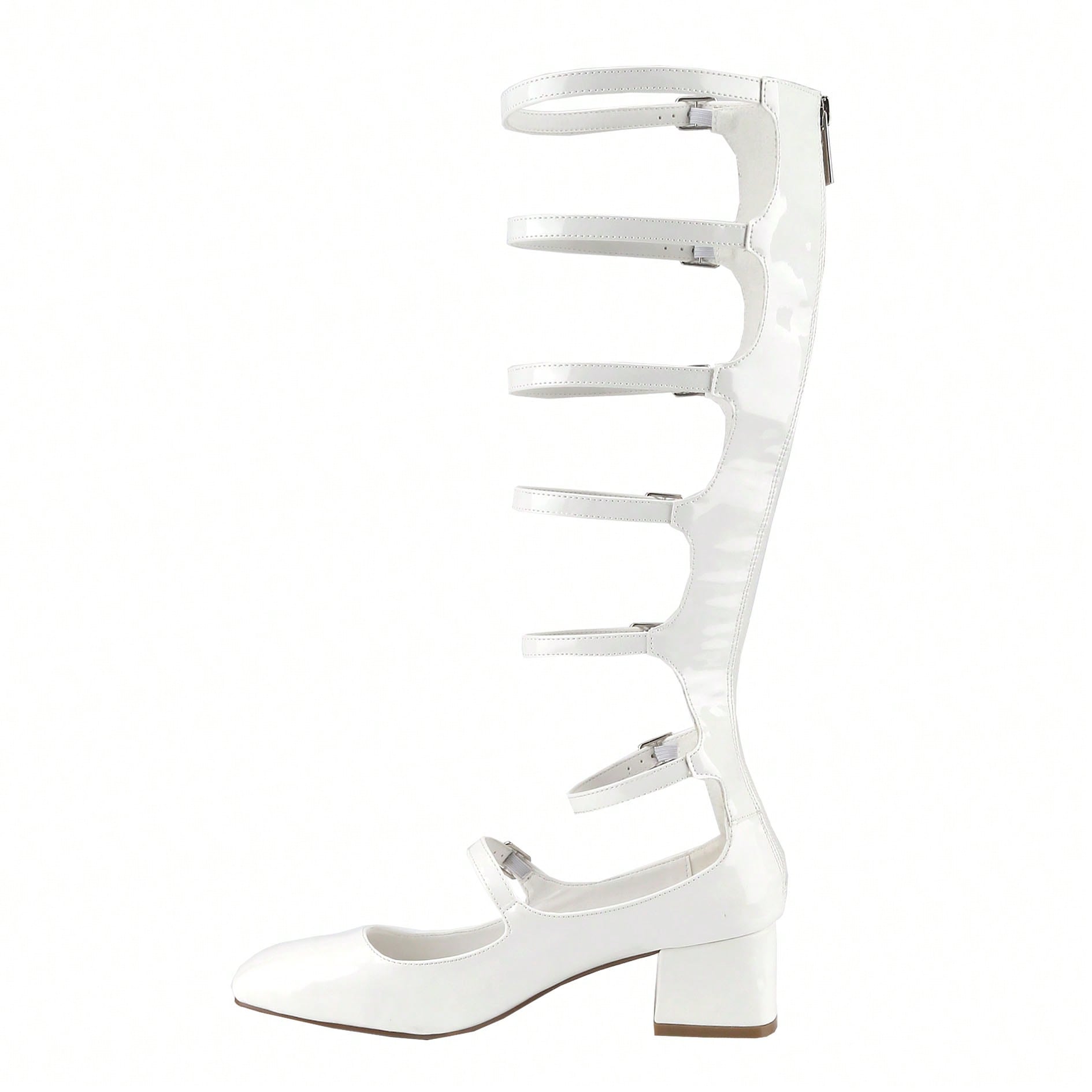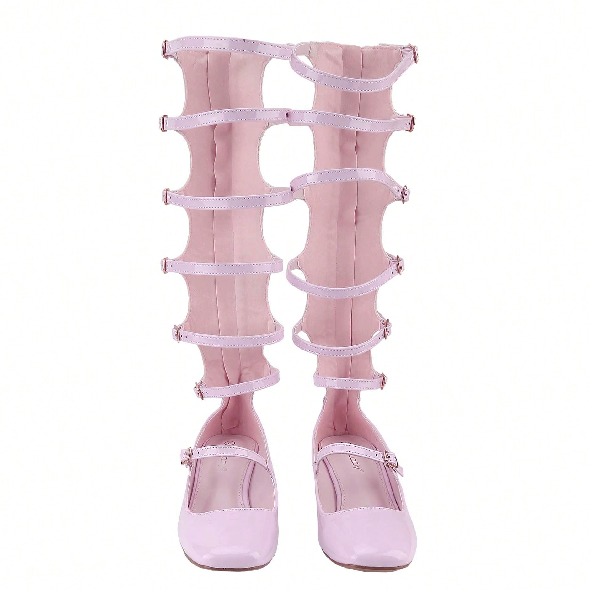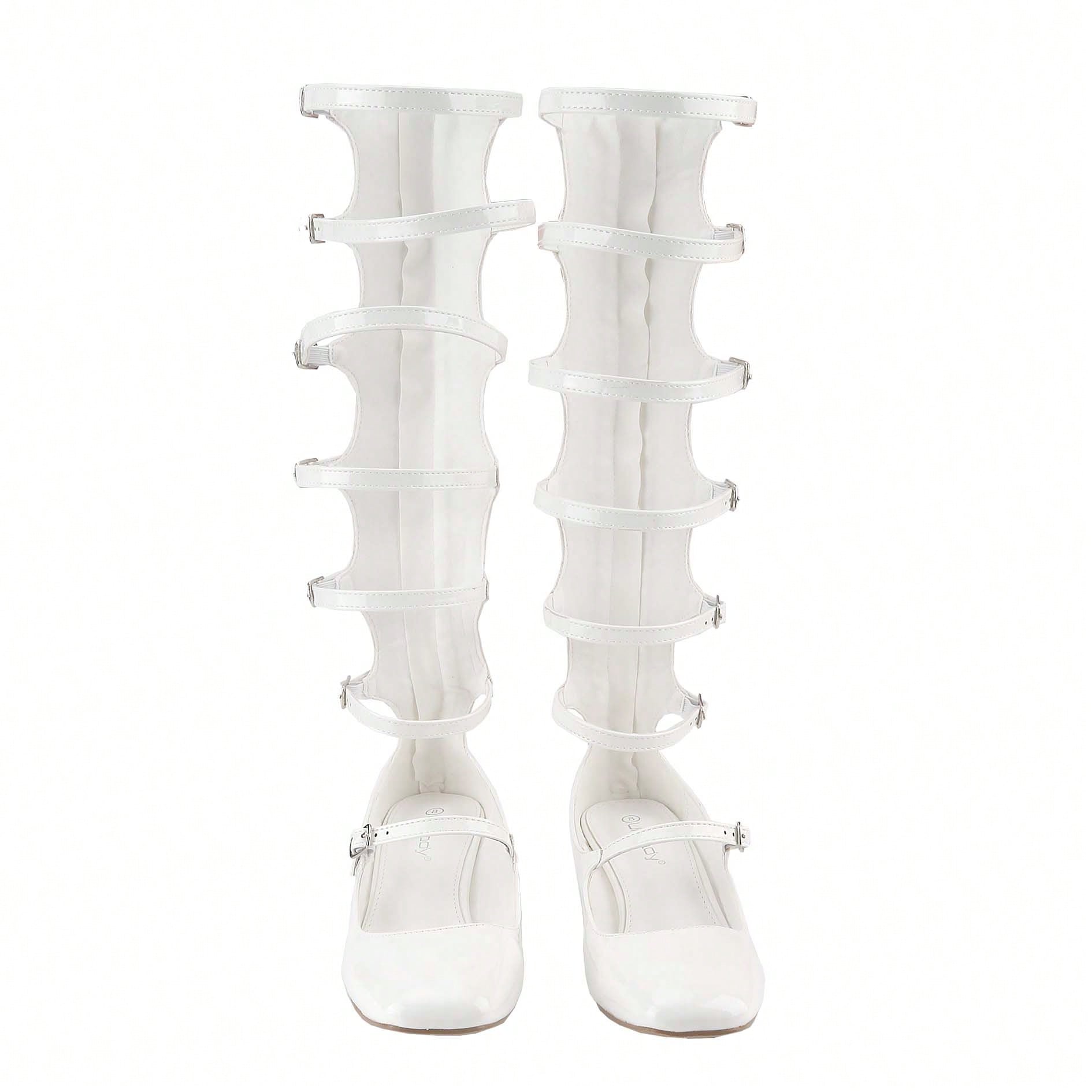 Women's Fashion Mary Janes,Closed Square Toe, Mid-Calf Strappy Gladiator, Low Block Heel