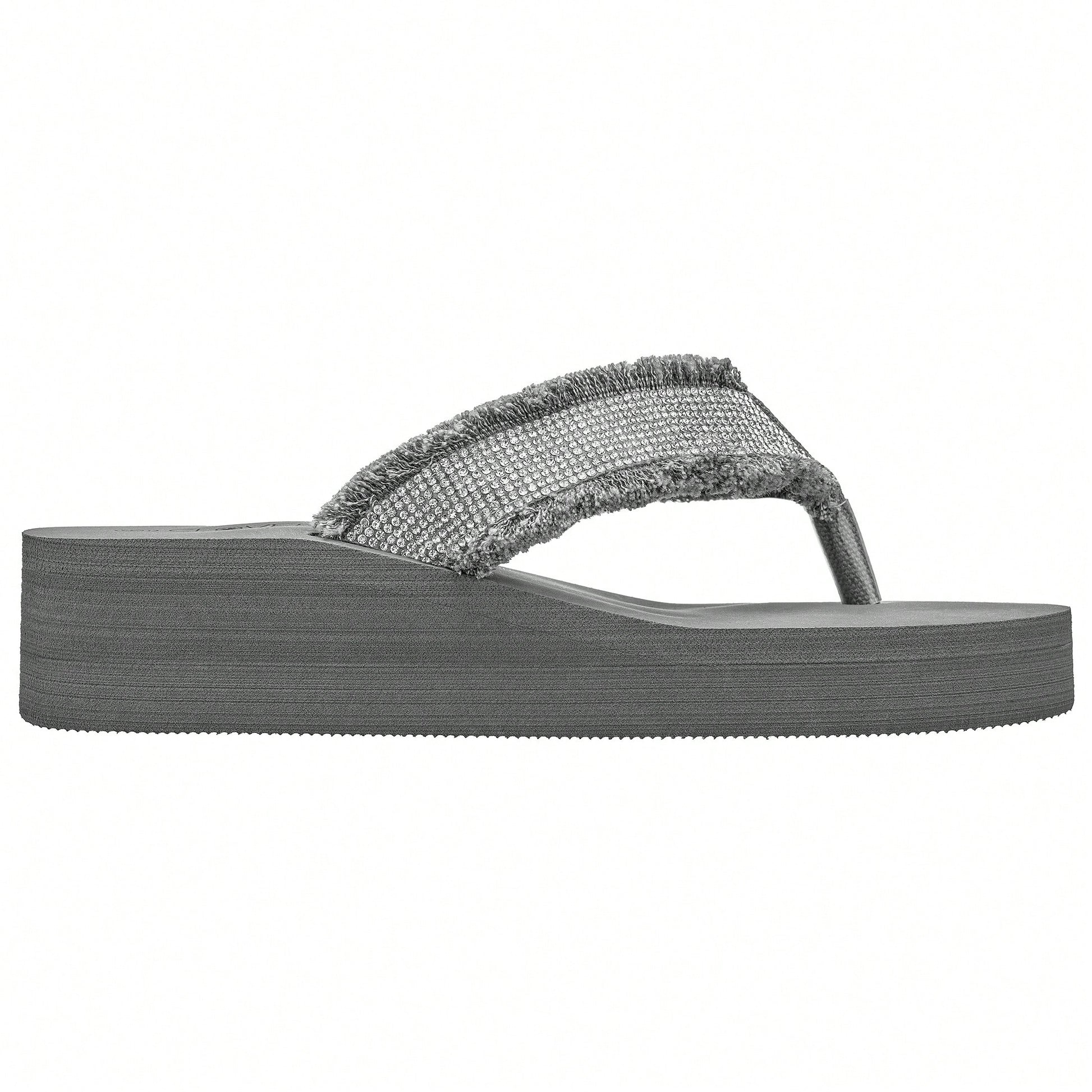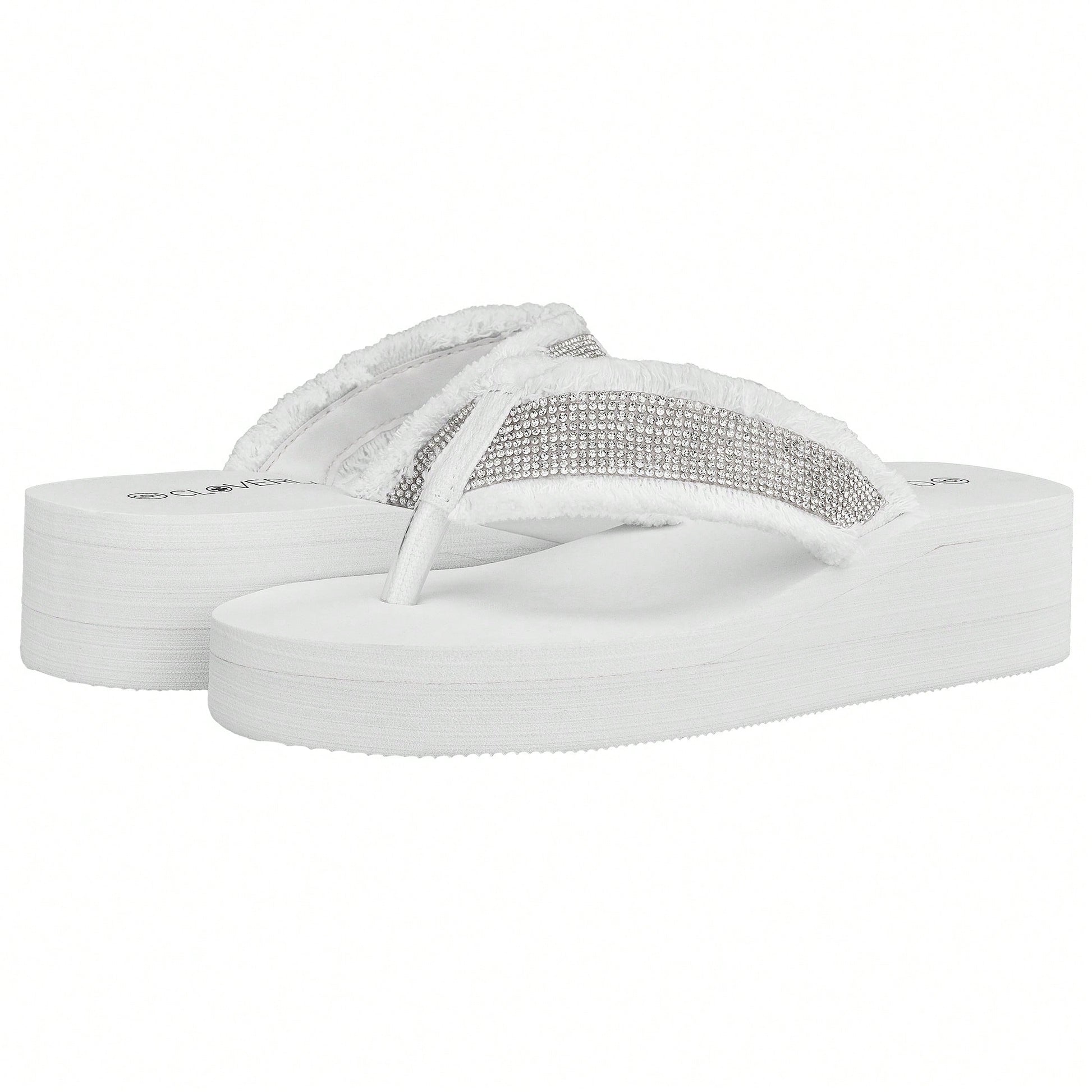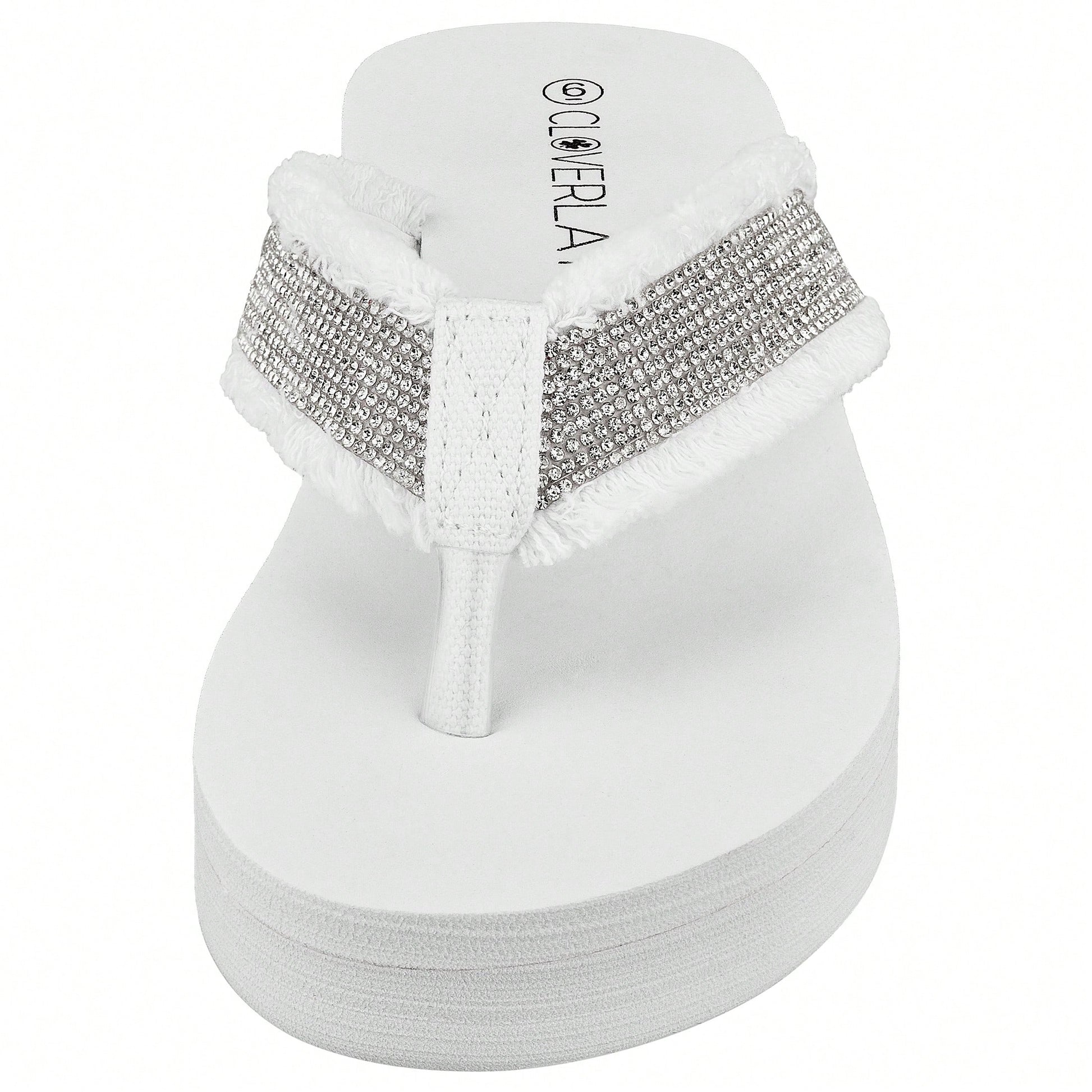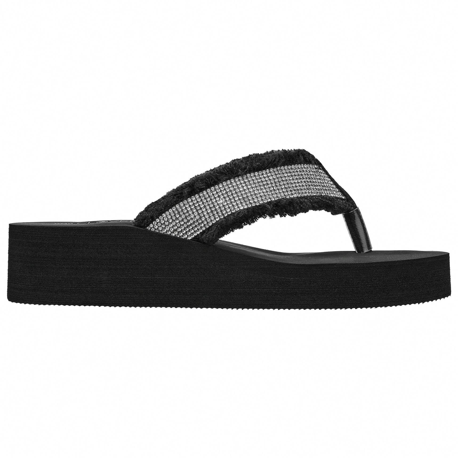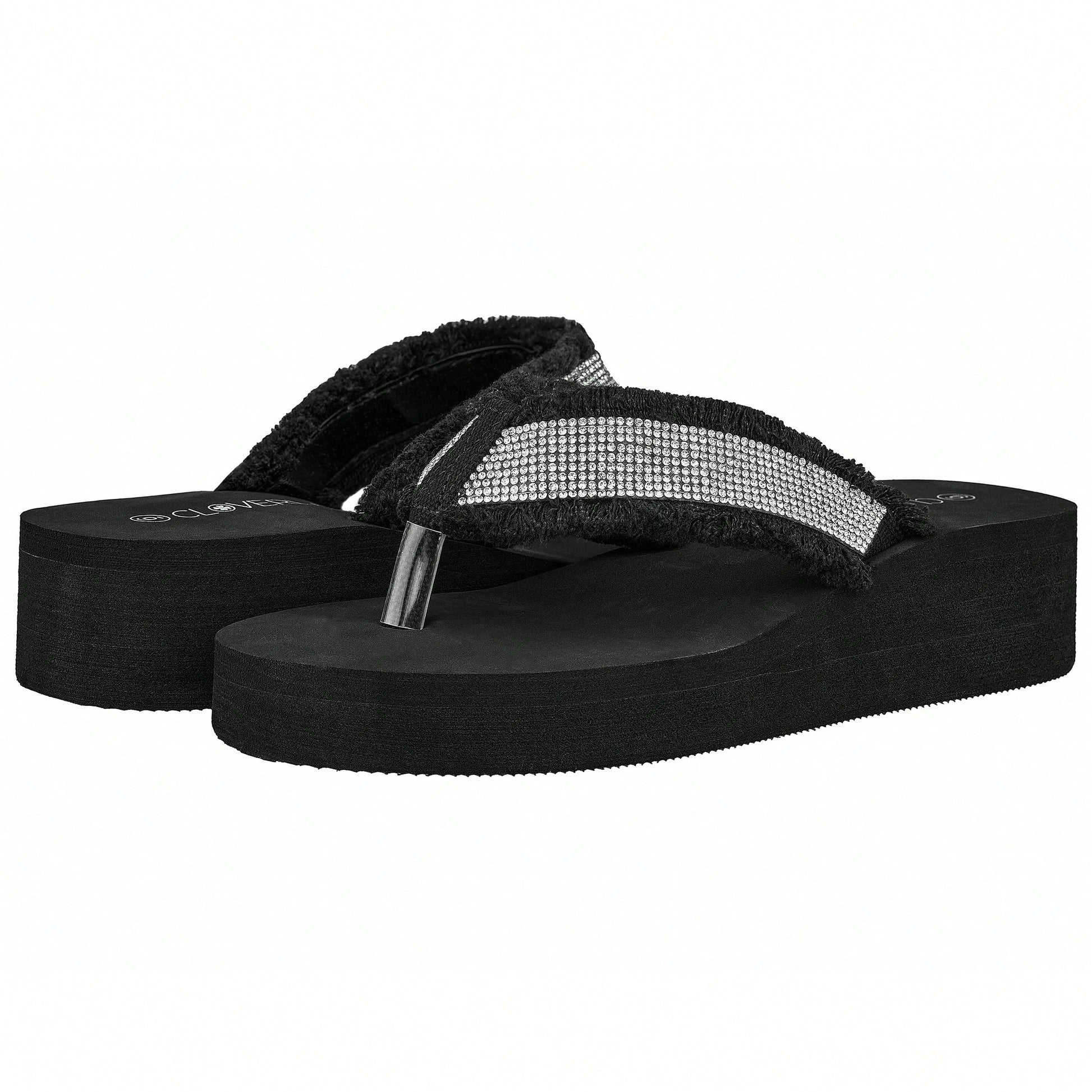 Women's Fashionable Rhinestone Decor Flip Flops Thick Bottom Wedge Beach Sandals Platform Flip Flop Toe Post Design Slippers Summer Sandals