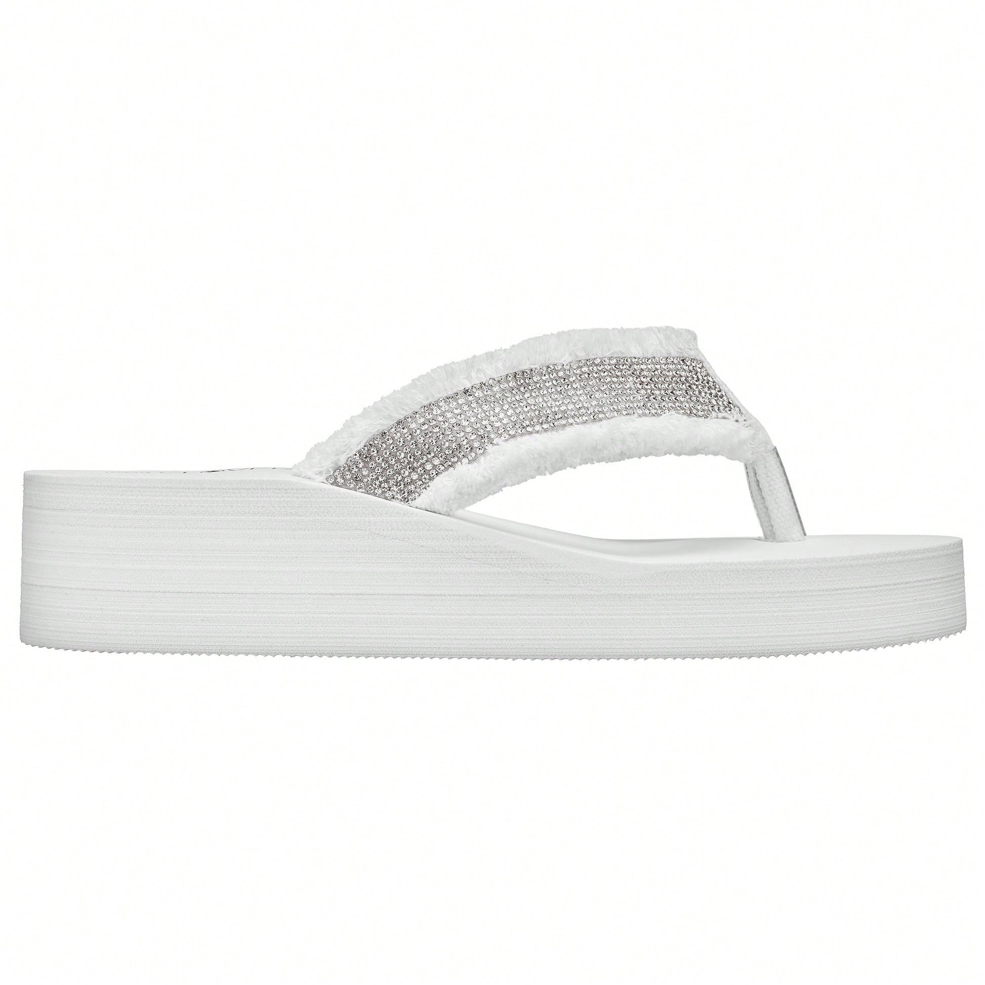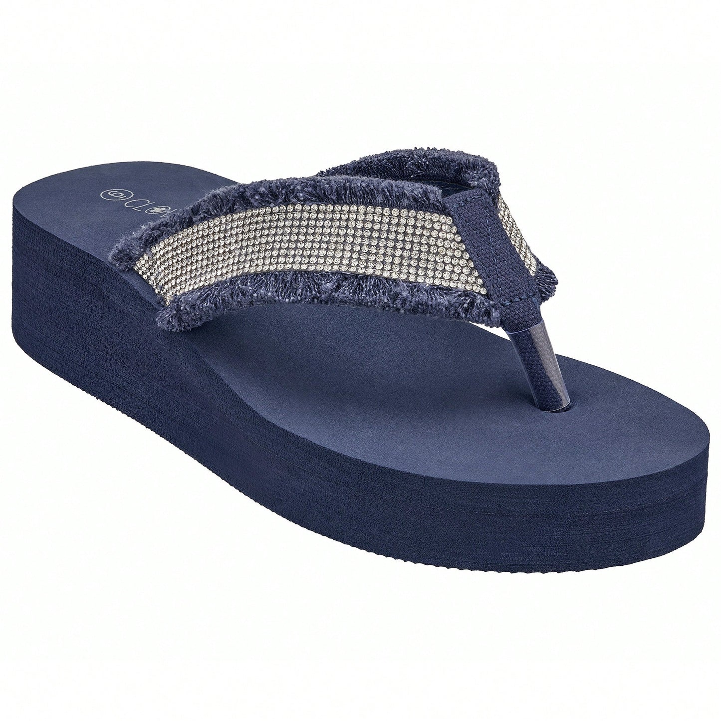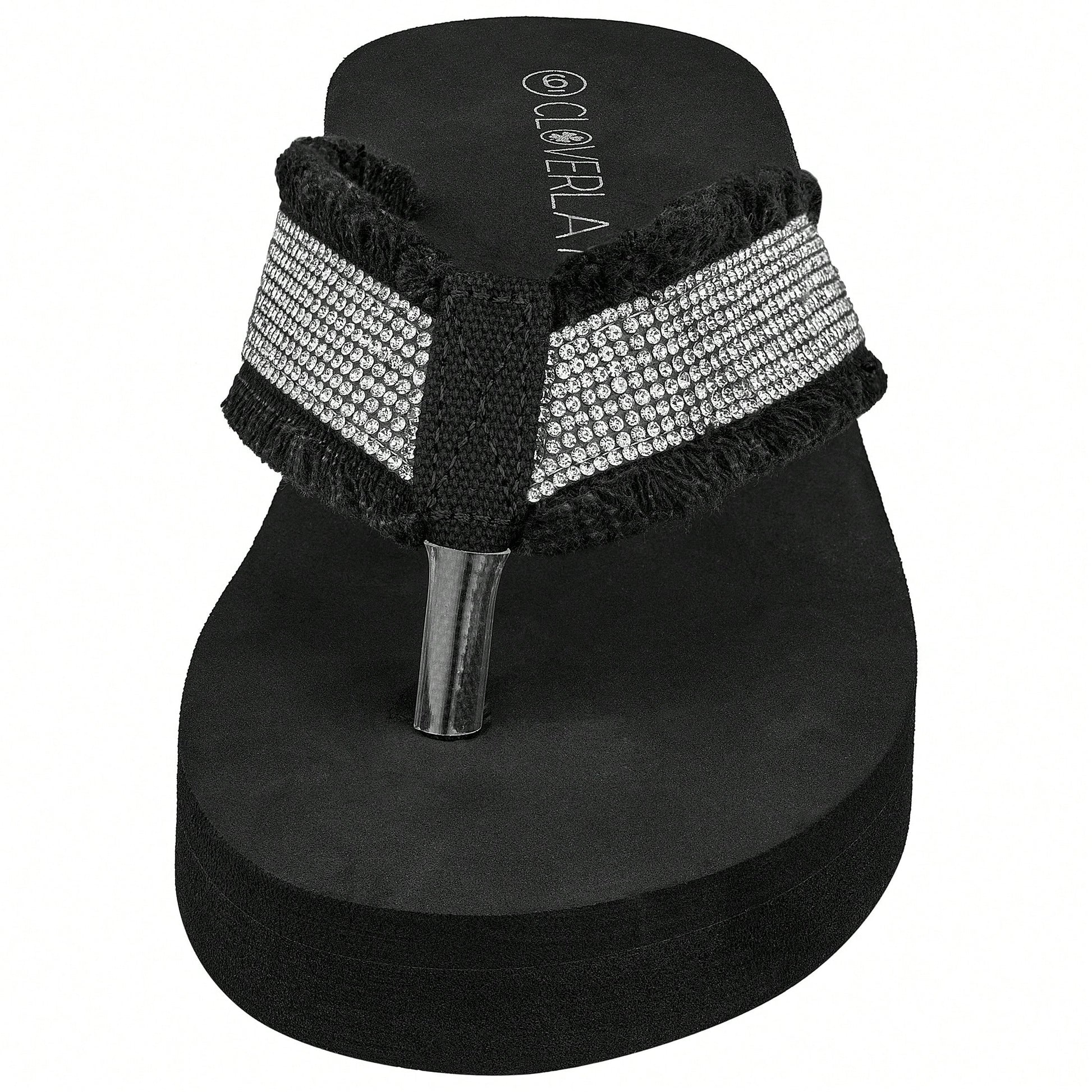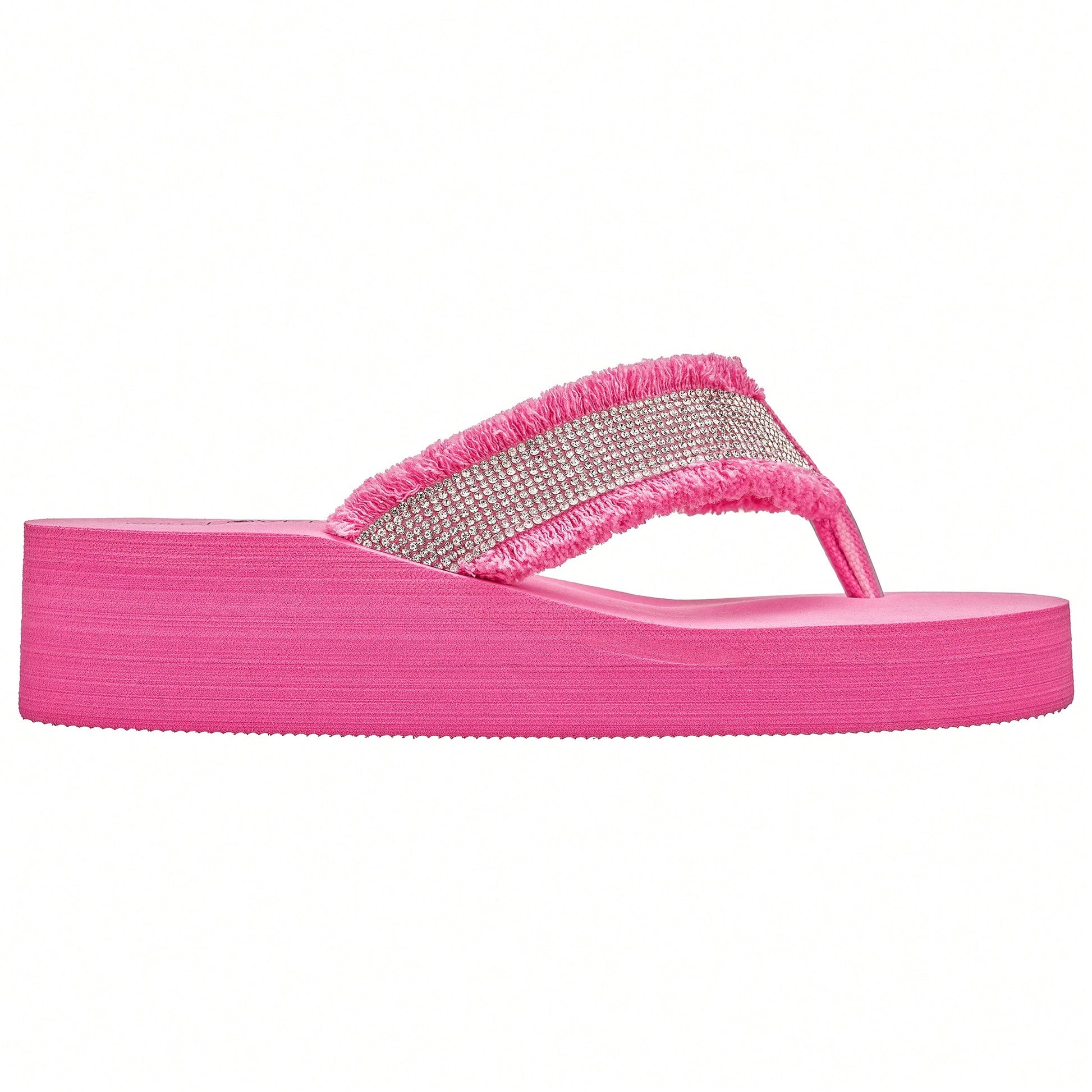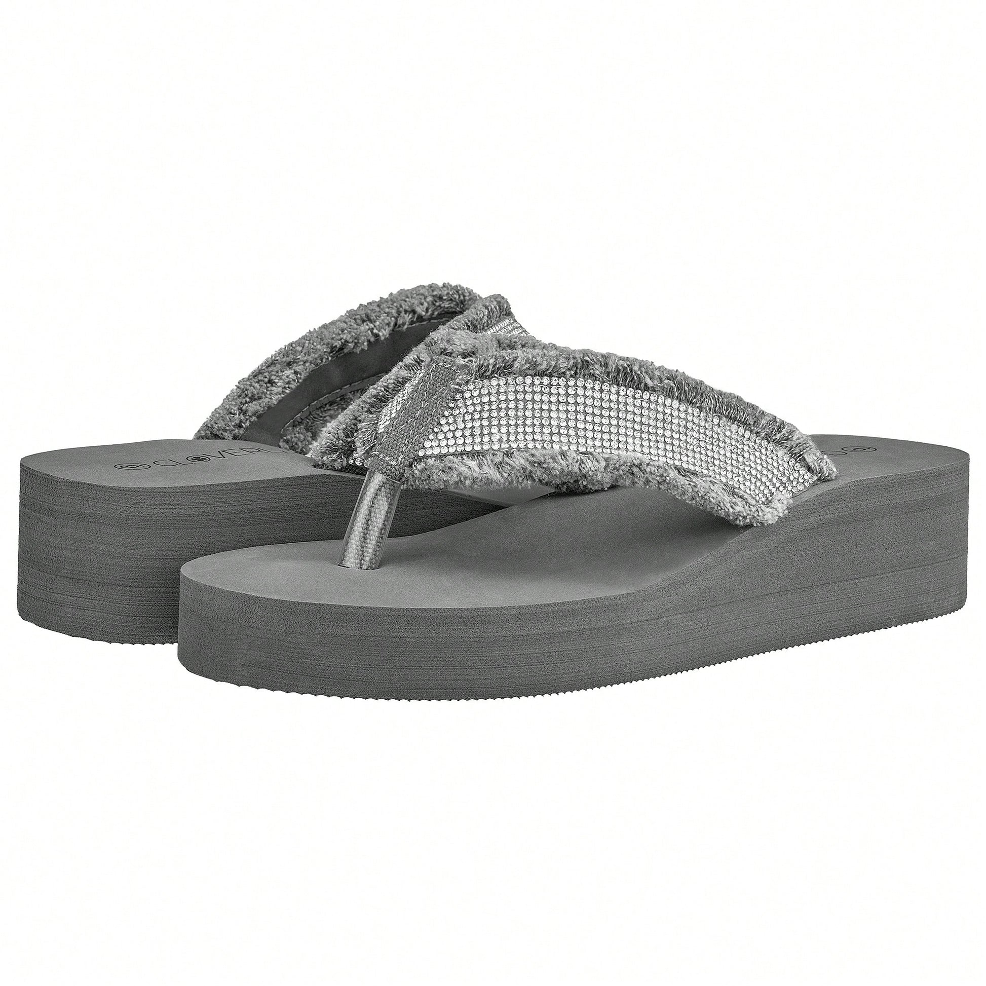 Women's Fashionable Rhinestone Decor Flip Flops Thick Bottom Wedge Beach Sandals Platform Flip Flop Toe Post Design Slippers Summer Sandals