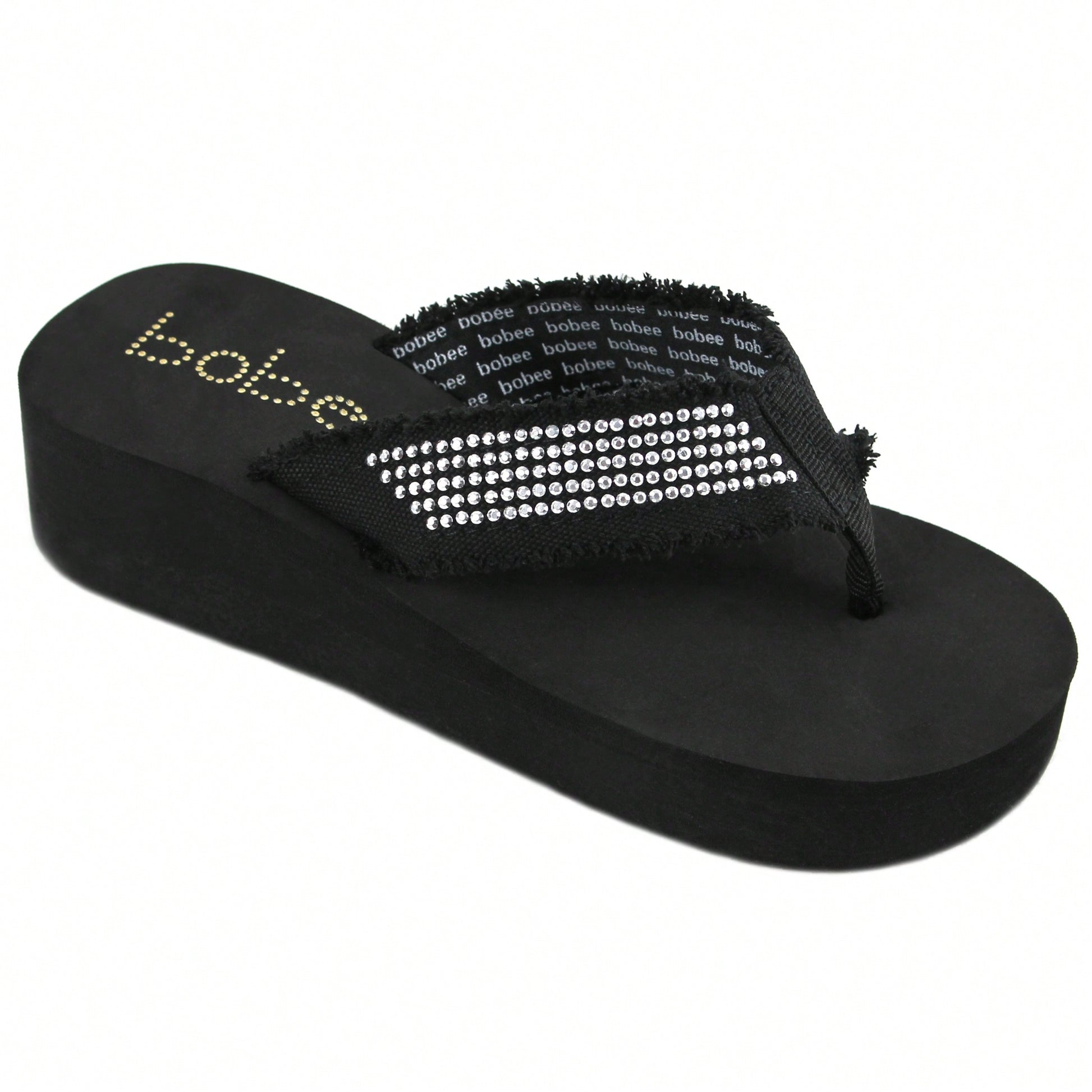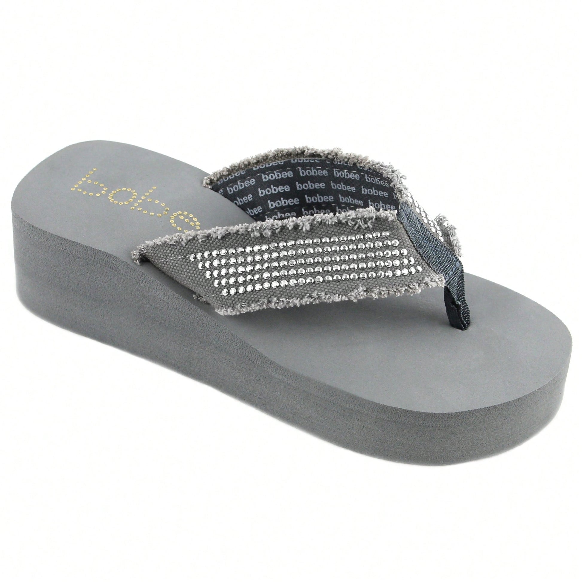 Women's Fashionable Rhinestone Fringe Decor Flip Flops Wedge Sandals Platform Flip Flop Toe Post Design Slippers