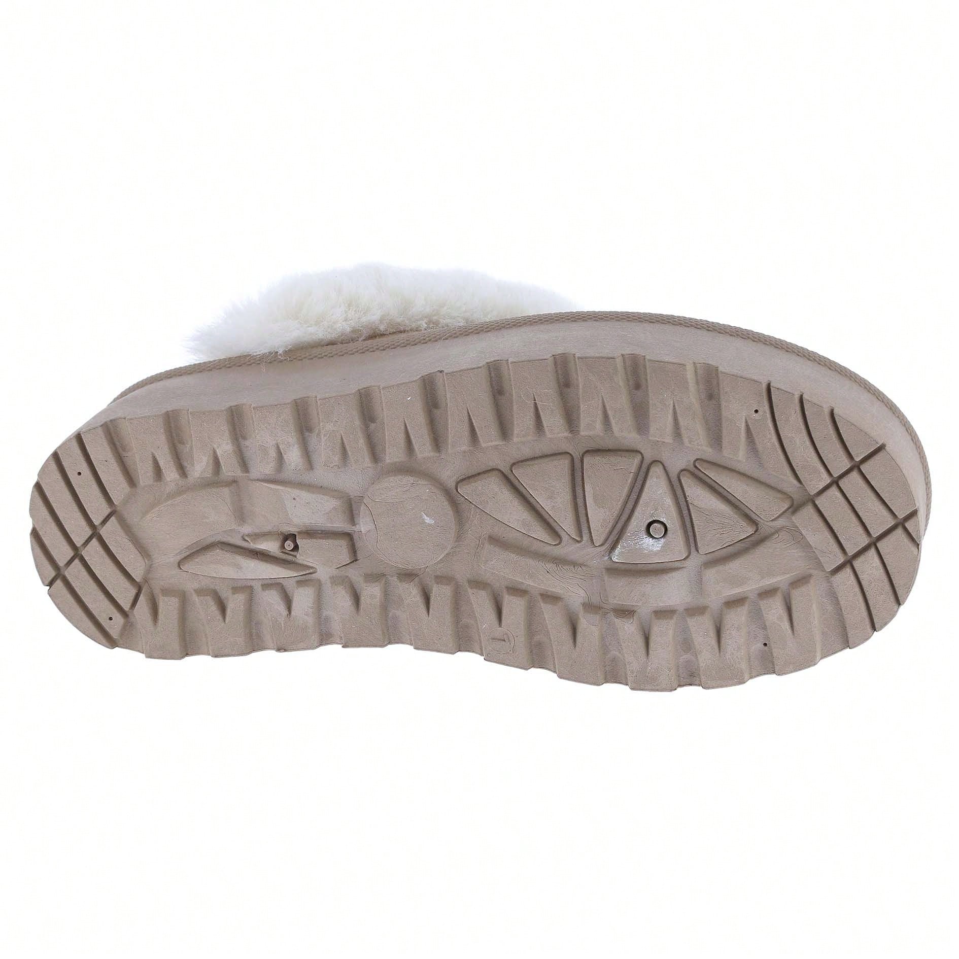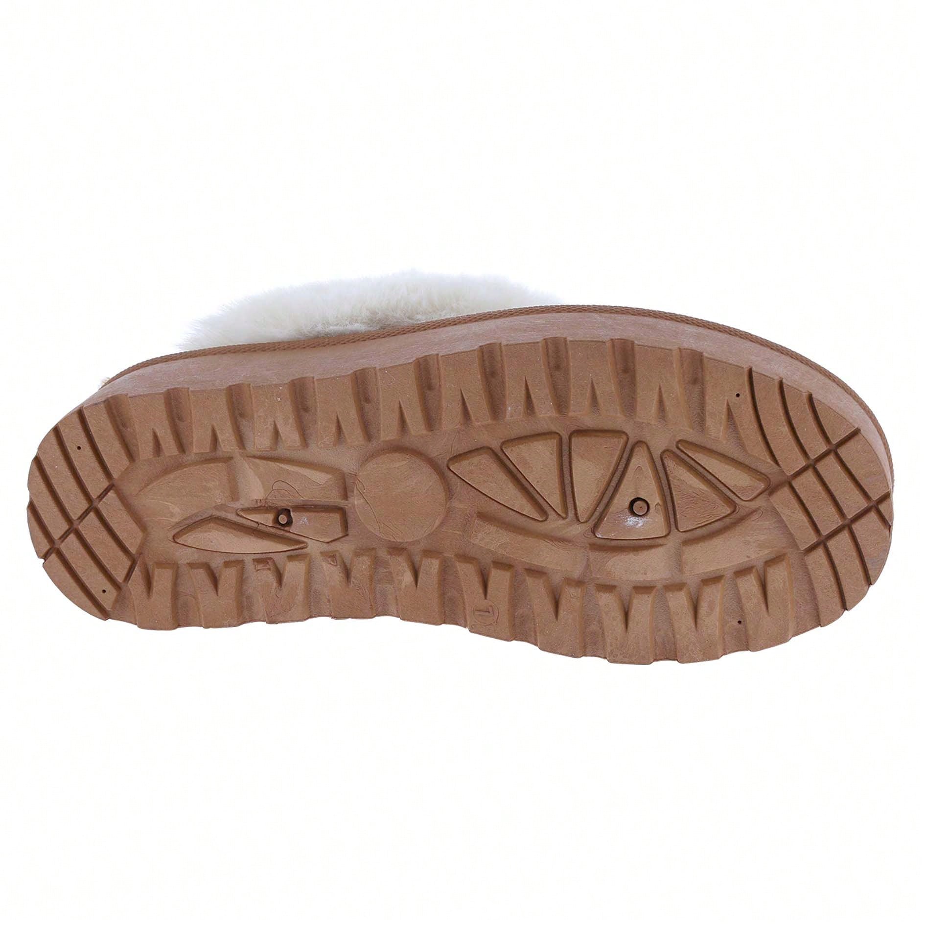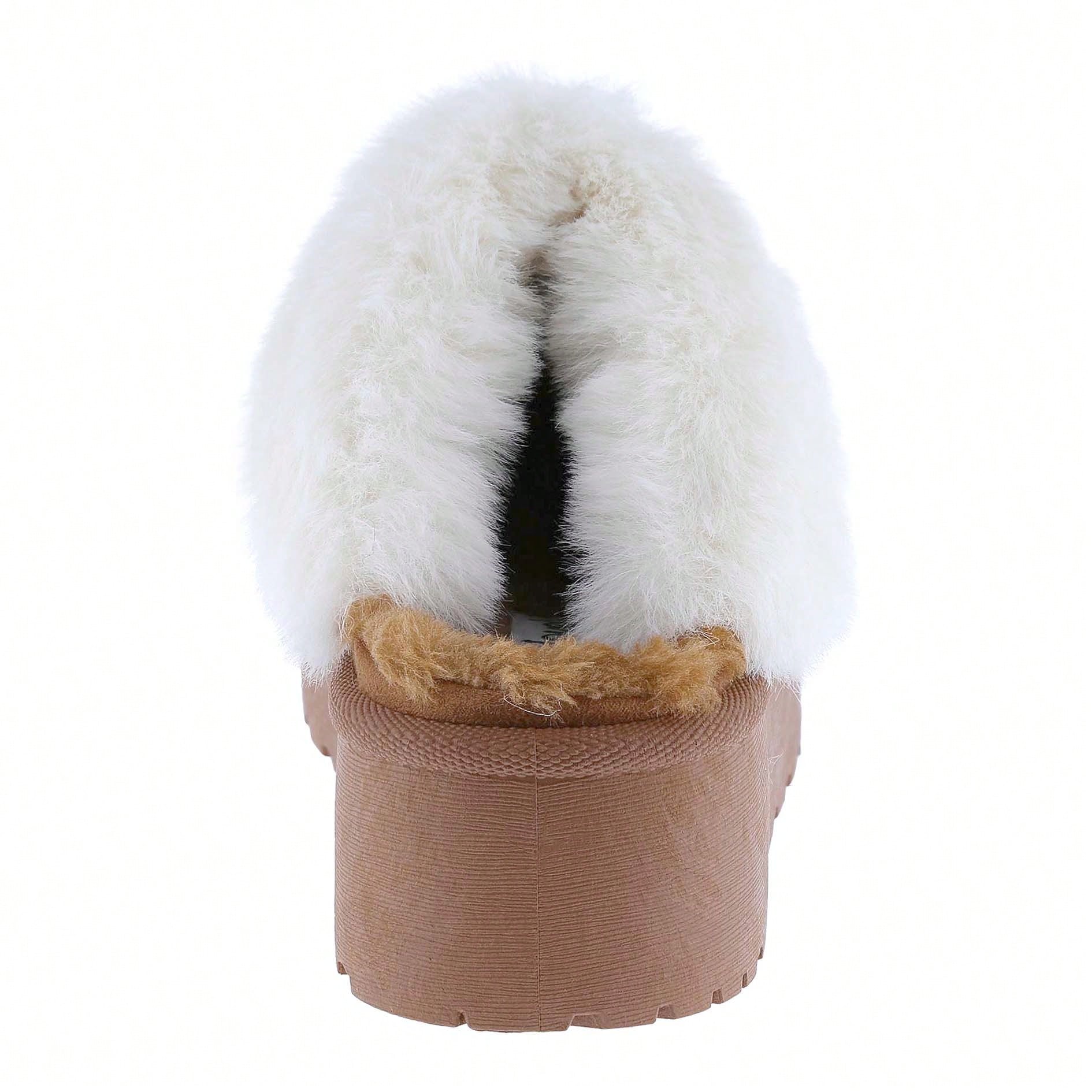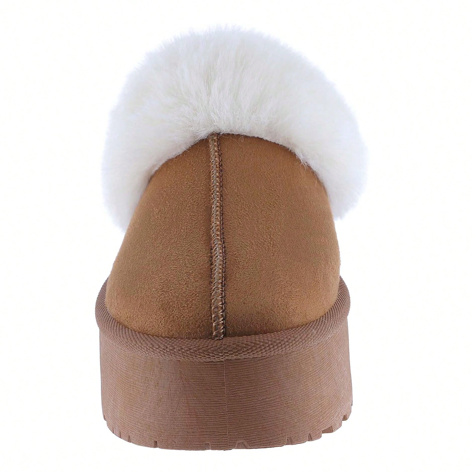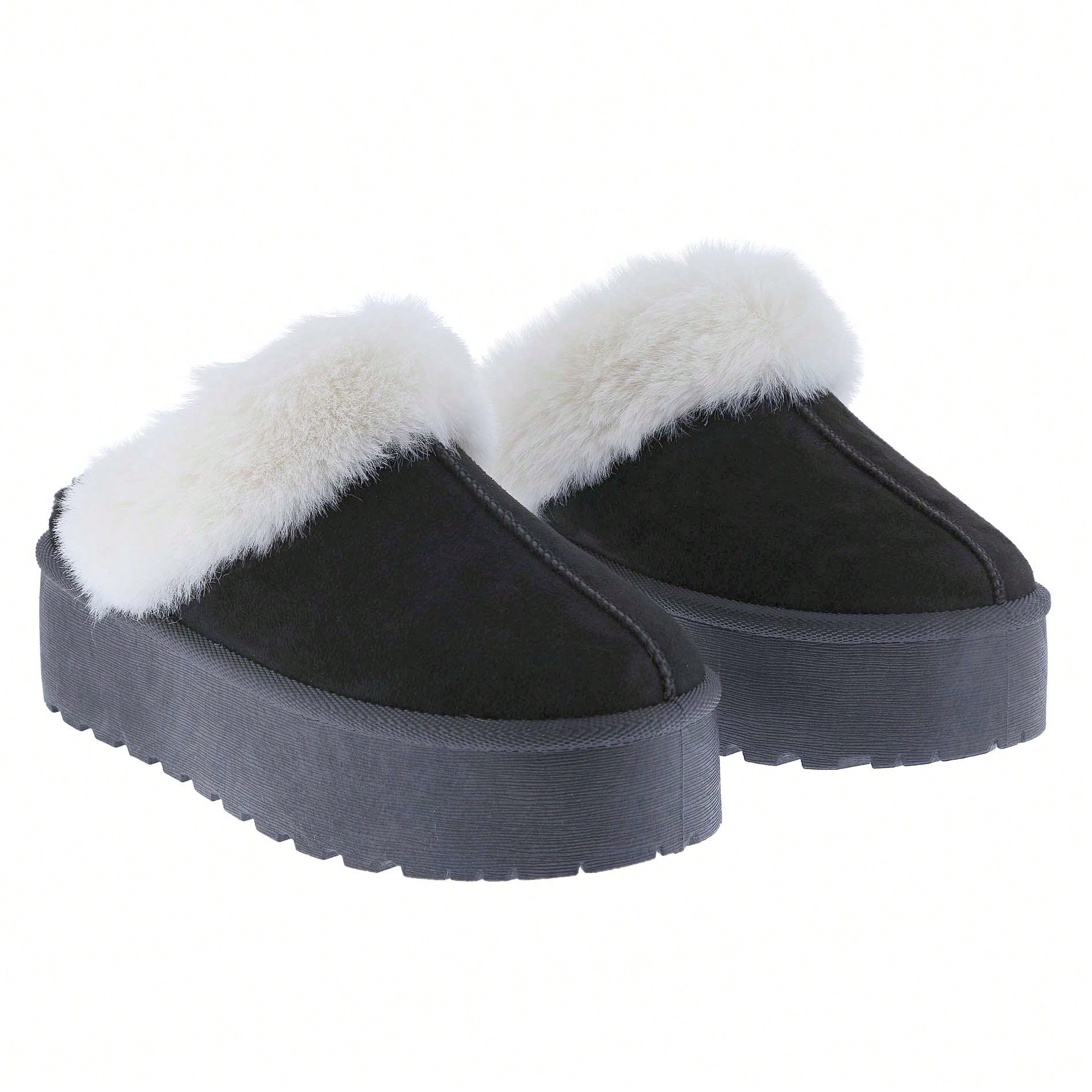 Women's Faux Fur Slip-On Platform Winter Mules Fluffy Suede Comfort Slippers