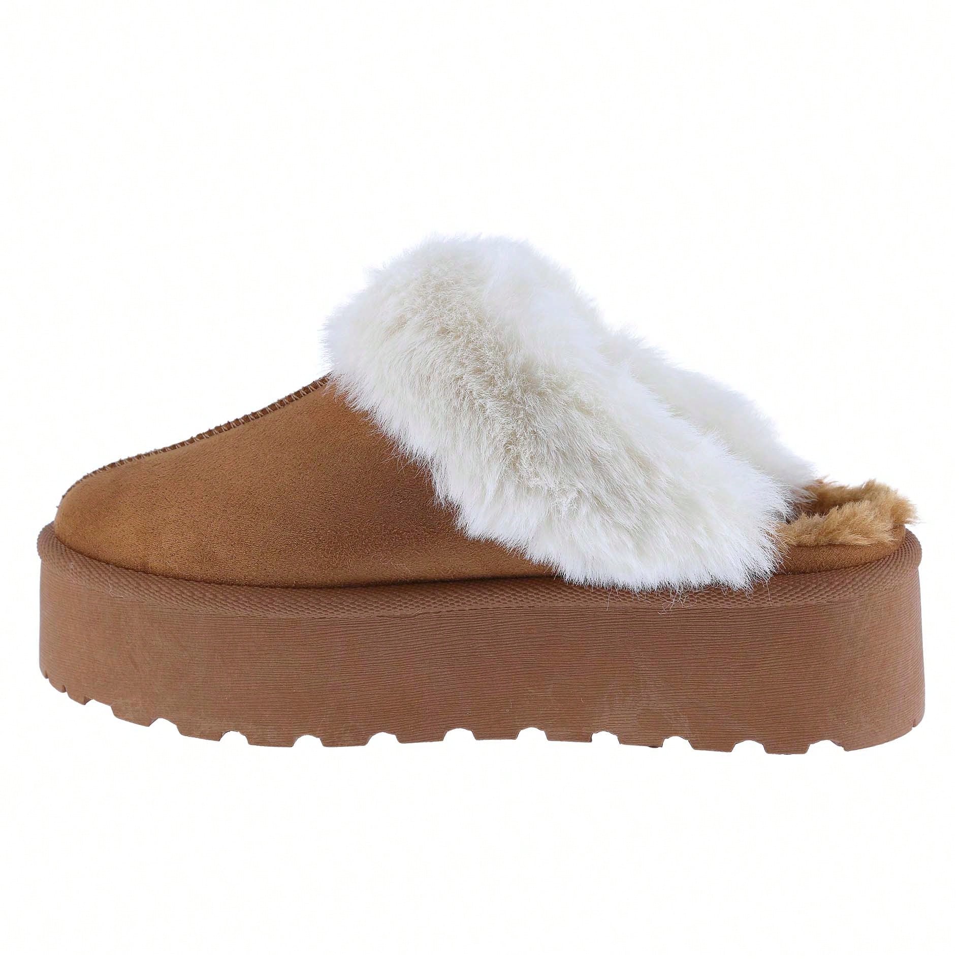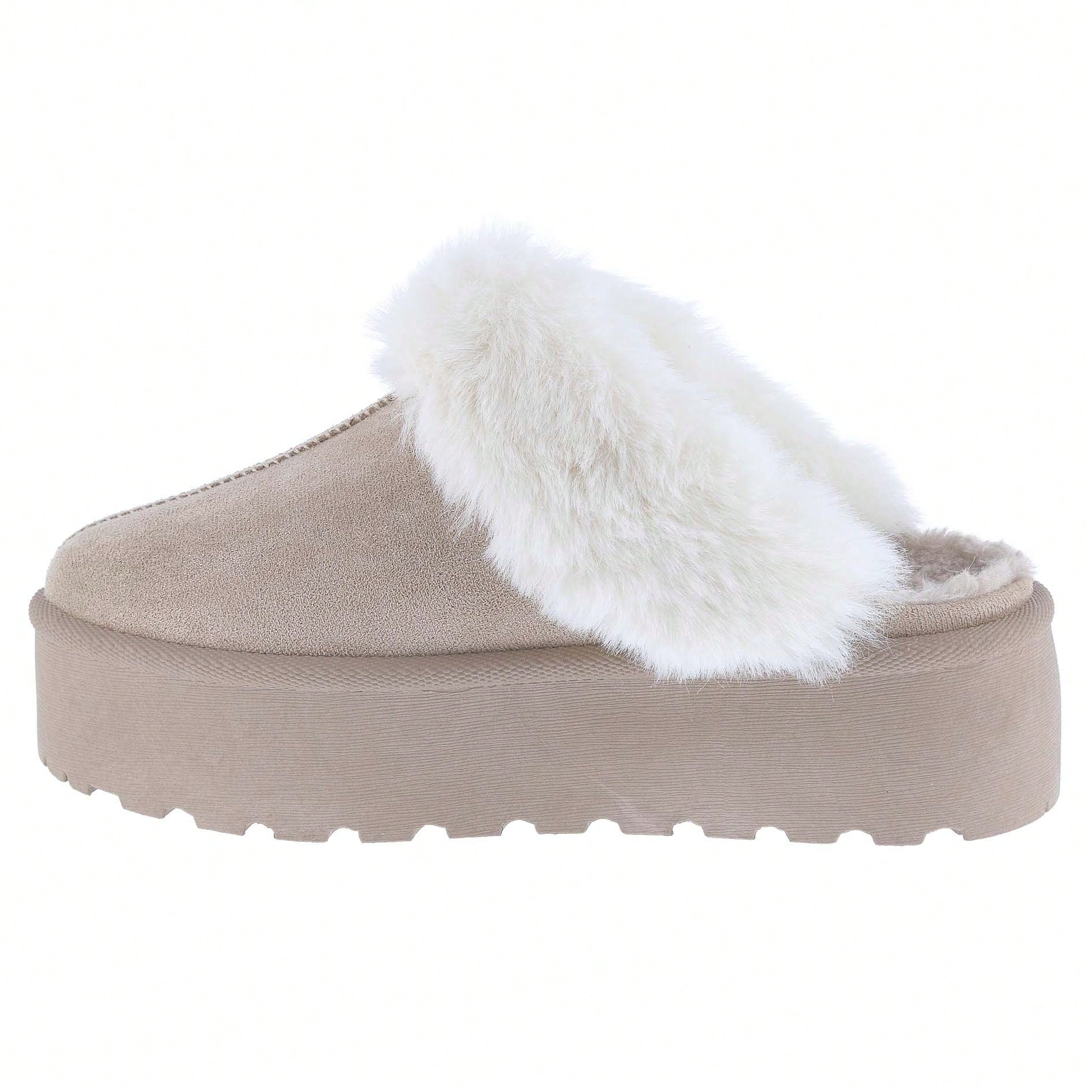 Women's Faux Fur Slip-On platform Winter Mules Fluffy Suede Comfort Slippers