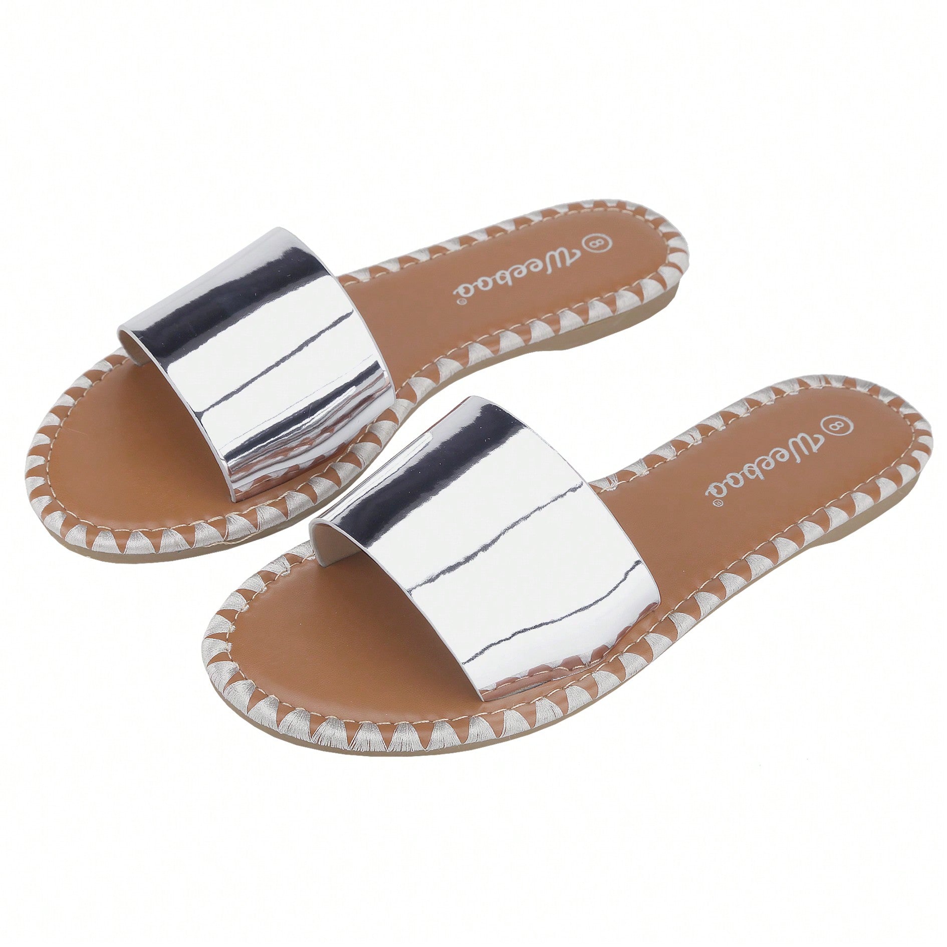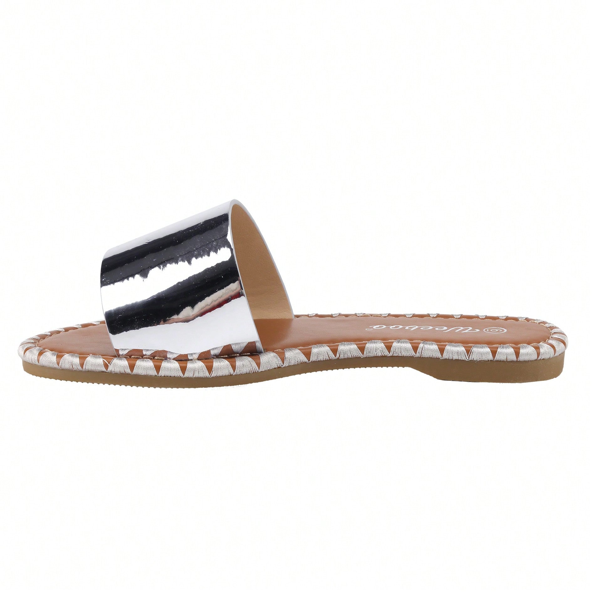 Women's Flat Sandals Fashion Round Open Toe Metal Chain Summer Dressy Sandals Slip On Casual Slides