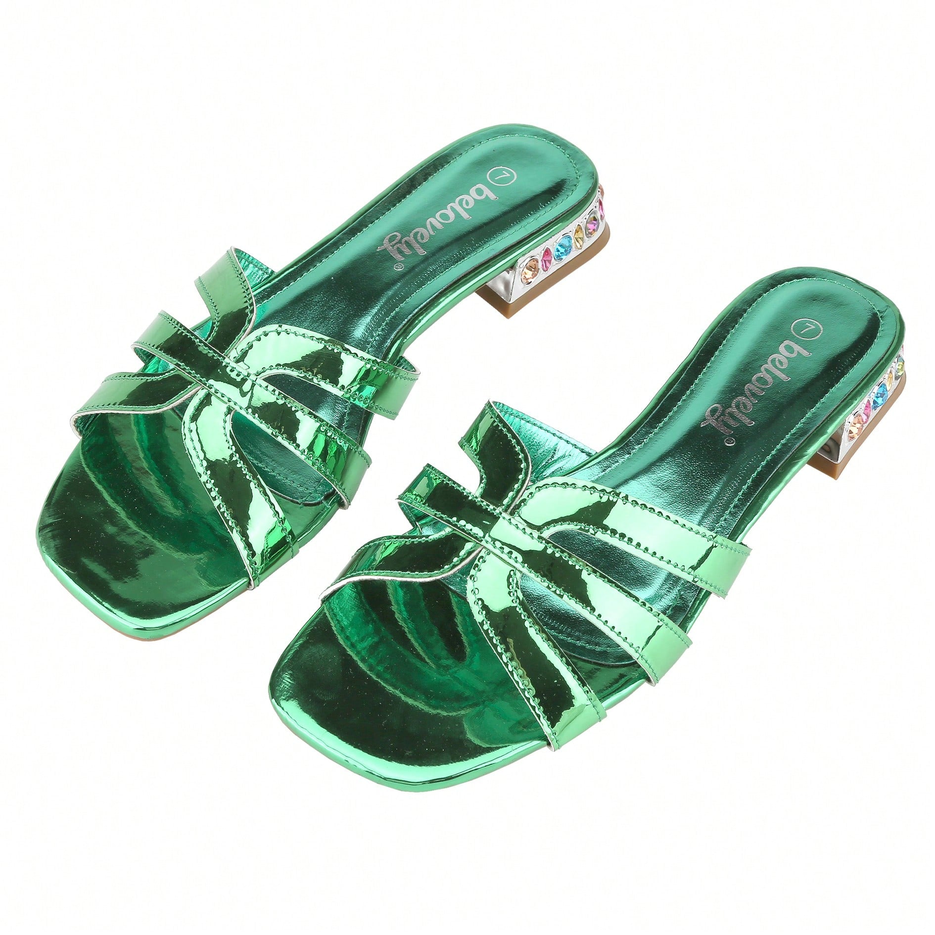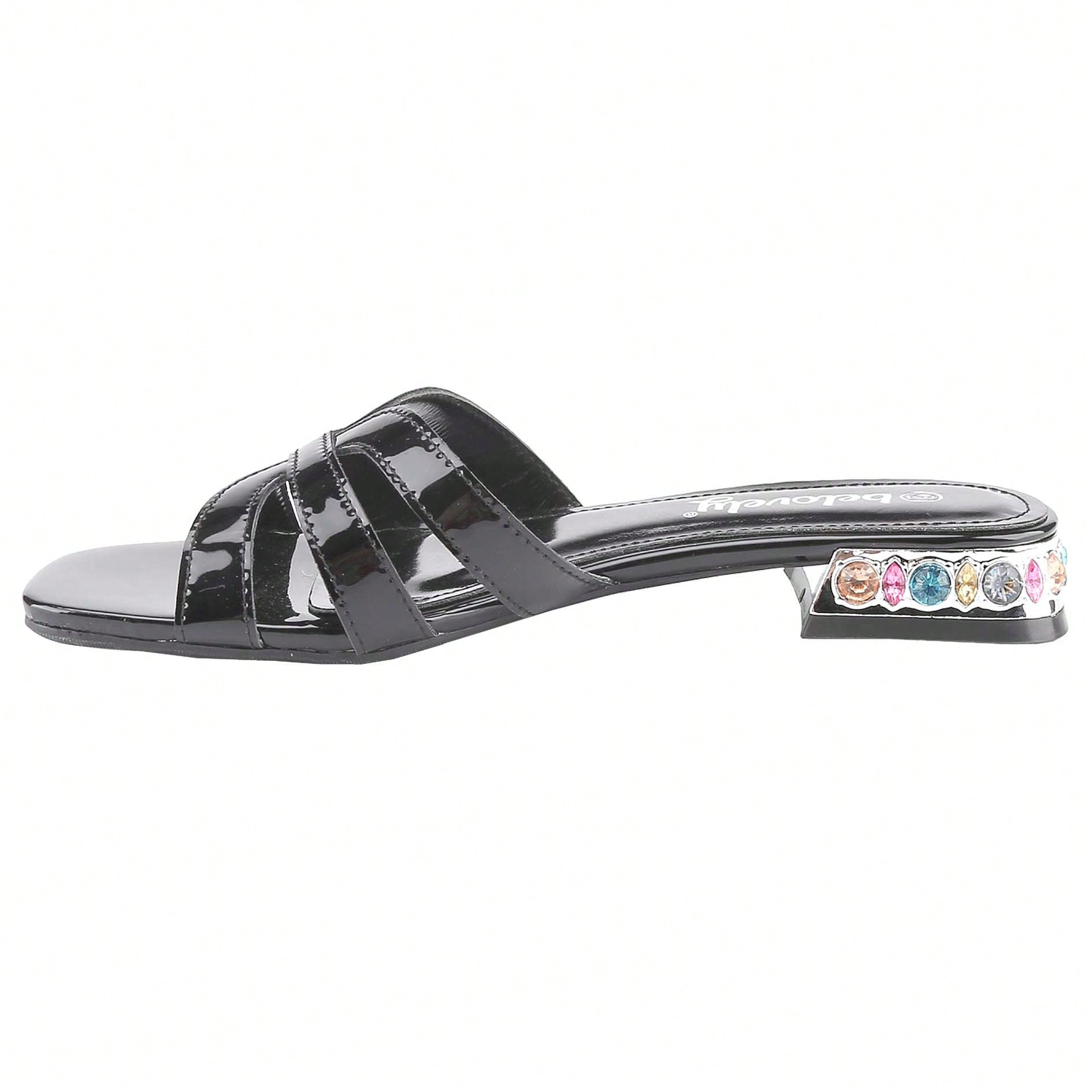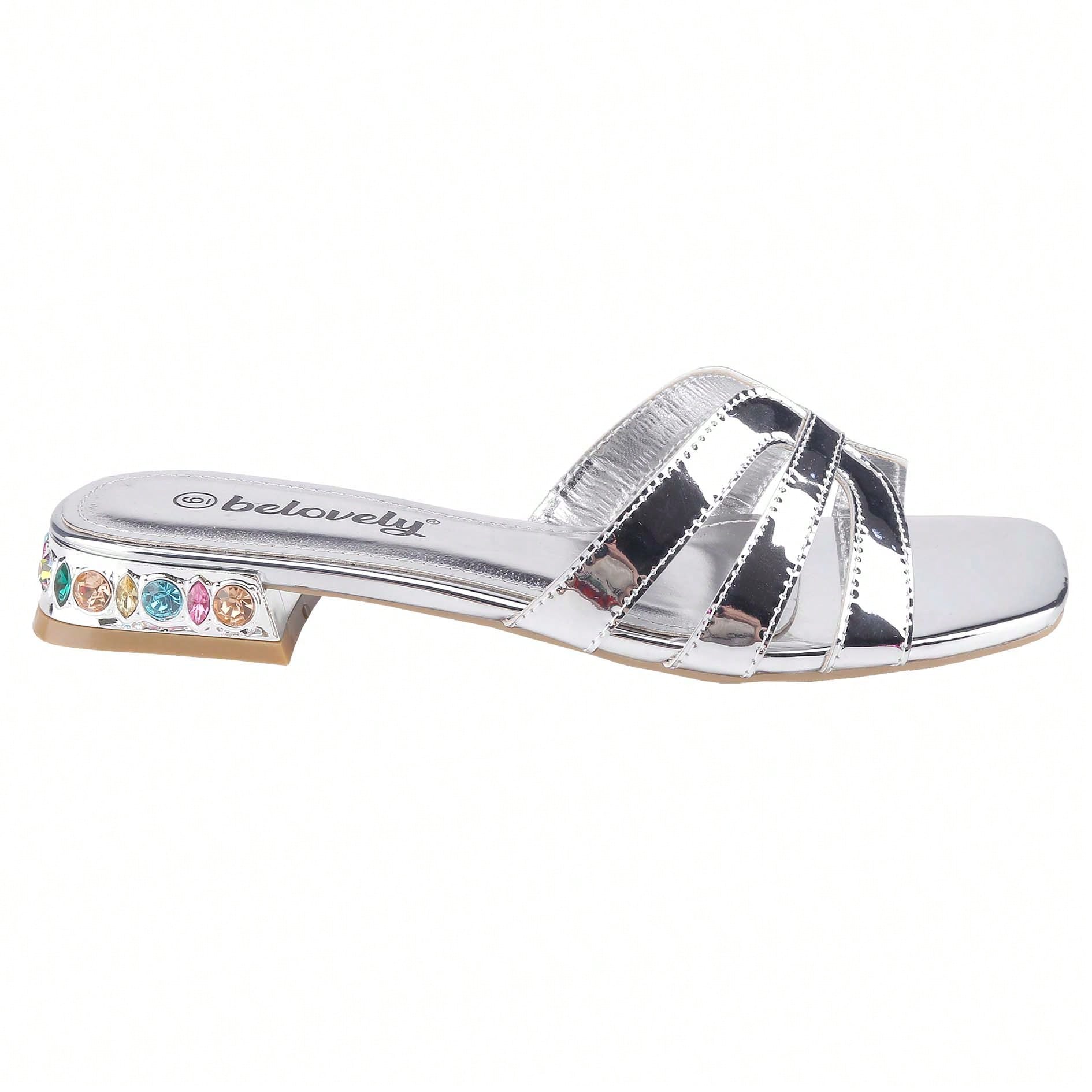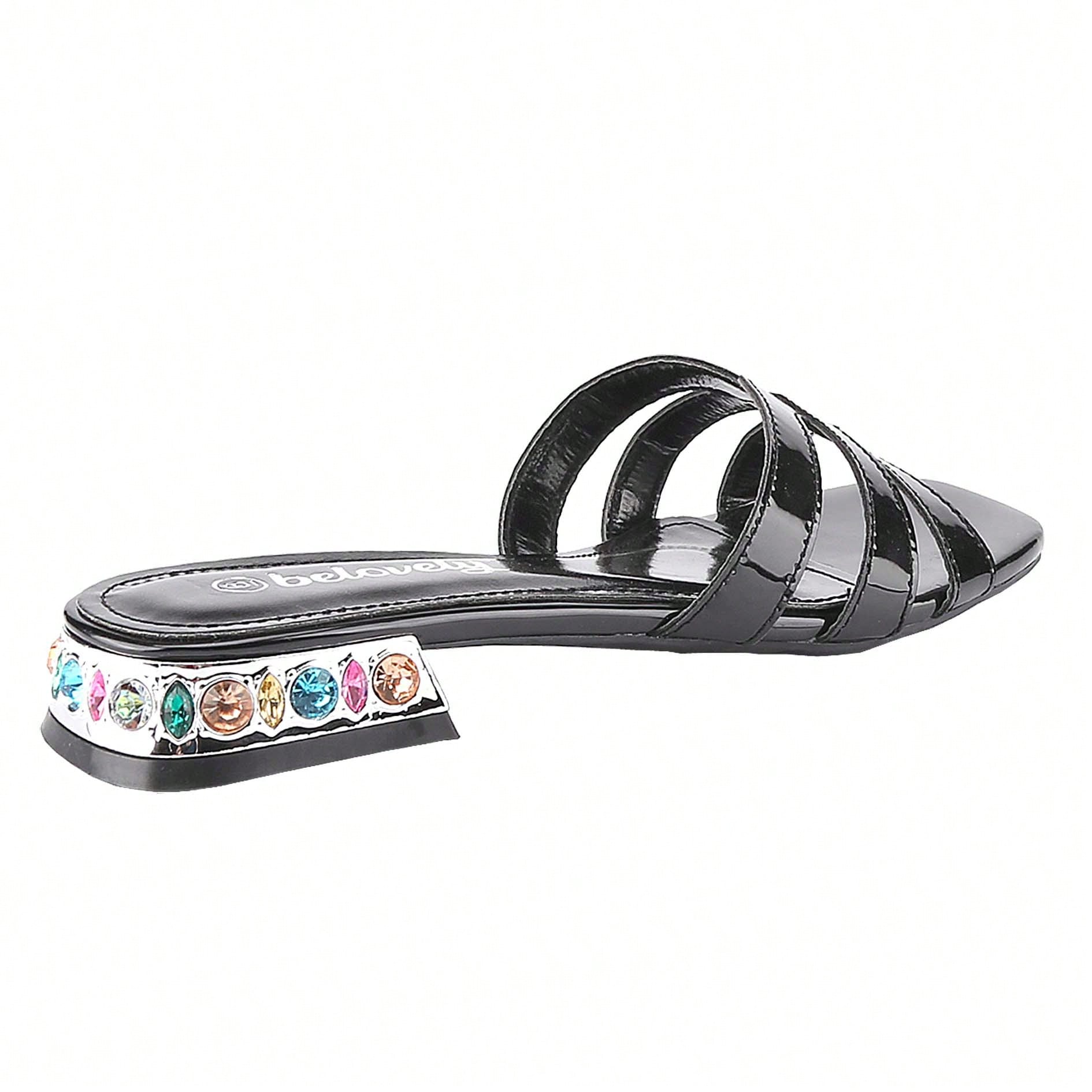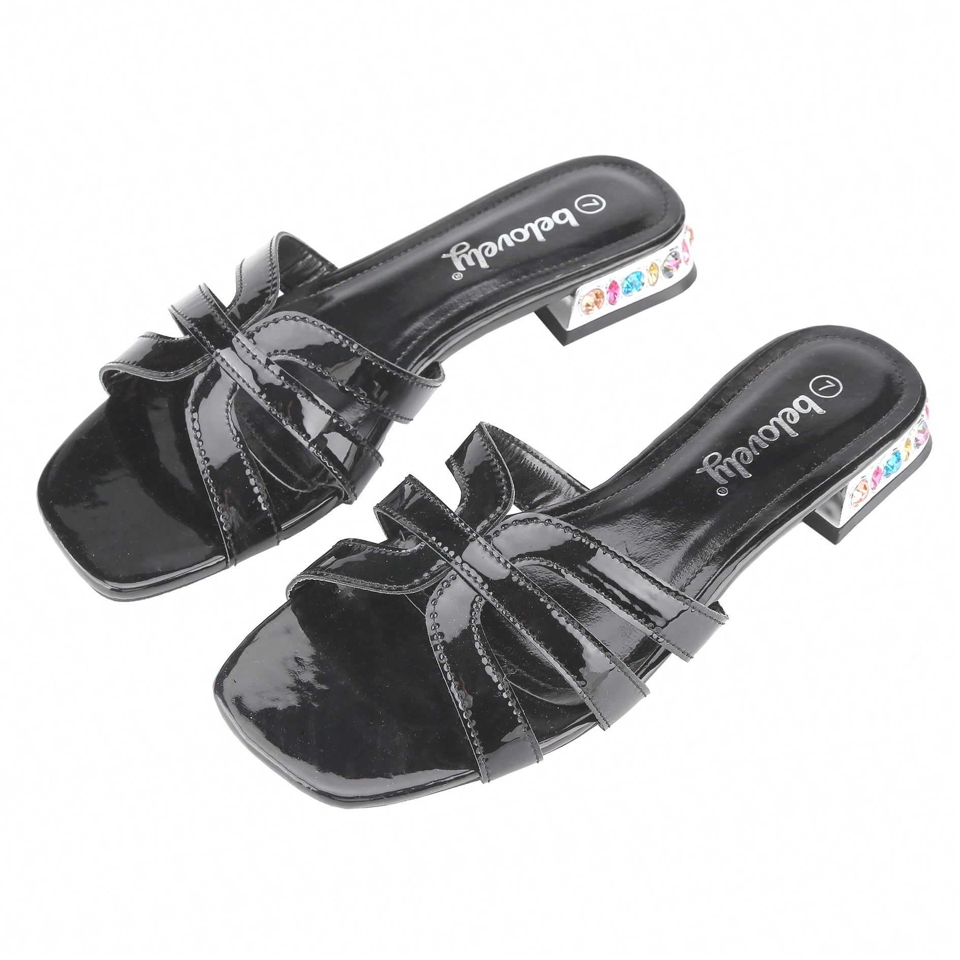 Upgrade your summer wardrobe with these square toe women's solid color sandals with rhinestones on the heel. These stylish and comfortable slippers are perfect for leisurely walks or casual outings.