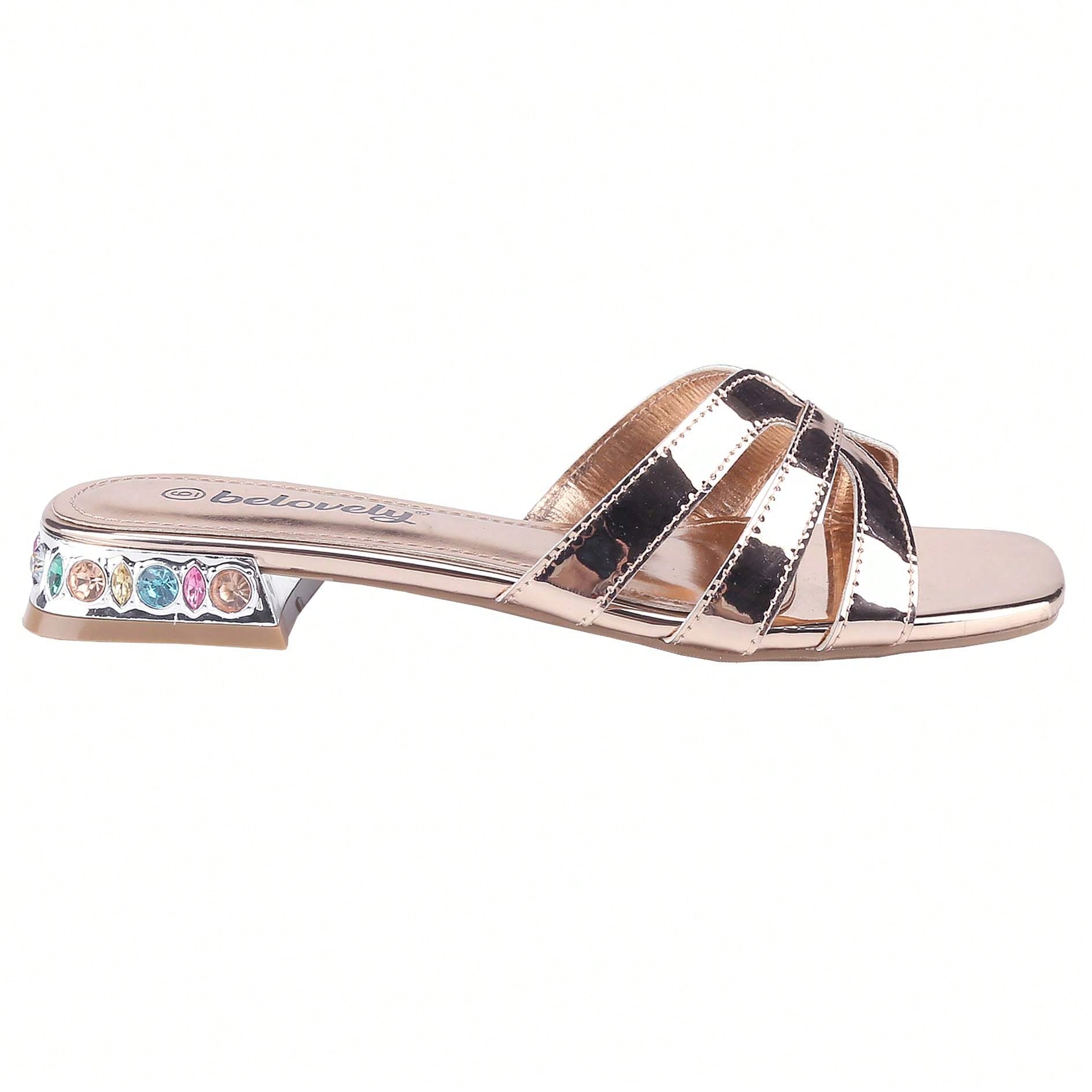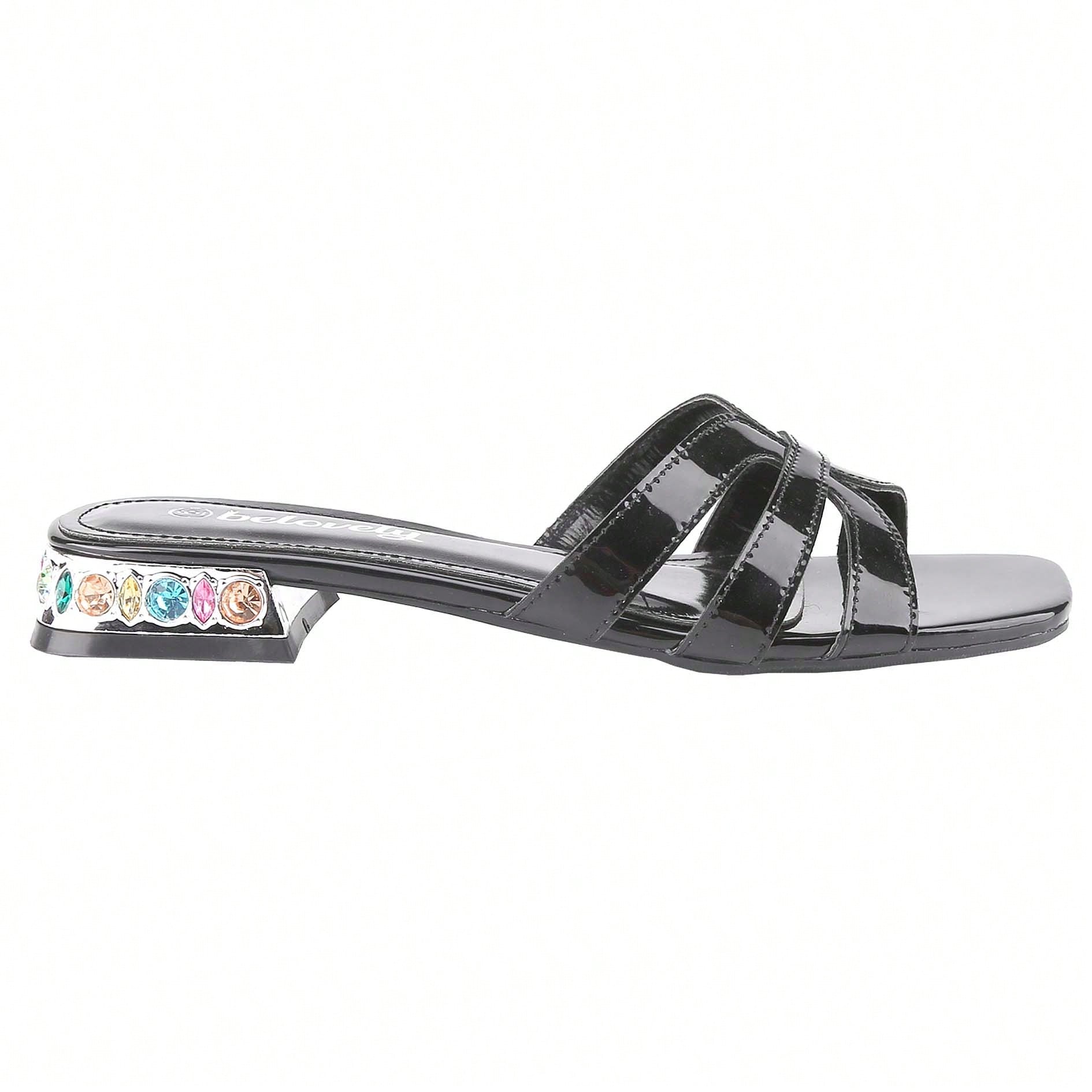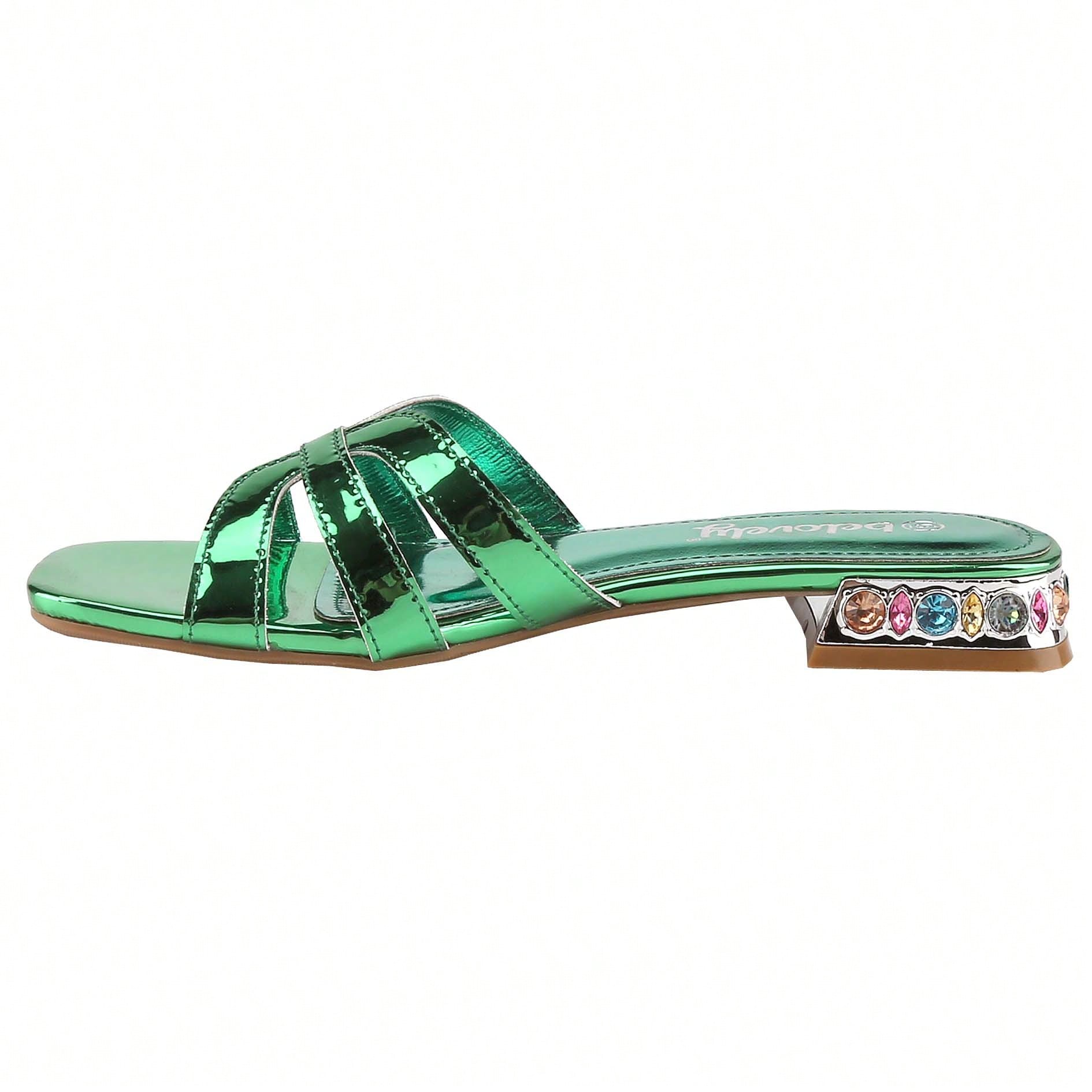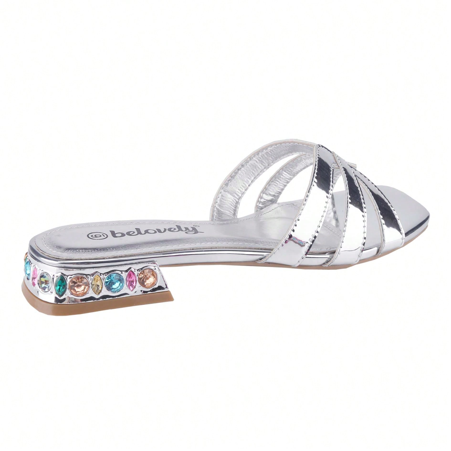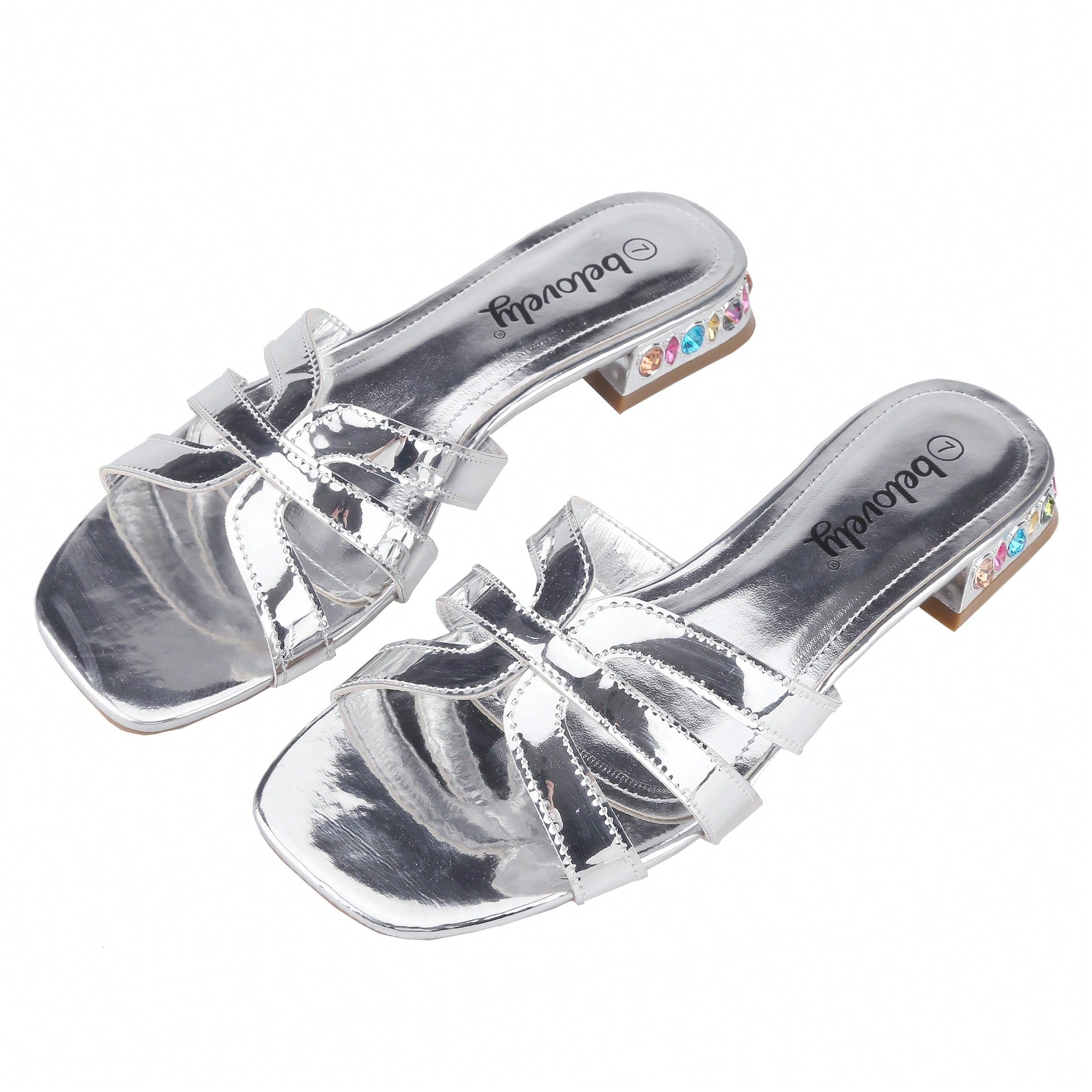 Upgrade your summer wardrobe with these square toe women's solid color sandals with rhinestones on the heel. These stylish and comfortable slippers are perfect for leisurely walks or casual outings.