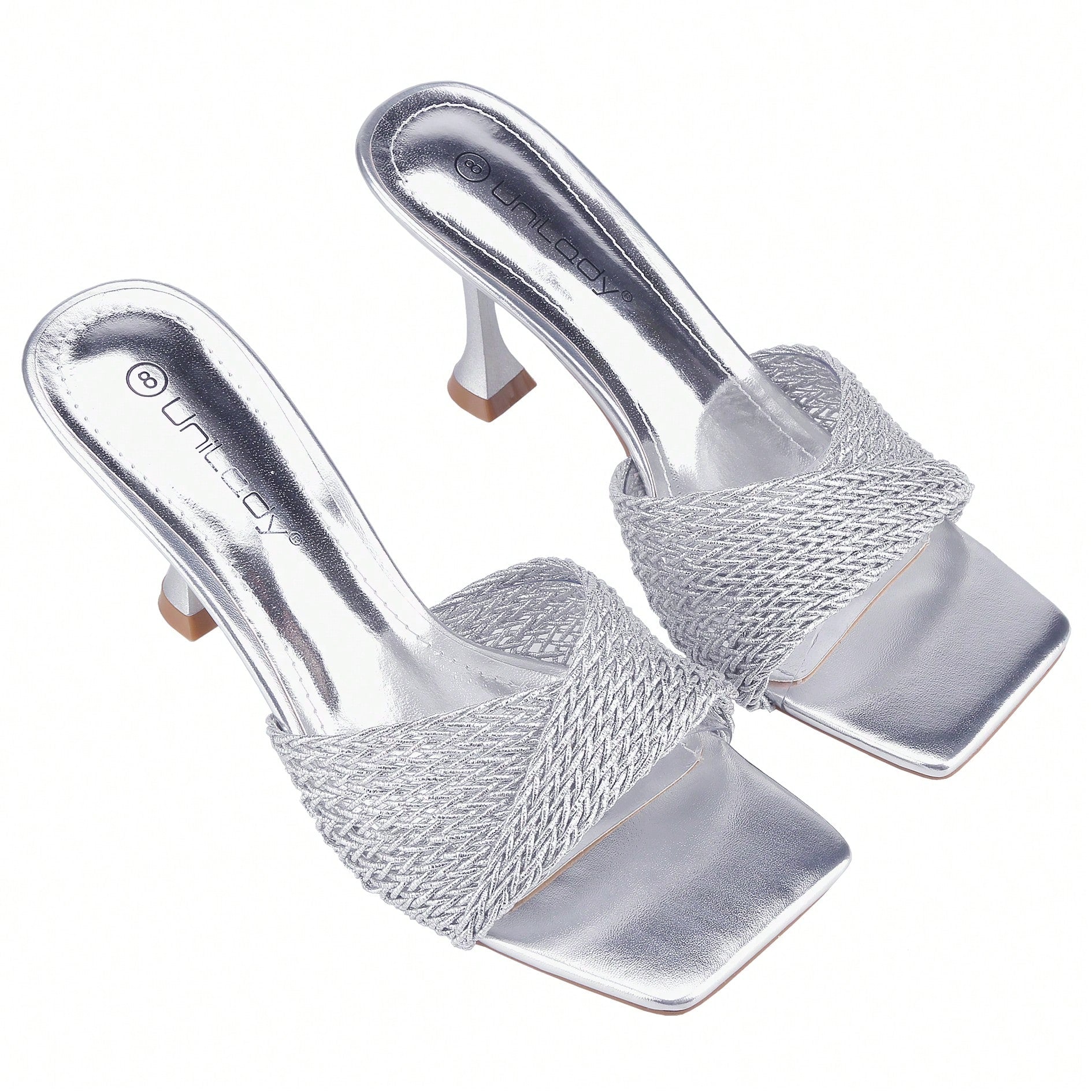 Women's High Stiletto Heels Mules Open Square Toe Slip On Comfort Sexy Dress Pumps Sandals