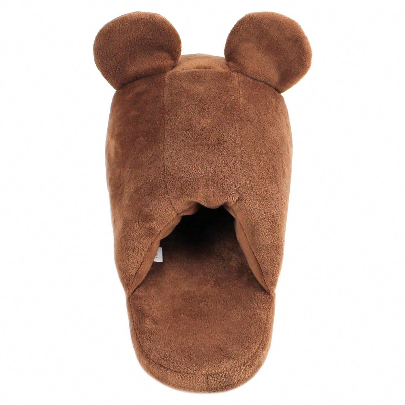 Women's Home Slippers Warm Plush Soft Cute Cartoon Animal Brown Bear Indoor Slippers