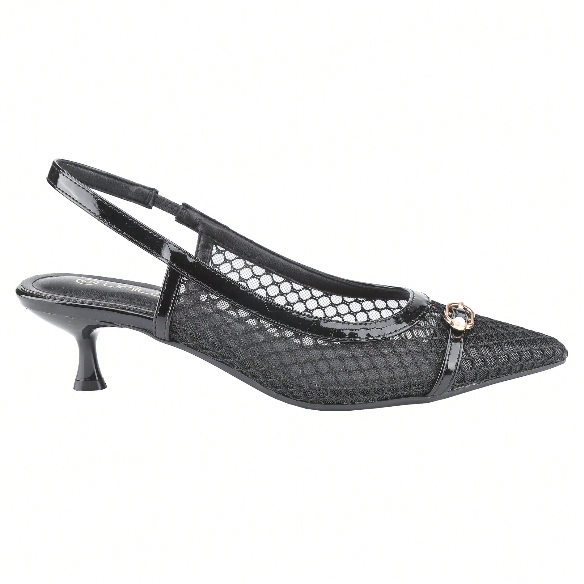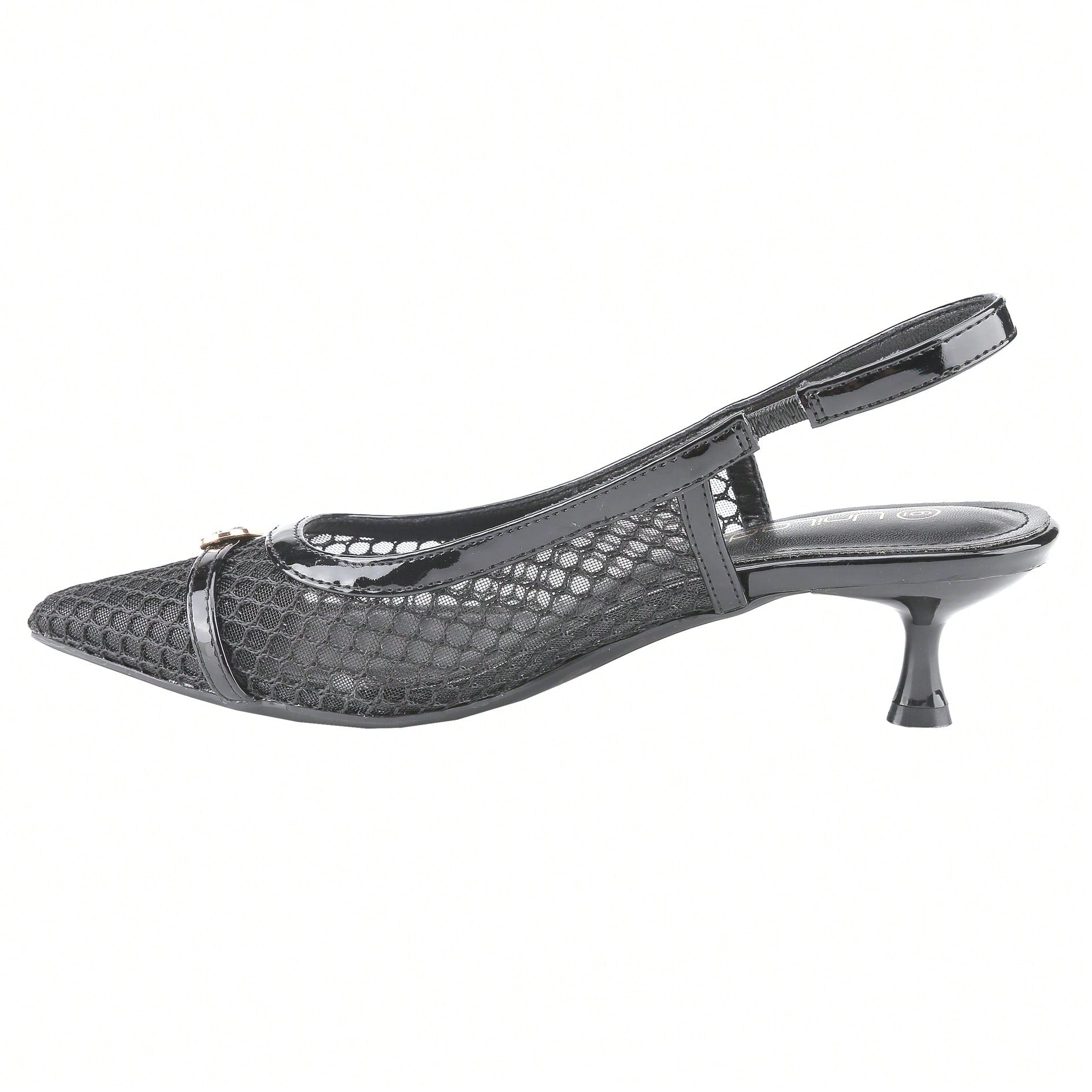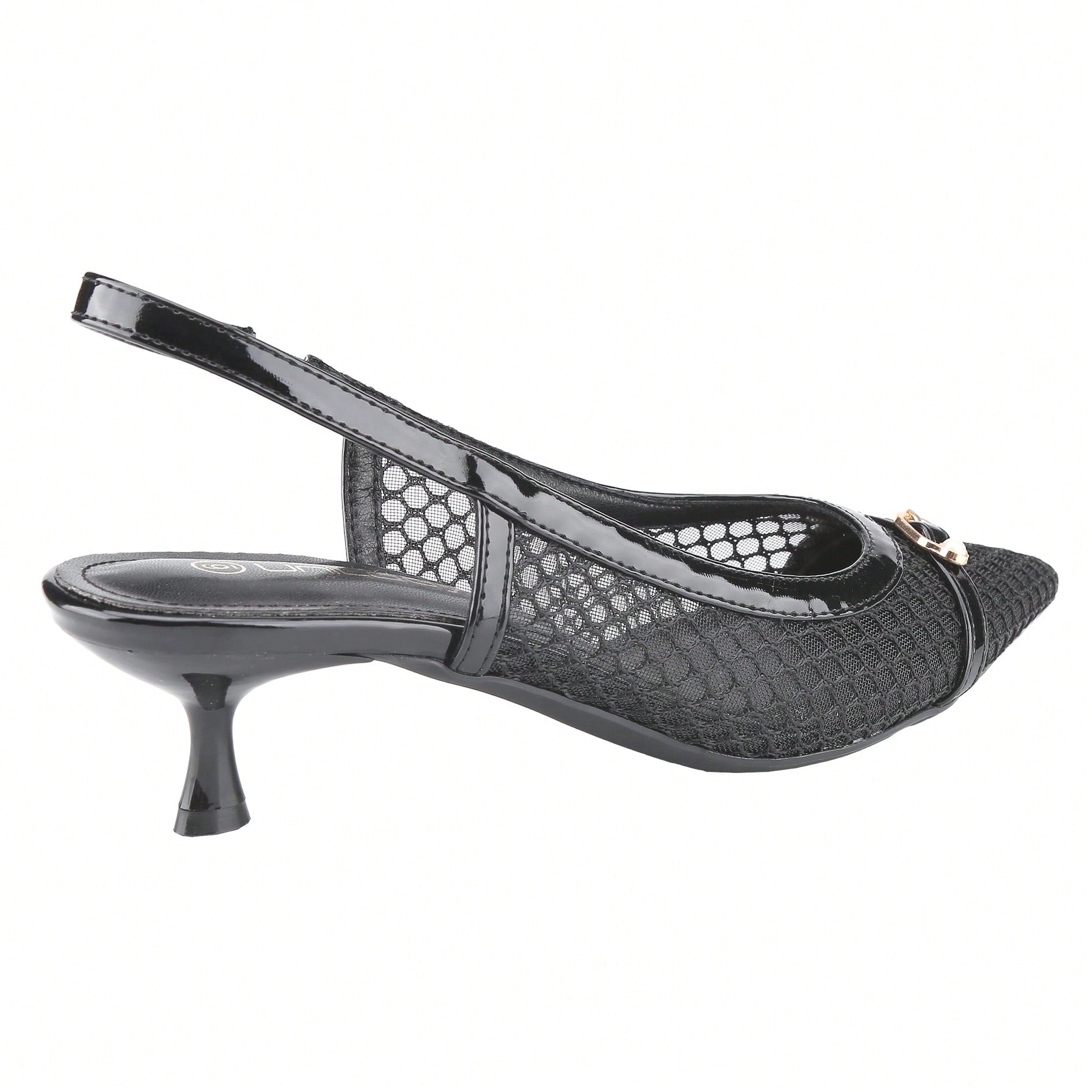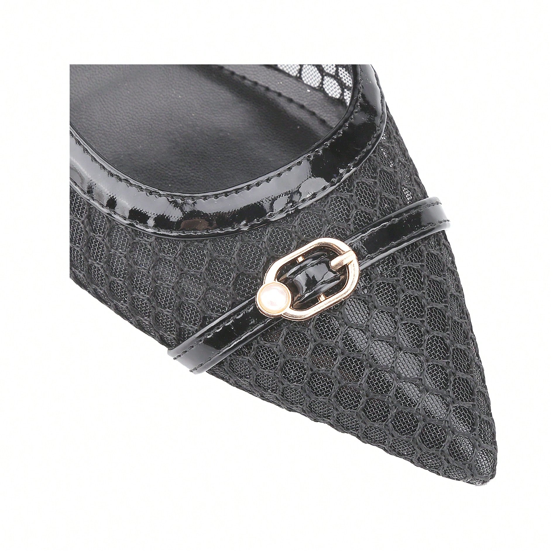 Women's Kitten Heels Slingbacks Point Toe With Pearl Buckle And Mesh Netting