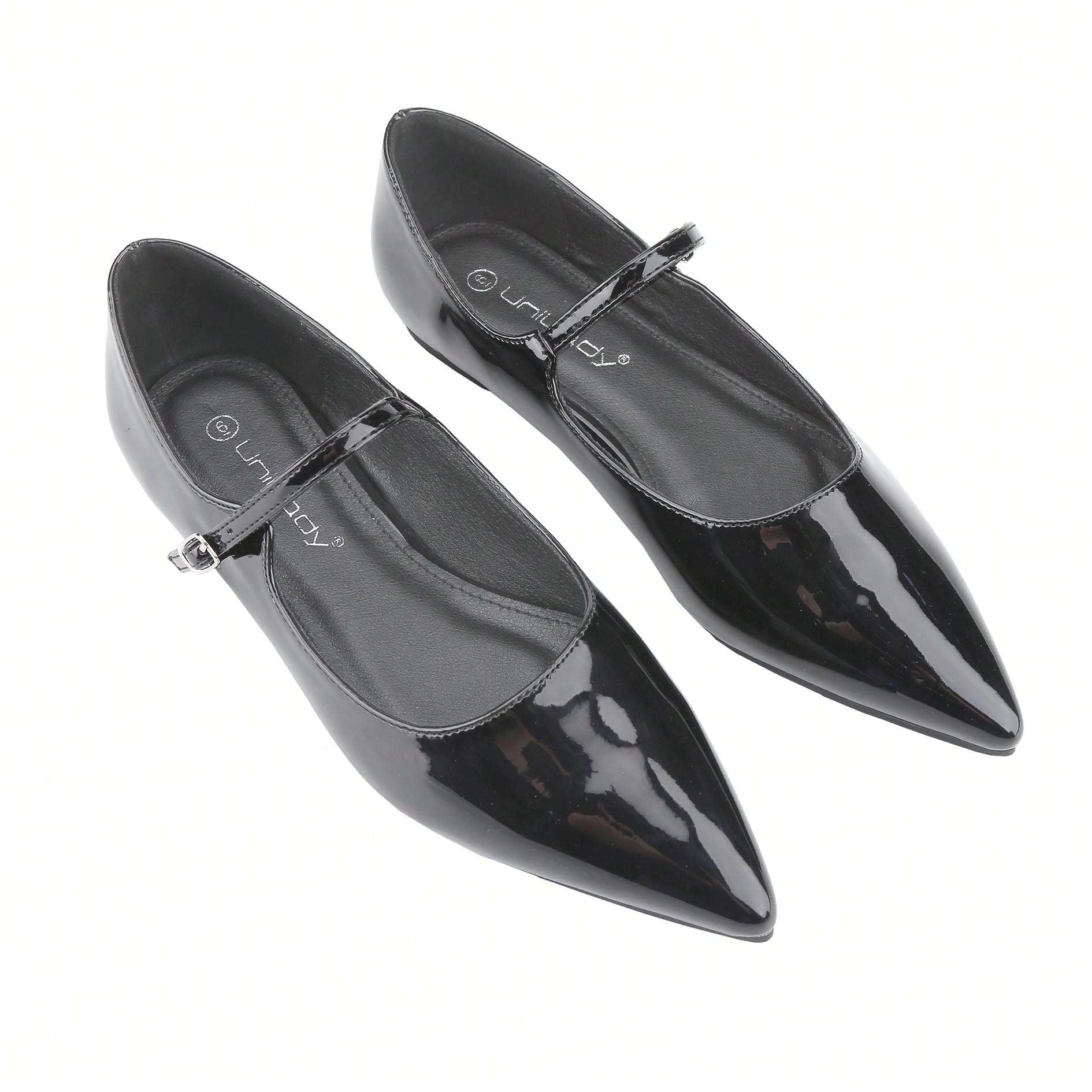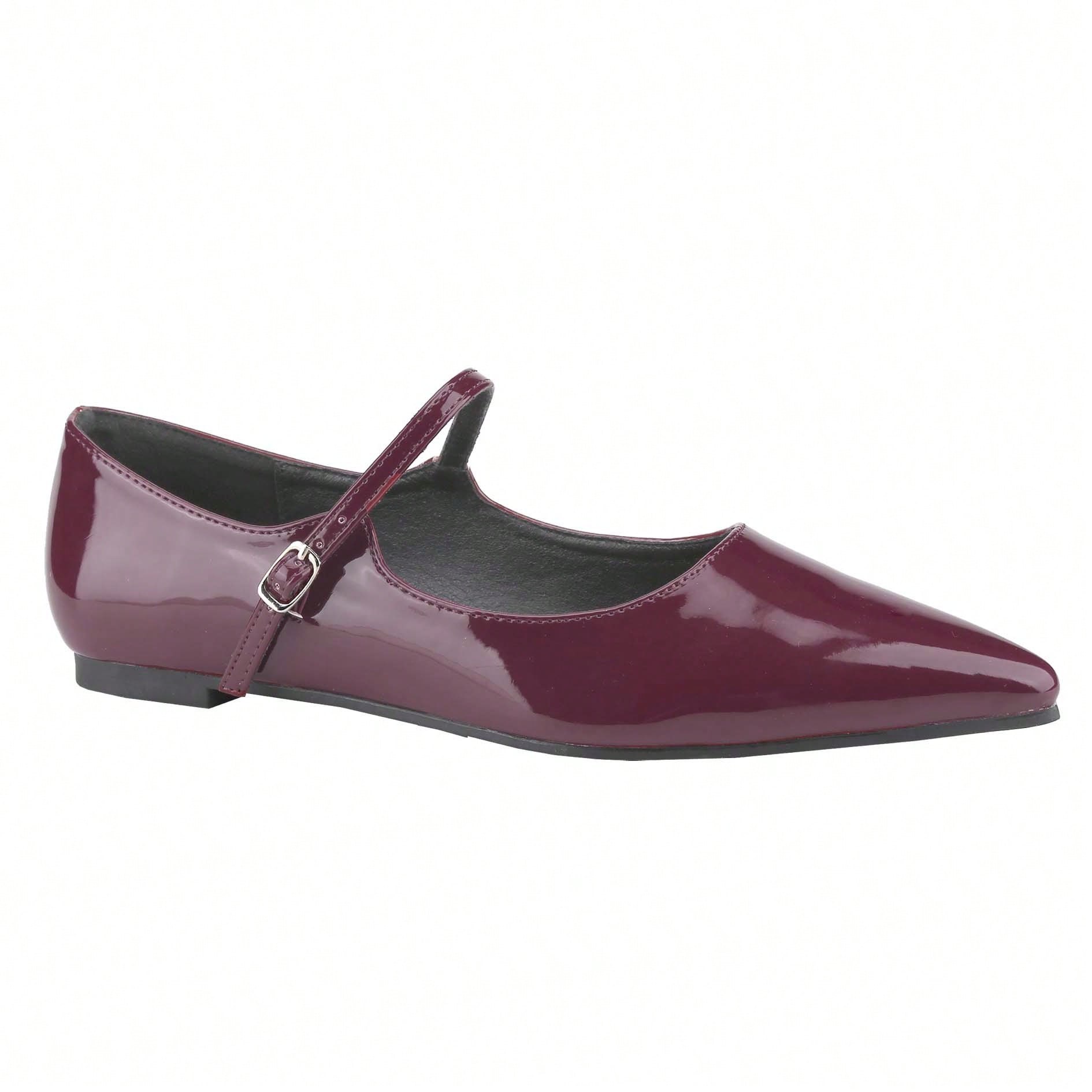 Women's Mary Janes Adjustable Straps Pointed Toe Flats Dress Shoes Retro Patent Leather Ballet