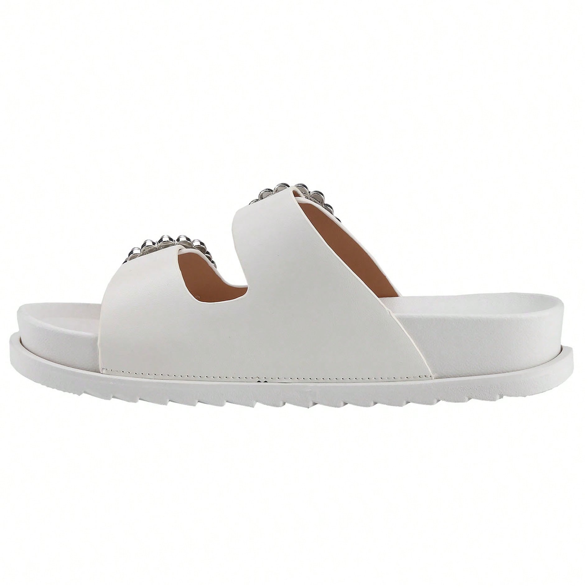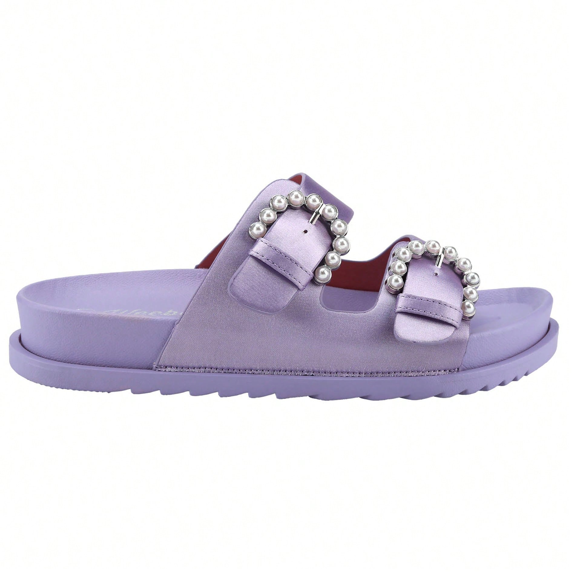 Elevate any casual ensemble with these slides that offer just the right amount of flair. The pearl embellishment on the functional buckle is the perfect touch to make these slides truly shine and distinguish them from other options on the market.